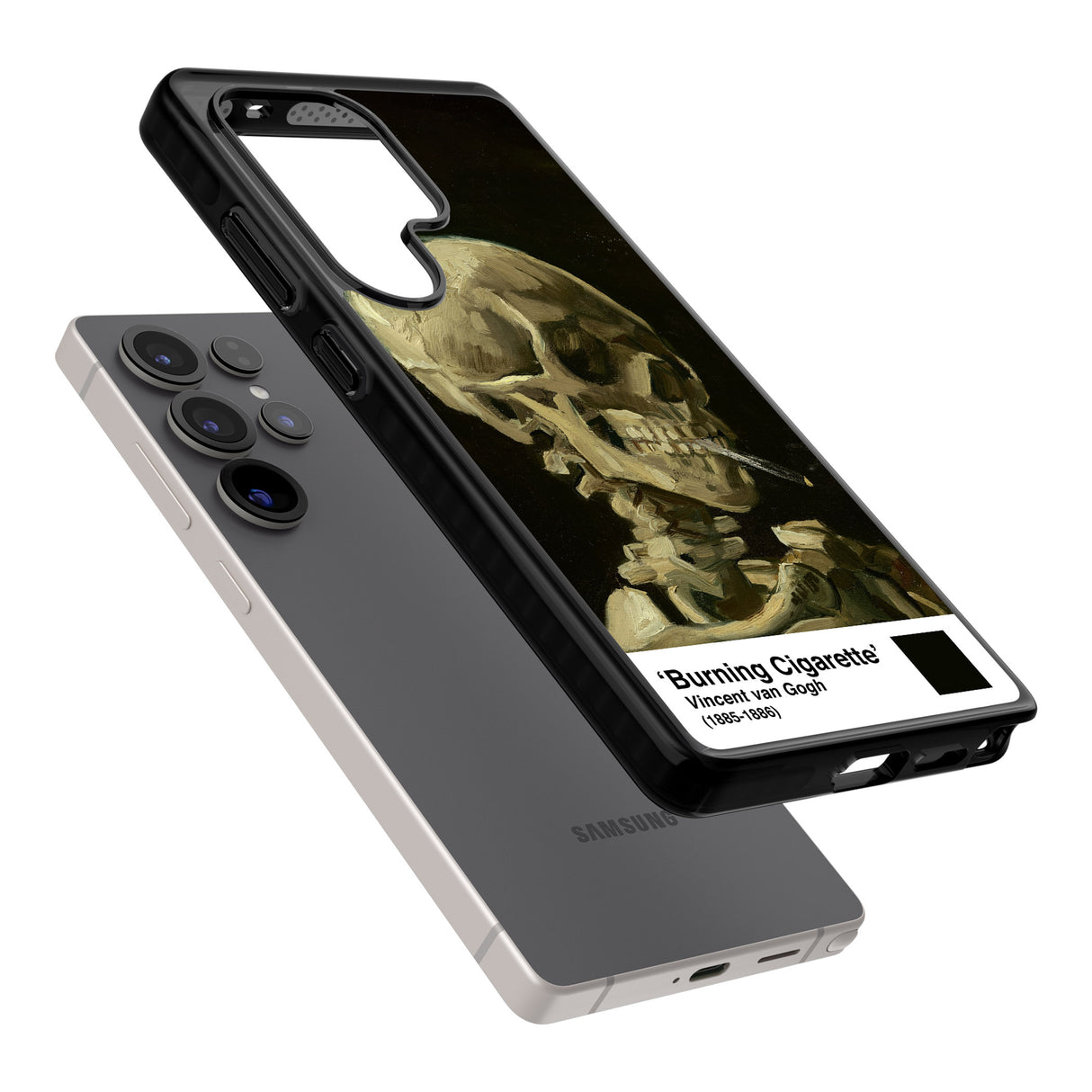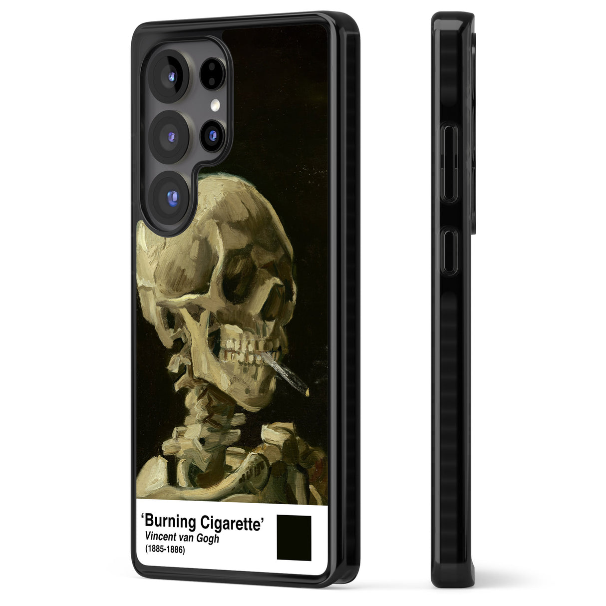 Unleash your inner art connoisseur with this striking Skull with Burning Cigarette Phone Case. Perfect for those who love edgy aesthetics with a touch of classic art.