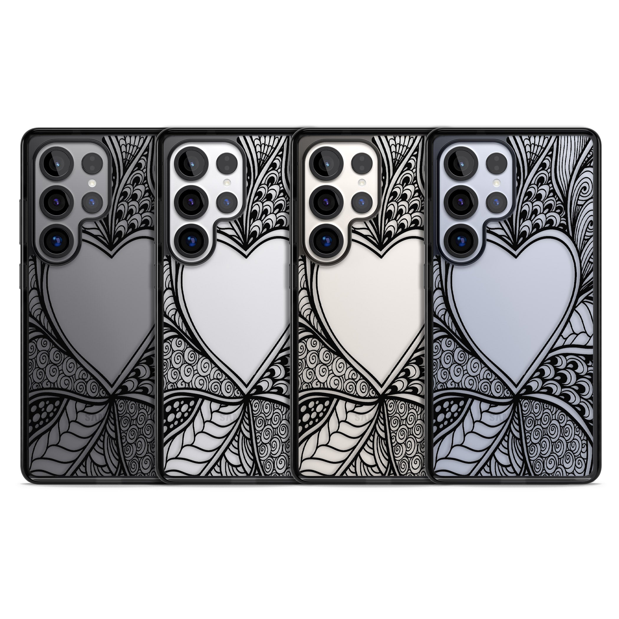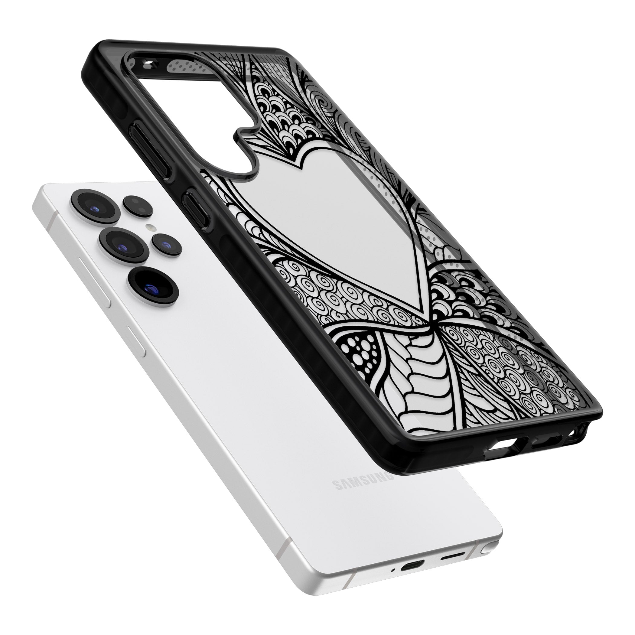 Expressive protection in black and white elegance. The Black Henna Heart case wraps your phone in detailed patterns that captivate.