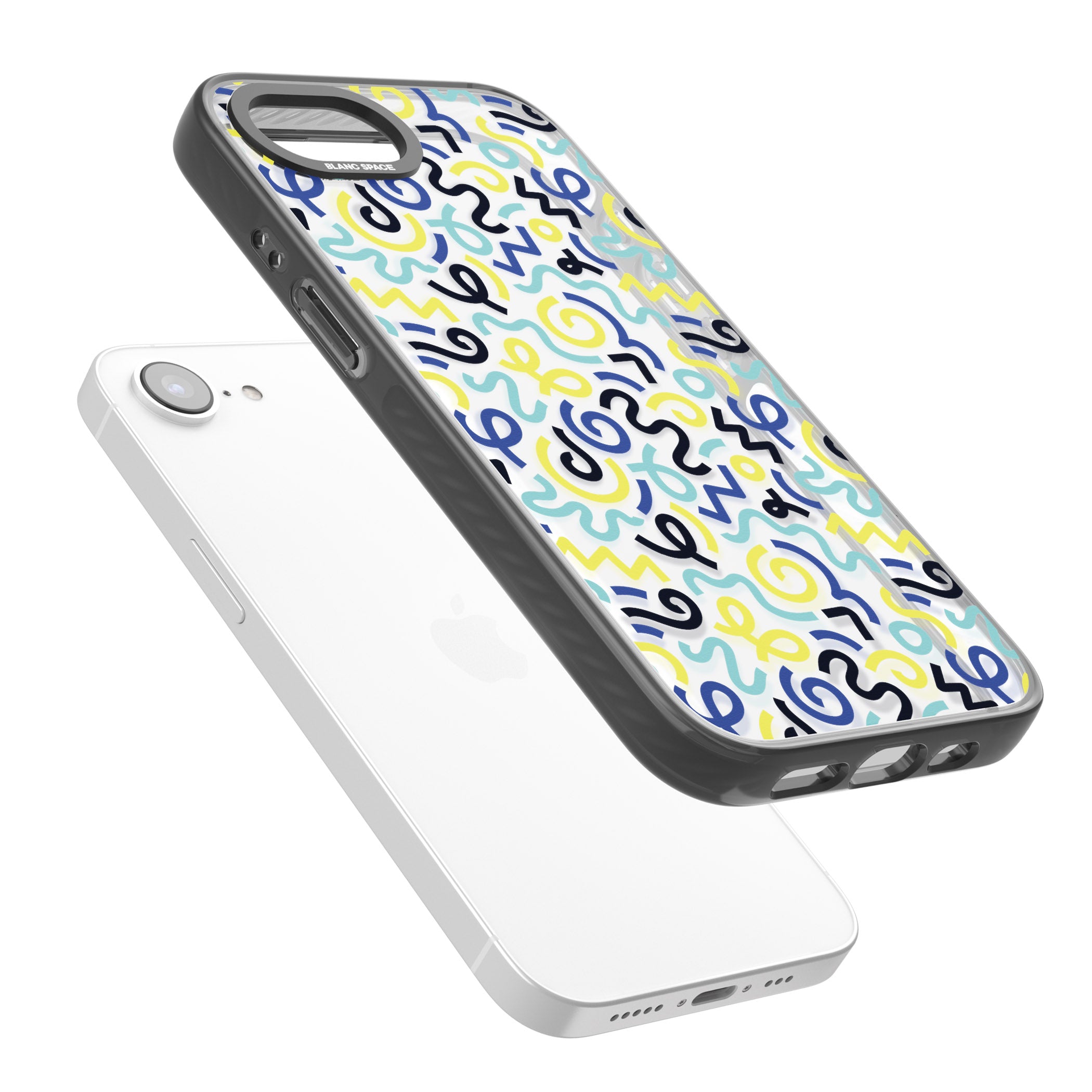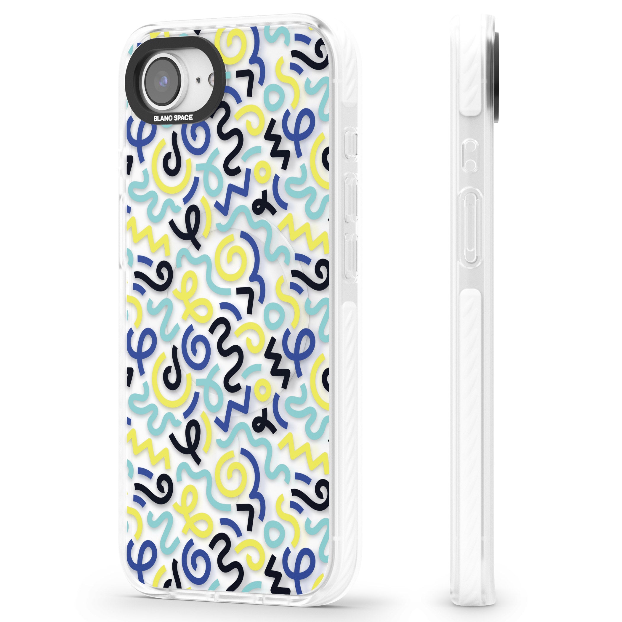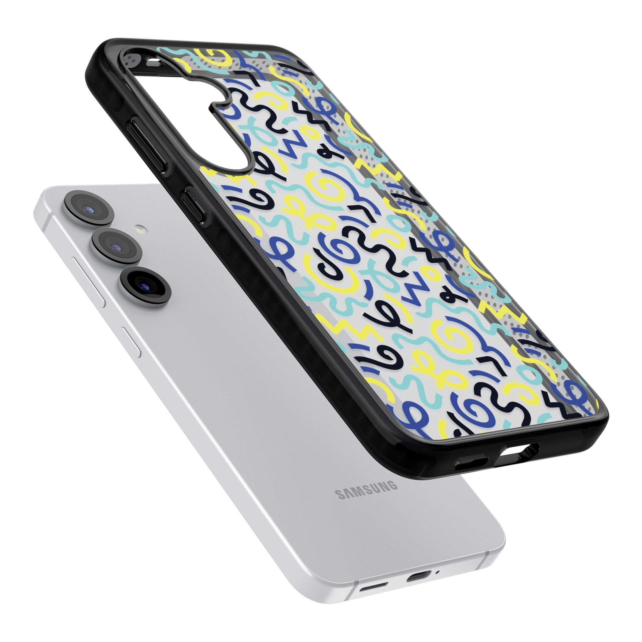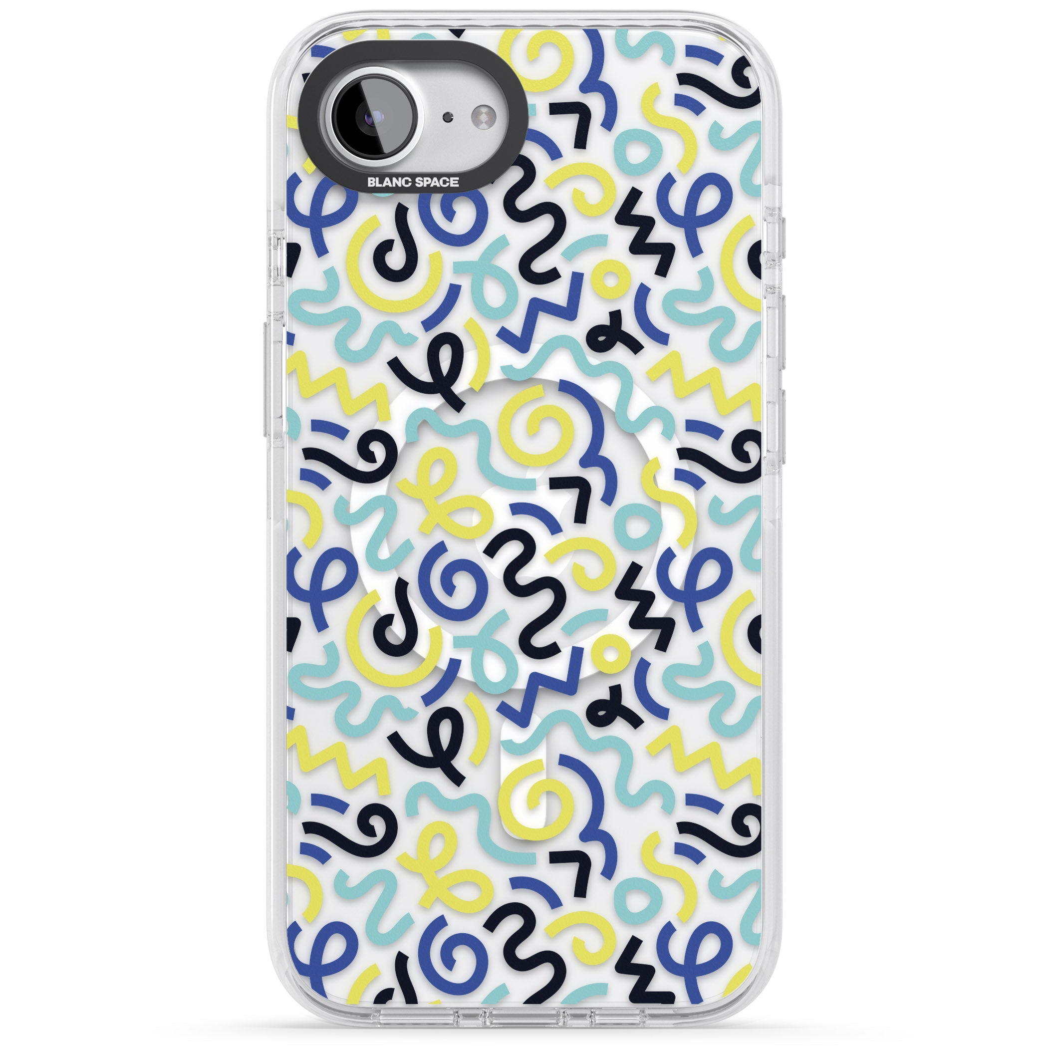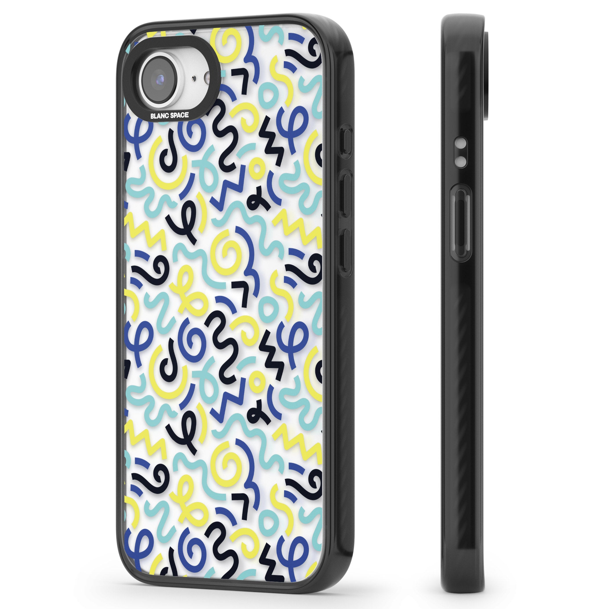 Turn heads with this Memphis-inspired phone case, where vibrant blue and yellow squiggles dance across a playful pattern. Perfect for expressing your unique style, it’s your phone, your way.