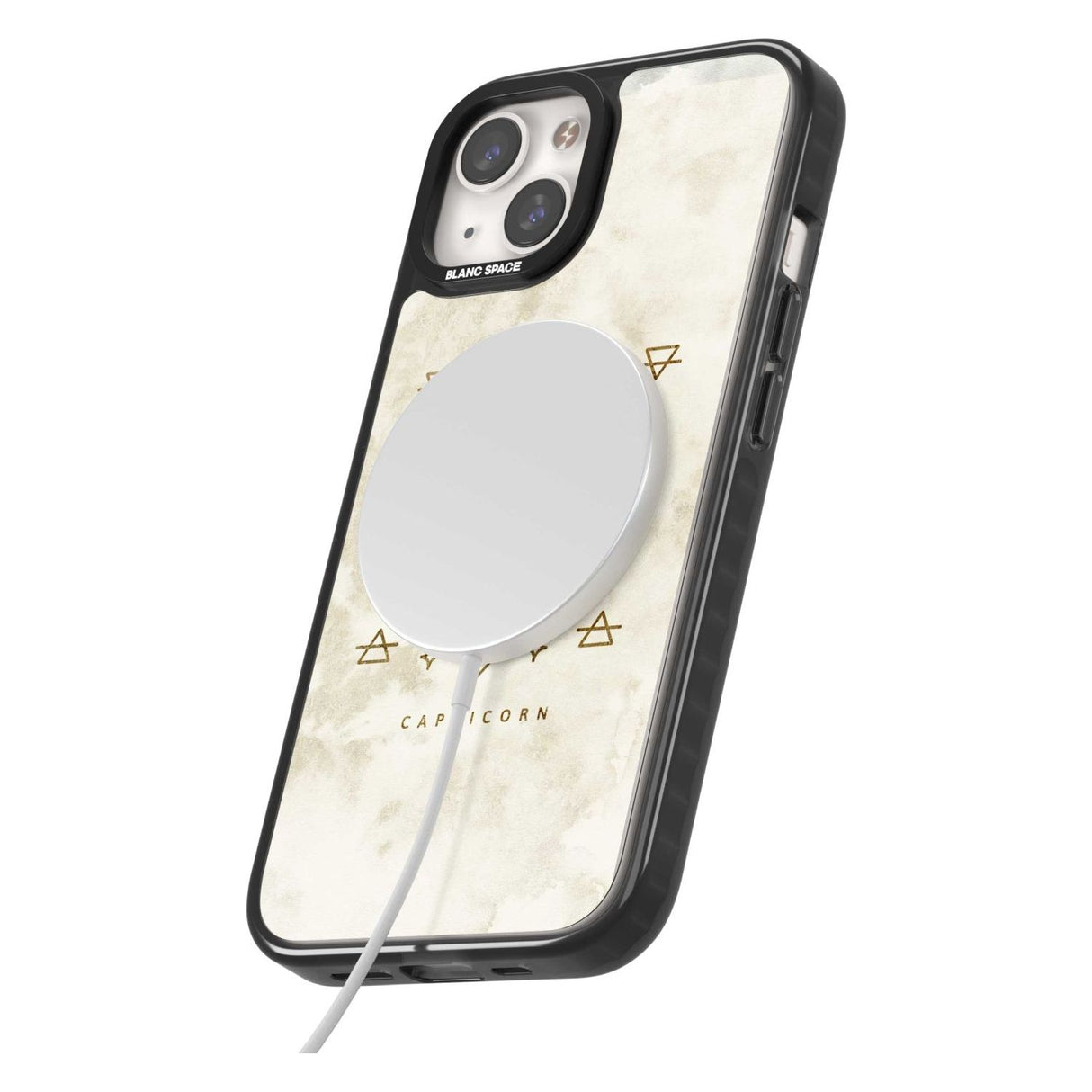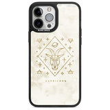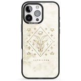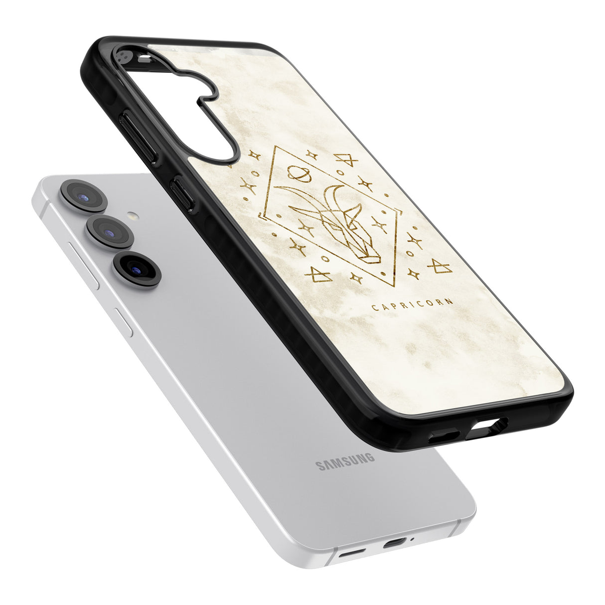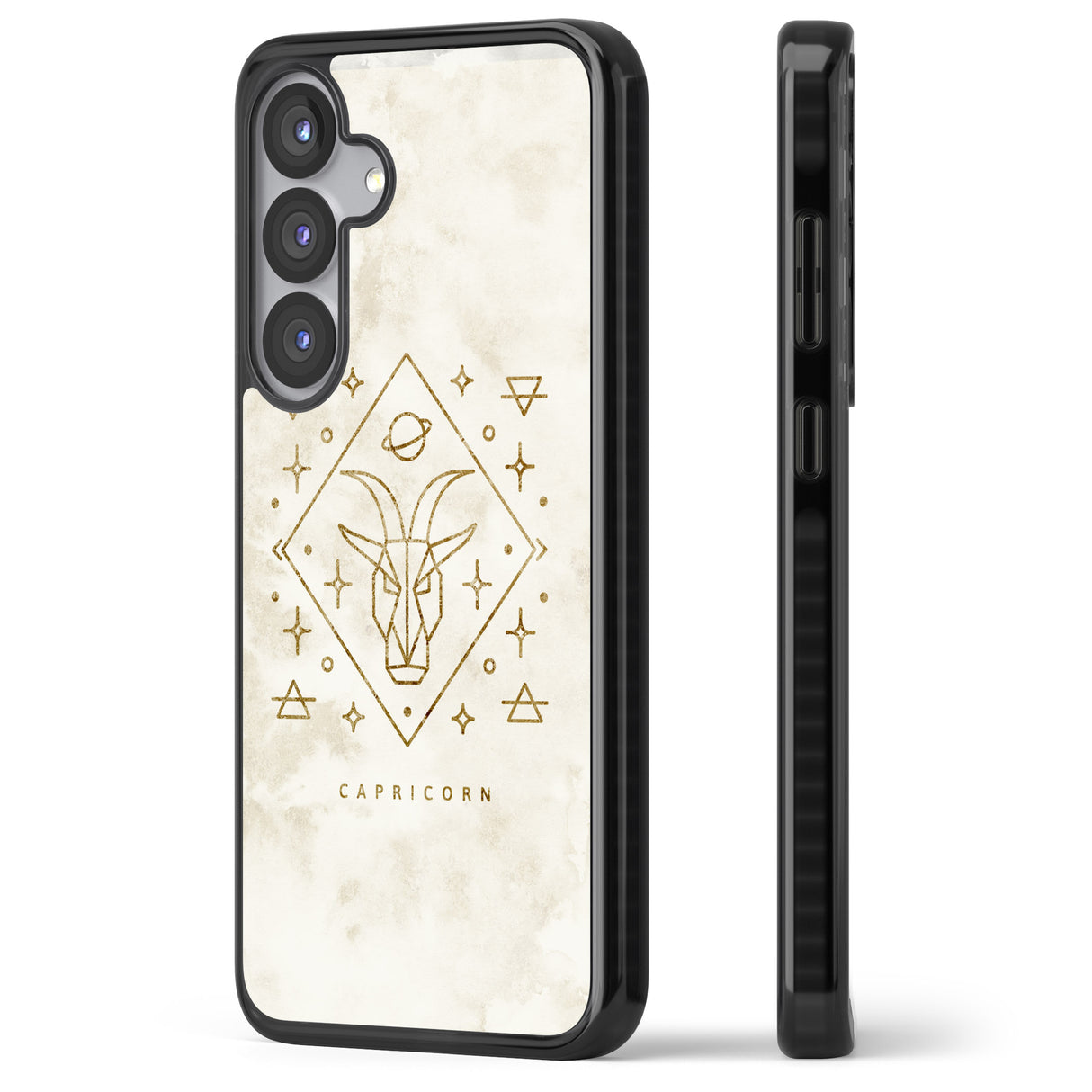 This golden emblem phone case showcases the Capricorn zodiac in a geometric pattern, perfect for iPhone and Samsung users looking for a touch of personalized style. Let your astrological sign guide your aesthetic choices—express yourself with protection that doesn't compromise on looks. The unique design elements, featuring intricate patterns and celestial symbols, recall a sense of mystery and individuality, ideal for those drawn to zodiac themes. Wrap your world in cosmic charm with our stylish phone case and let it be the guardian of your device. Compatible with iPhone and Samsung, this piece ensures your phone is as safe as it is stylish.