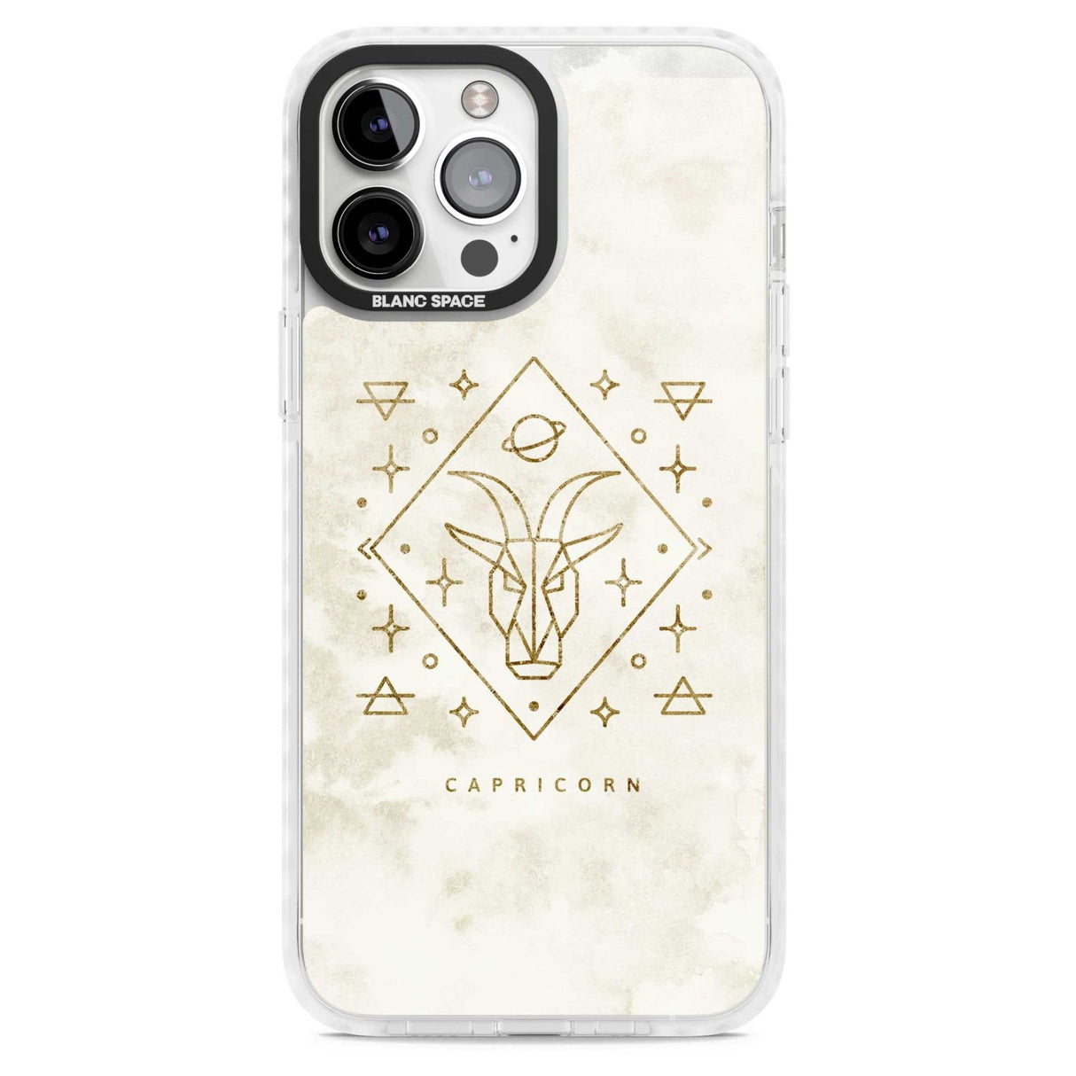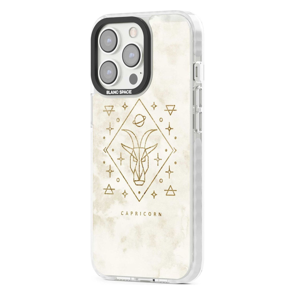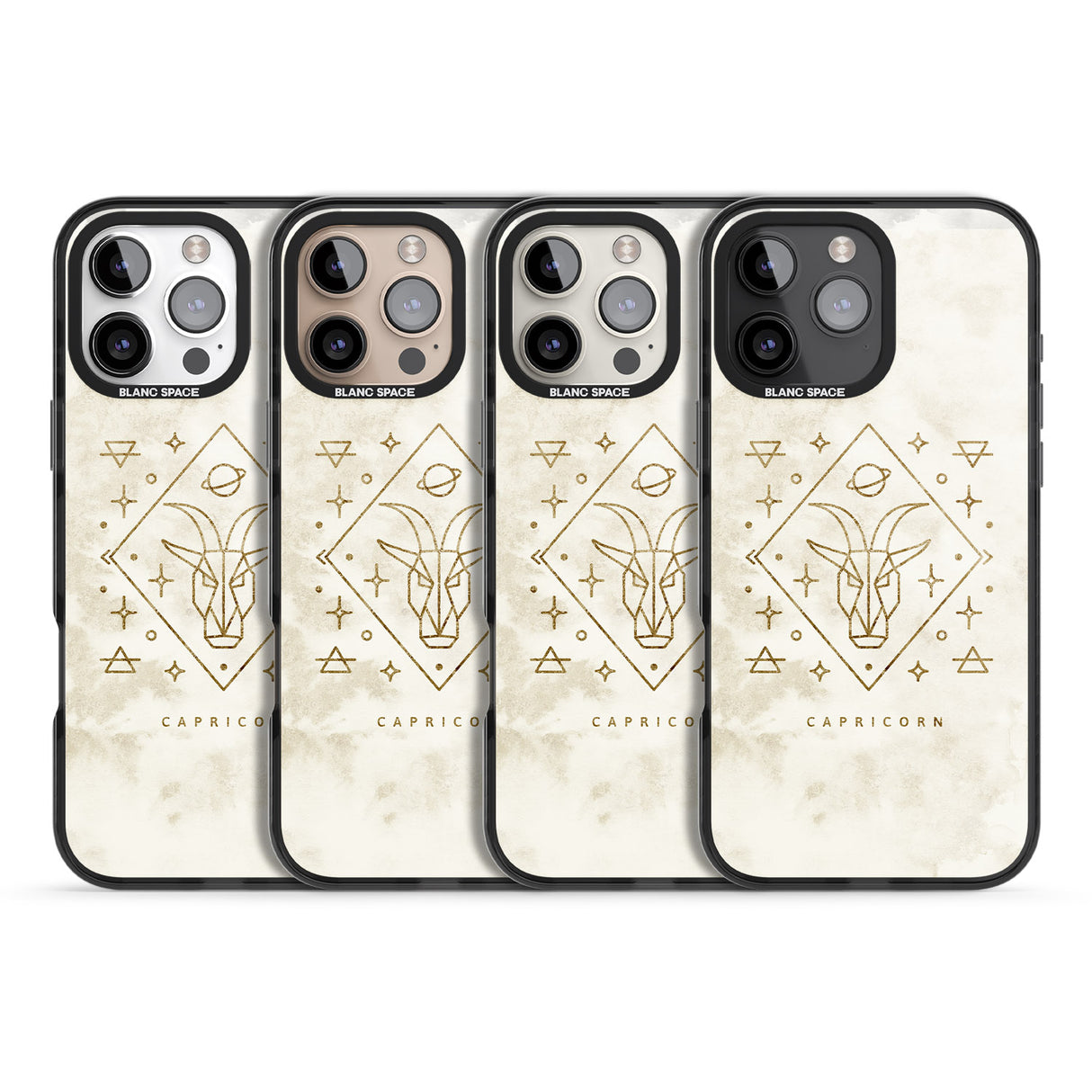 This golden emblem phone case showcases the Capricorn zodiac in a geometric pattern, perfect for iPhone and Samsung users looking for a touch of personalized style. Let your astrological sign guide your aesthetic choices—express yourself with protection that doesn't compromise on looks. The unique design elements, featuring intricate patterns and celestial symbols, recall a sense of mystery and individuality, ideal for those drawn to zodiac themes. Wrap your world in cosmic charm with our stylish phone case and let it be the guardian of your device. Compatible with iPhone and Samsung, this piece ensures your phone is as safe as it is stylish.