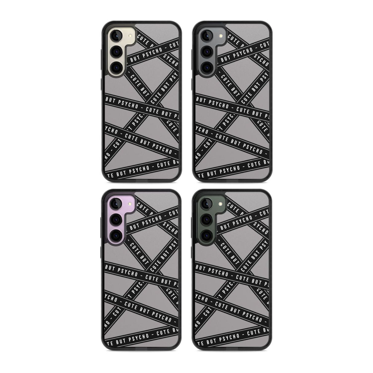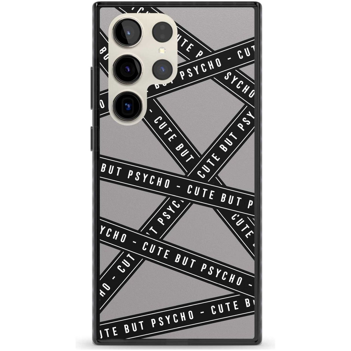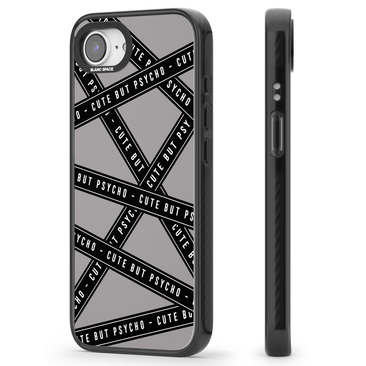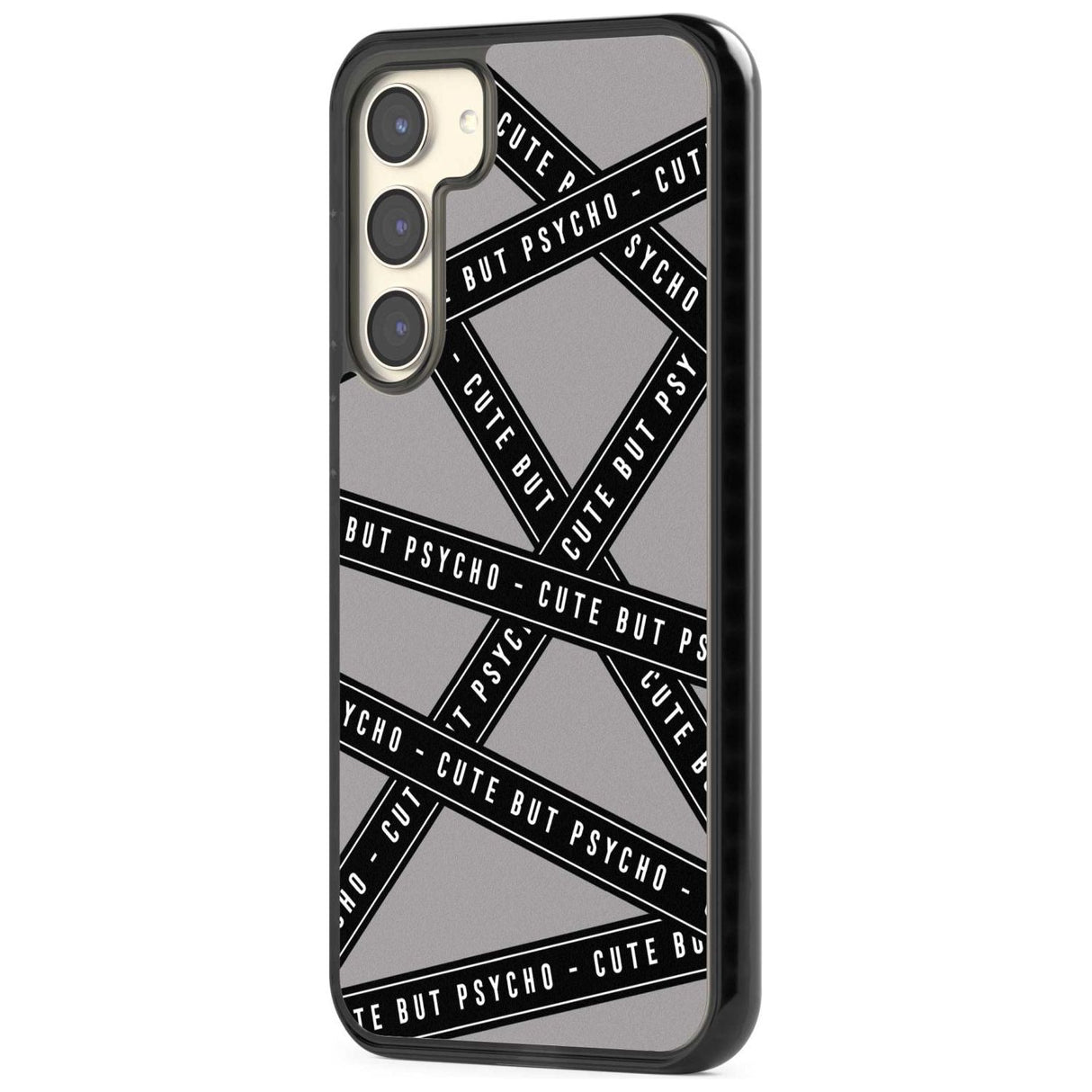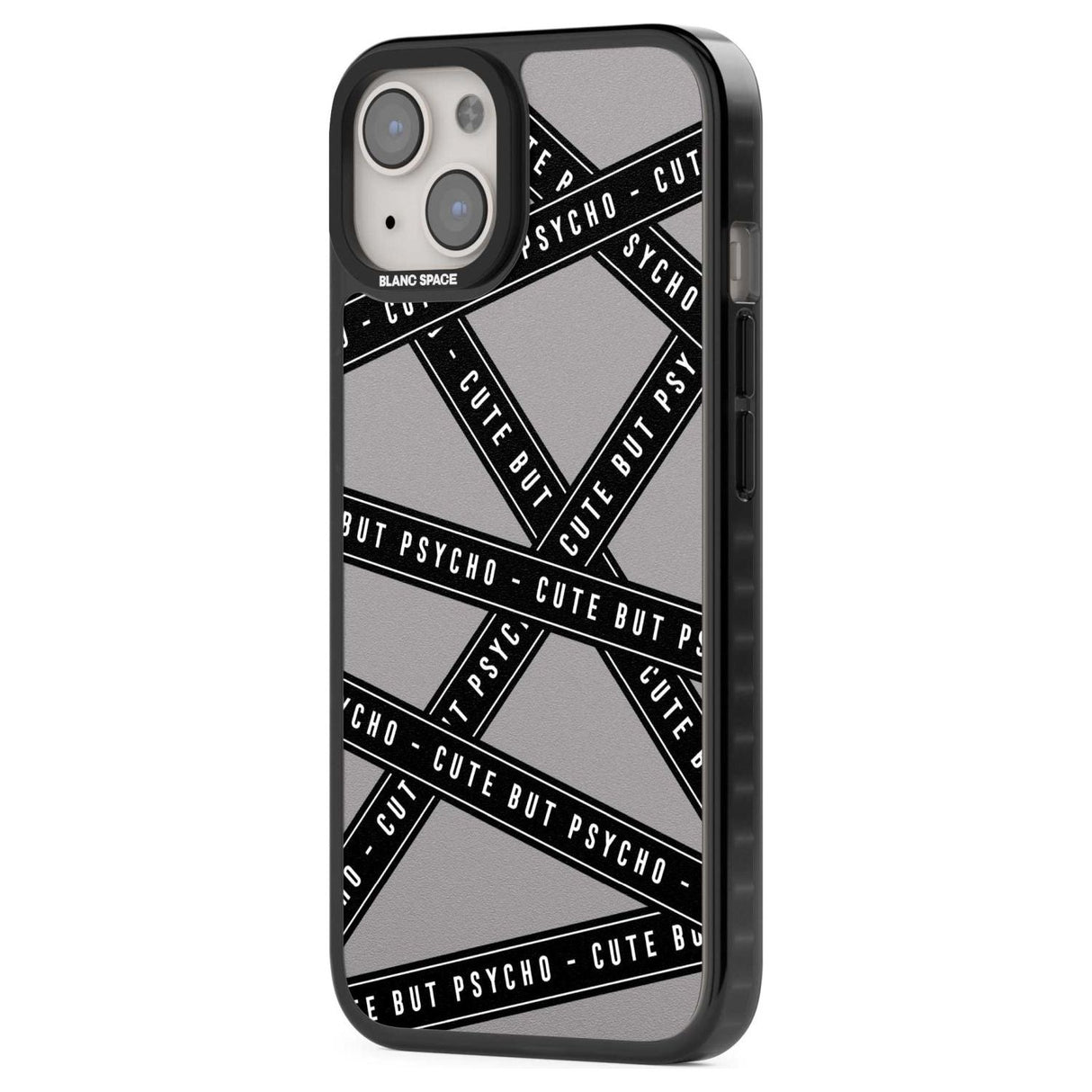 This phone case features a bold design with overlapping black caution tape patterns that read "Cute But Psycho" against a sleek background. Compatible with iPhone and Samsung models, it's crafted for durability while ensuring your personal style shines through. Ideal for those who love to make a statement, this case offers protection with personality, blending edgy aesthetics with practical functionality. Stand out and express yourself while keeping your phone safe and stylish.