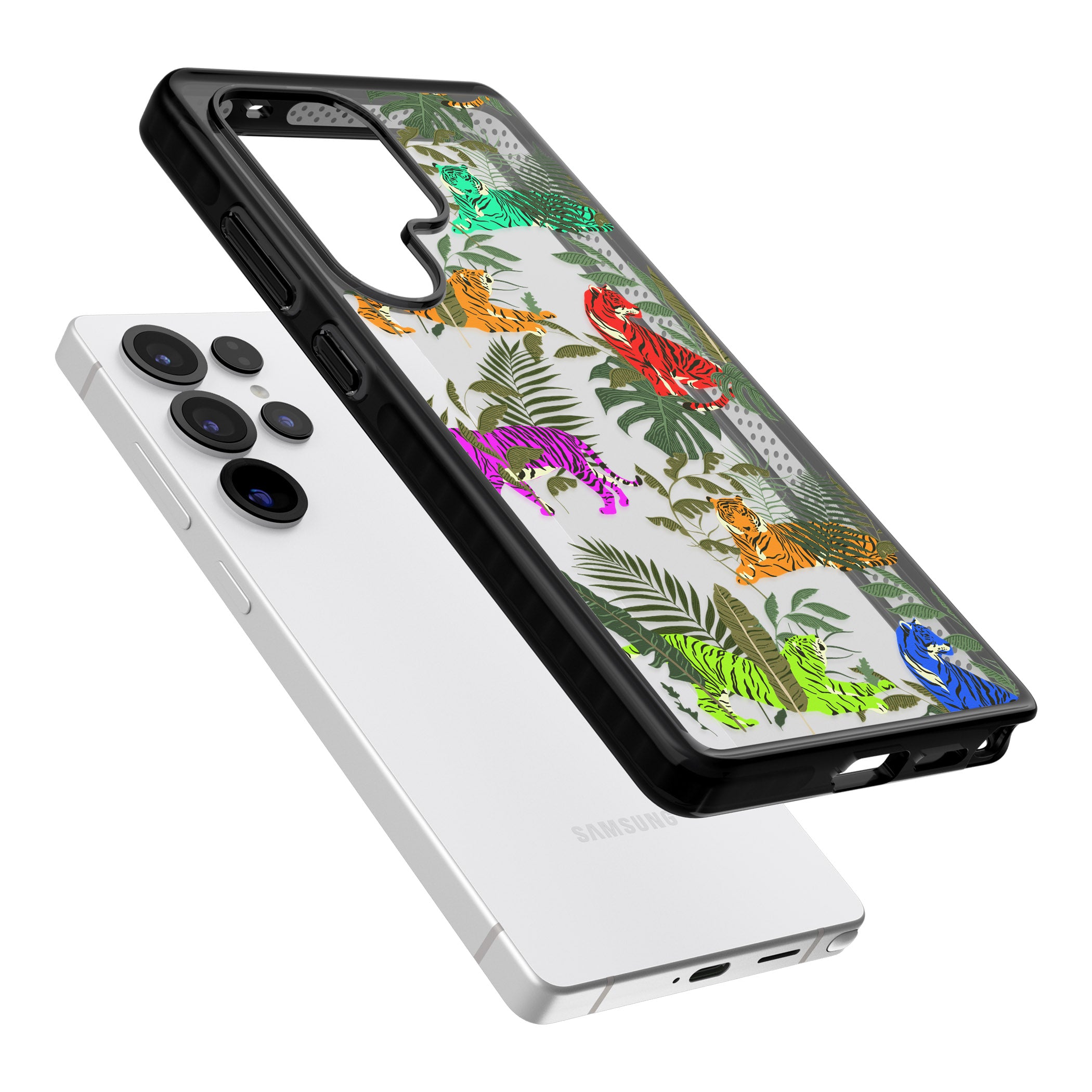 Step into the wild with our Colorful Jungle Tiger Phone Case. Bringing together protection and an eye-catching design, this case lets you express your vibrant personality with its playful tigers and lush leaf patterns.