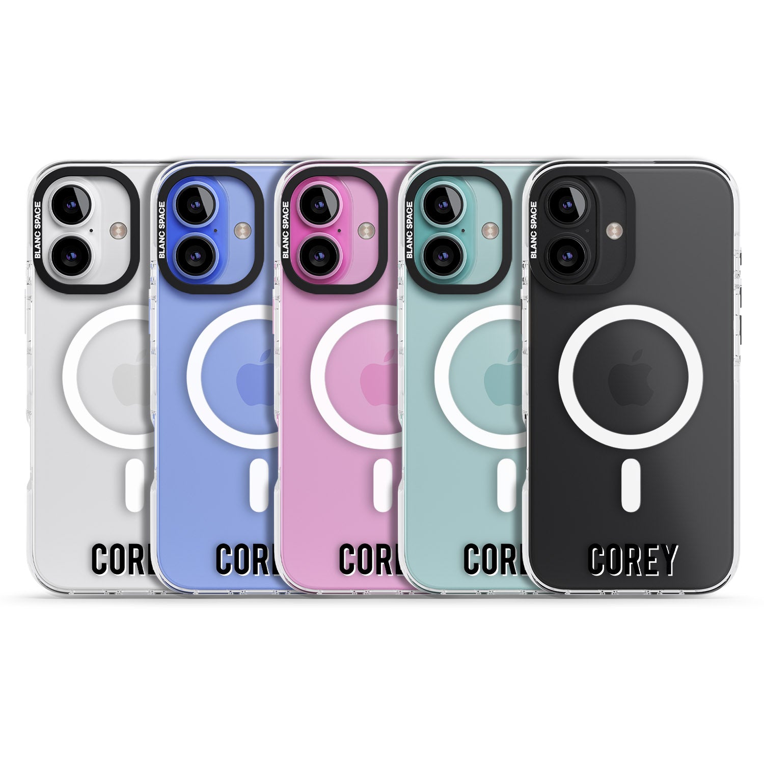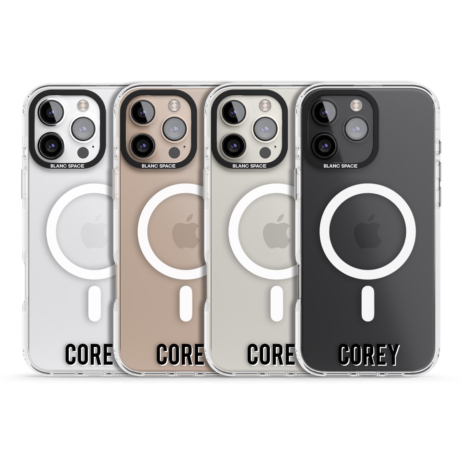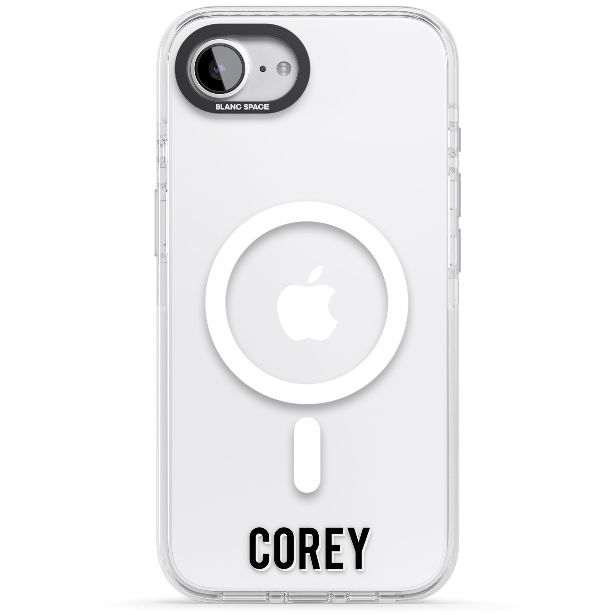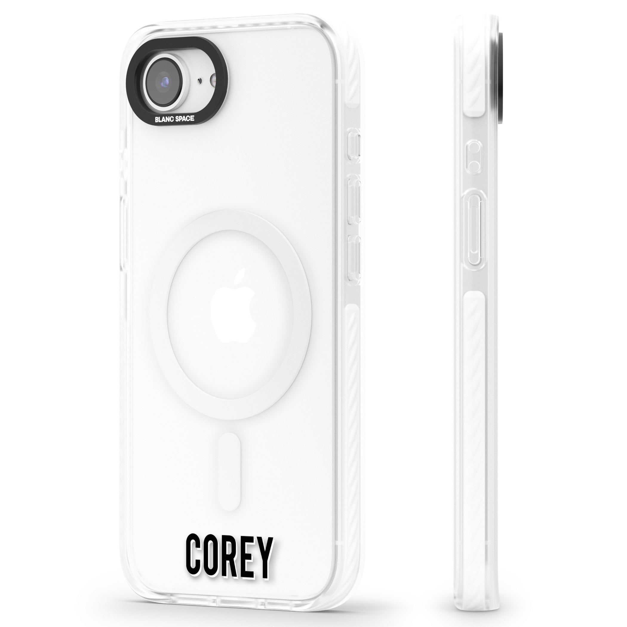 Express your style with the Corey Text Phone Case. Made for the bold and playful, this personalized case ensures your phone stands out with your chosen text, encapsulating both protection and personality.