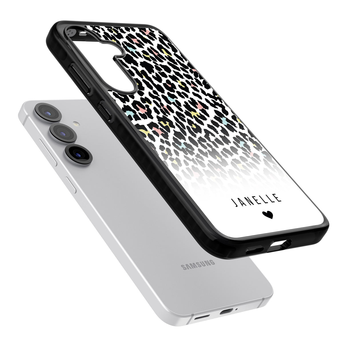 This eye-catching phone case features a vibrant leopard pattern with pastel hues of pink, blue, and yellow, perfect for iPhone and Samsung models. Express your bold personality while keeping your phone safe and stylish. The print is inspired by high fashion and aesthetic trends, making it a chic addition to any outfit. Its sturdy construction offers premium protection while letting you showcase your flair.