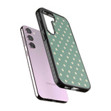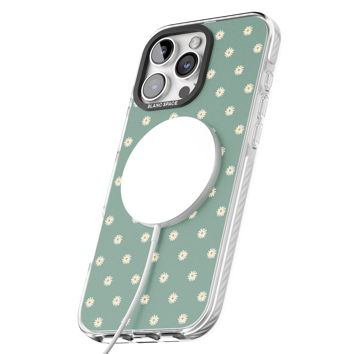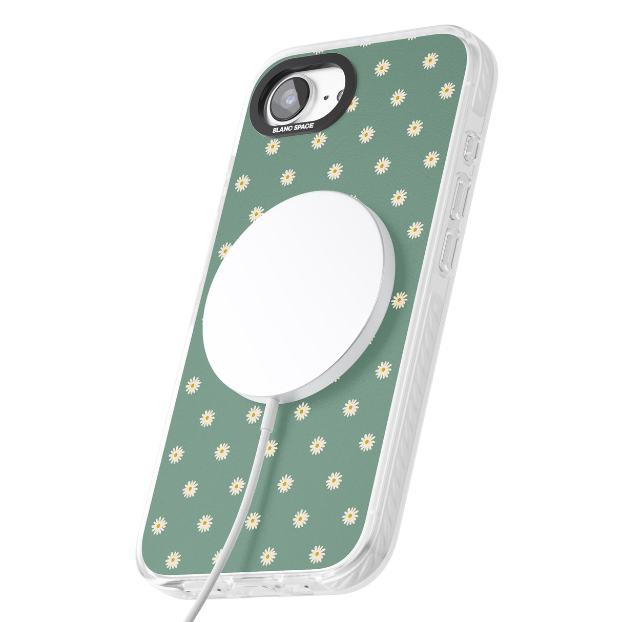 Sweet but structured — this daisy-dotted case brings a soft floral vibe to a bold teal backdrop. Perfect for adding charm while keeping your phone safe in style.