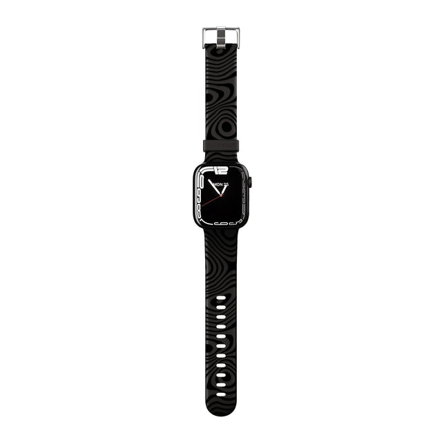 Elevate your watch's style with this sleek black and white abstract optical illusion strap. Featuring a mesmerizing fluid wave pattern, this watch strap combines modern aesthetics with a bold, eye-catching design.