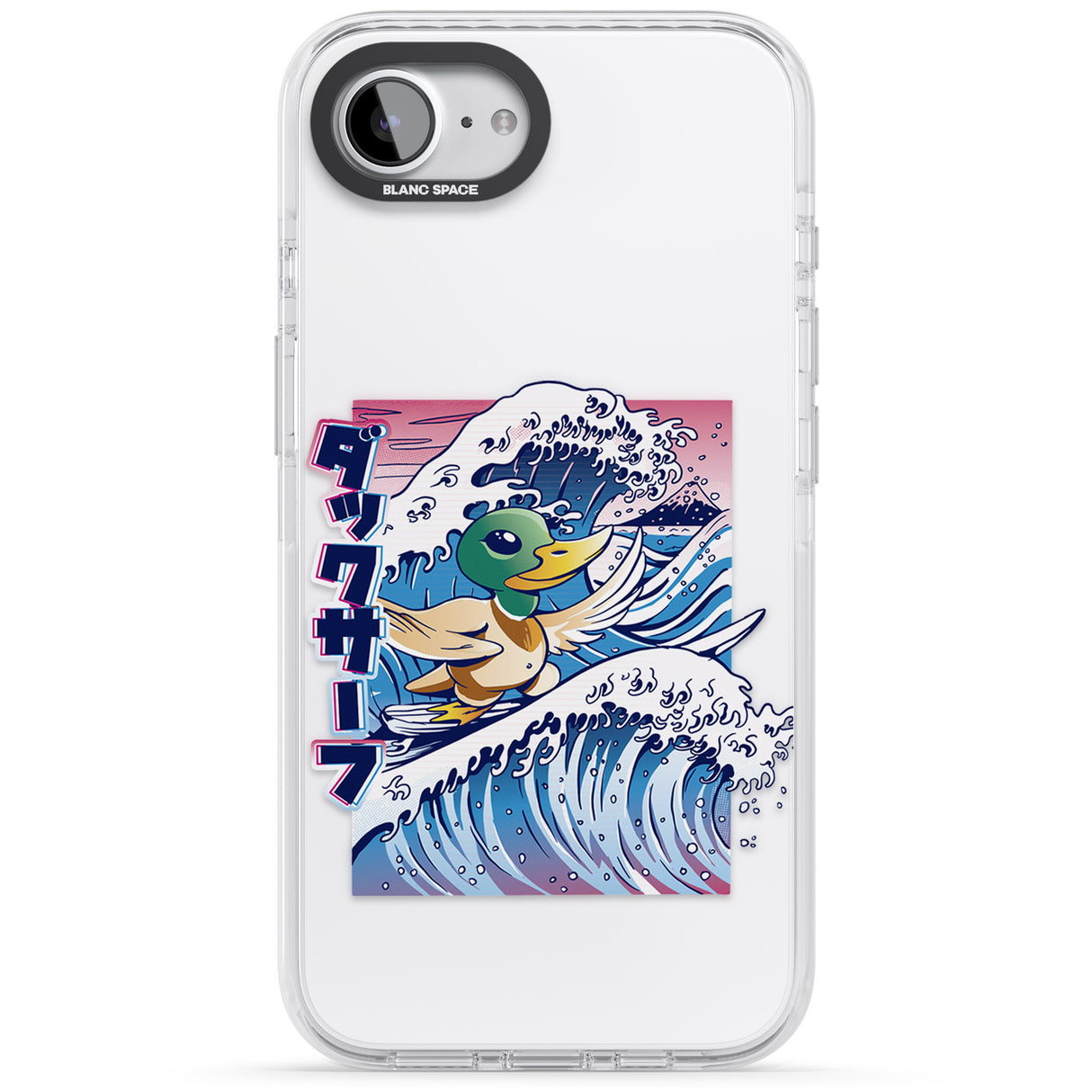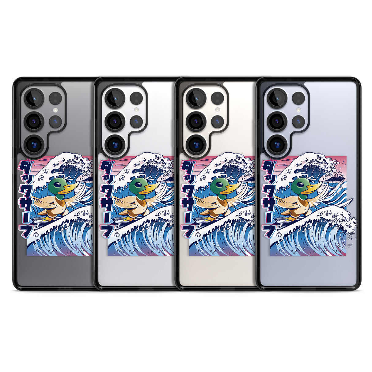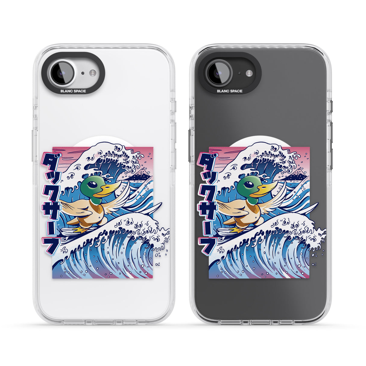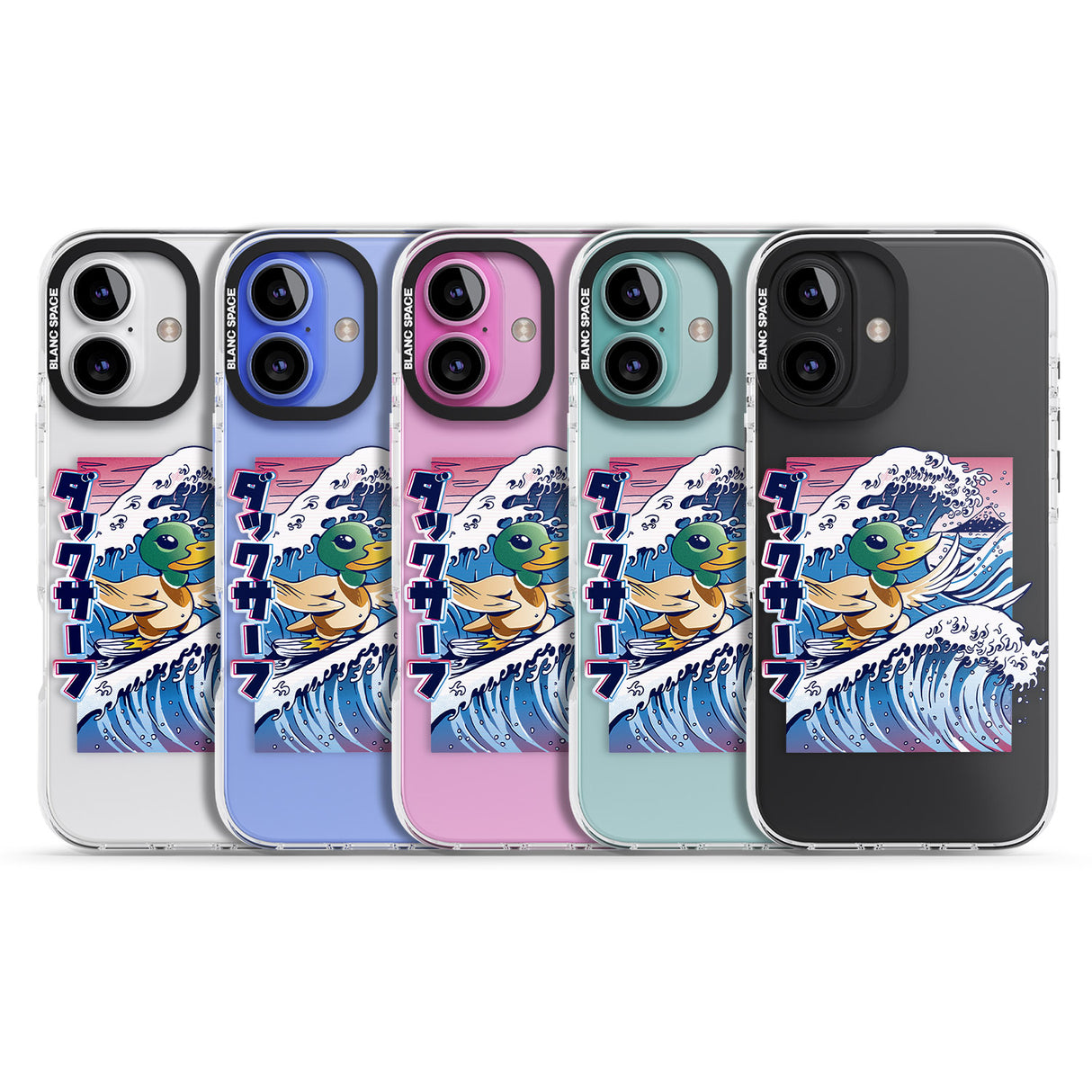 Ride the waves with flair! This eye-catching design features a playful duck surfing through vibrant pastel waters. Perfect for showcasing your fun side while keeping your phone protected.