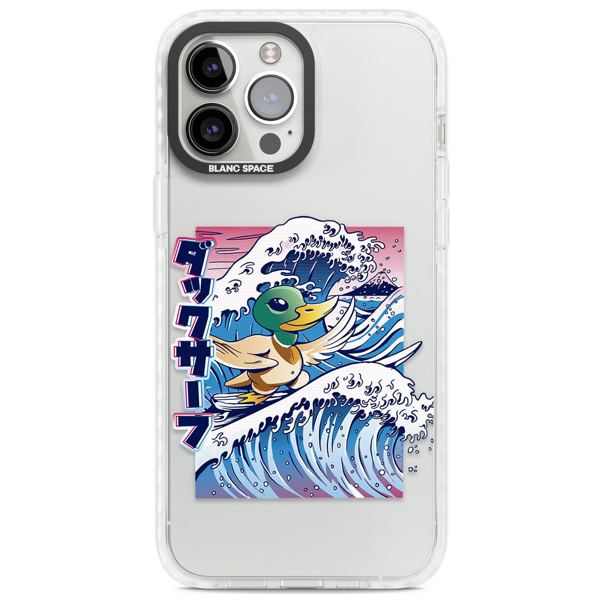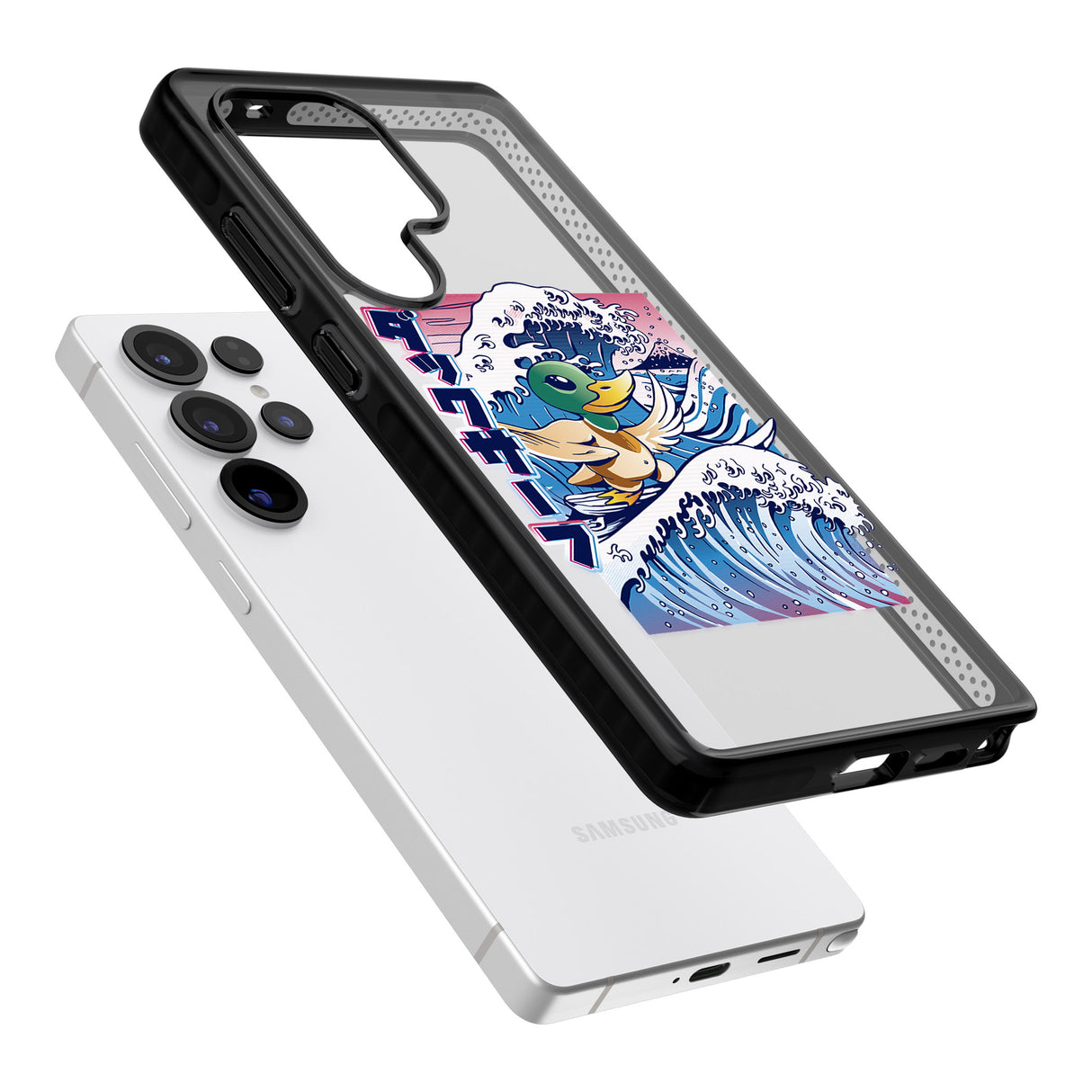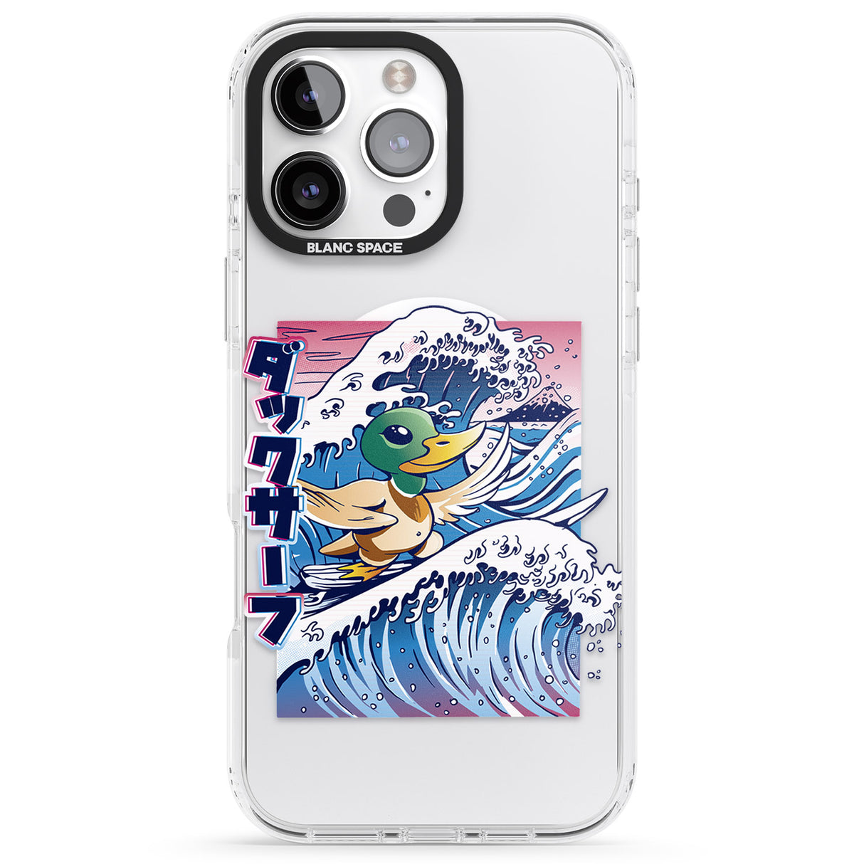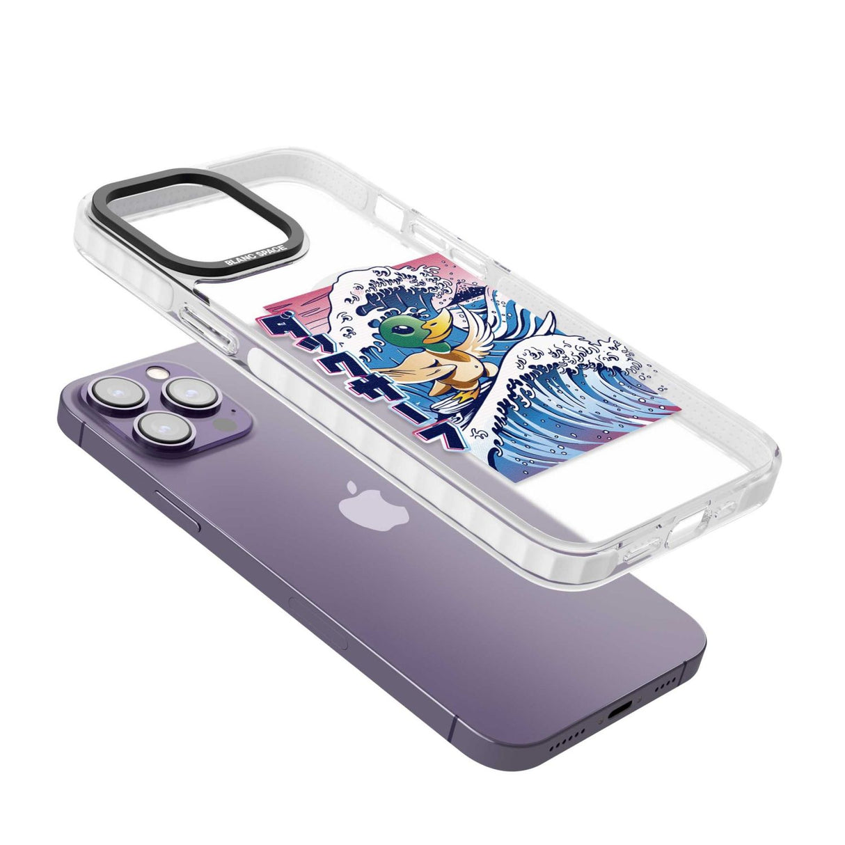 Ride the waves with flair! This eye-catching design features a playful duck surfing through vibrant pastel waters. Perfect for showcasing your fun side while keeping your phone protected.