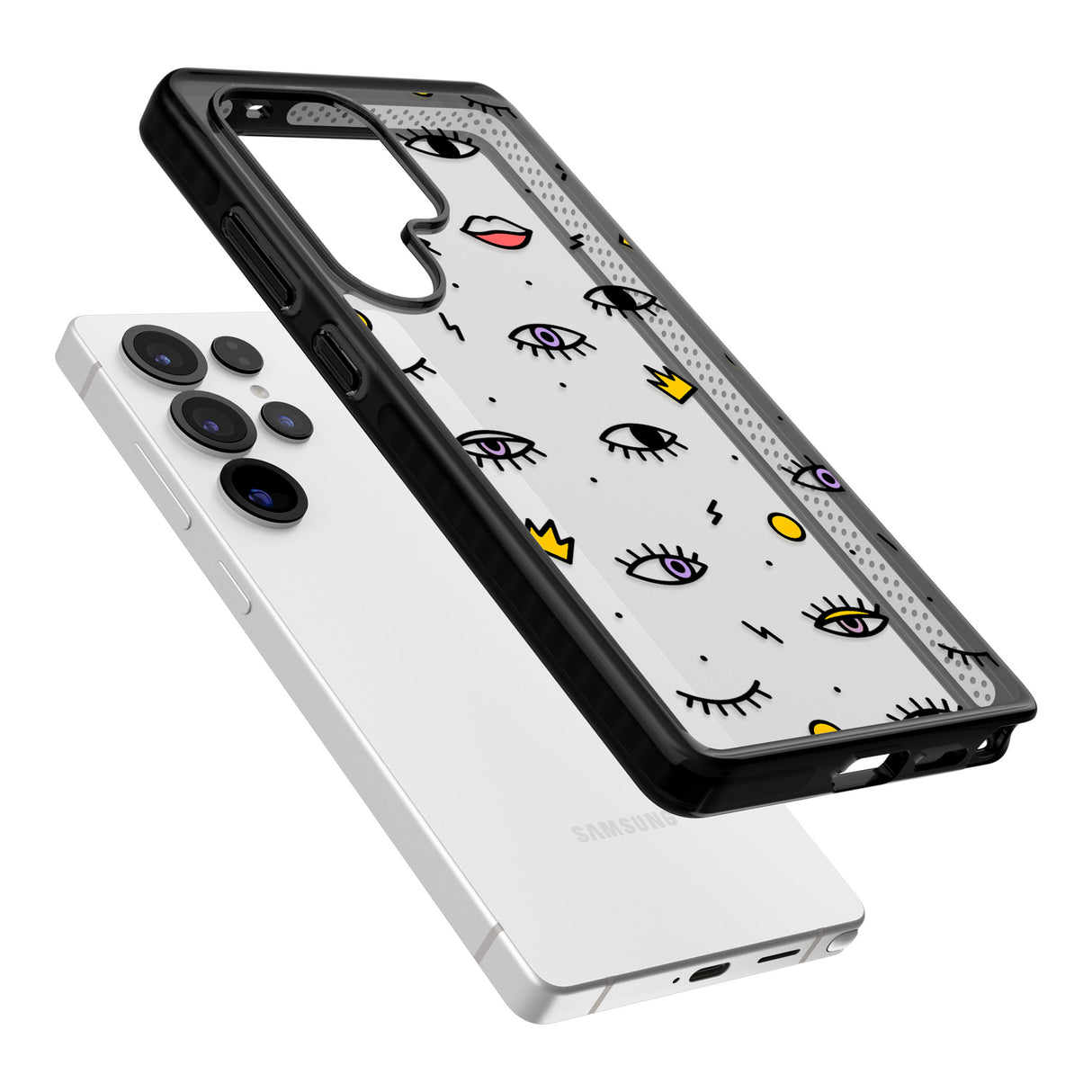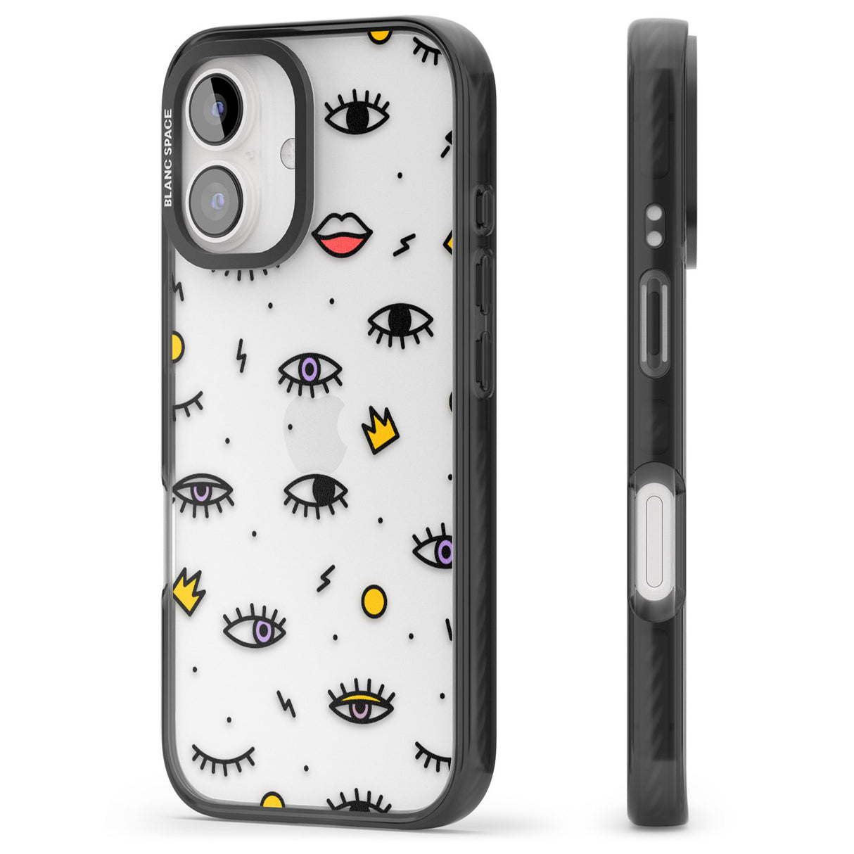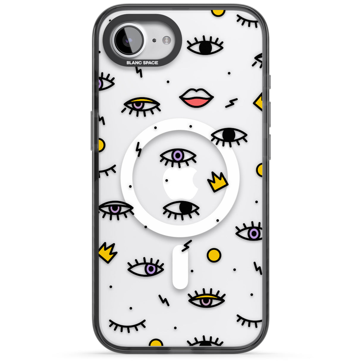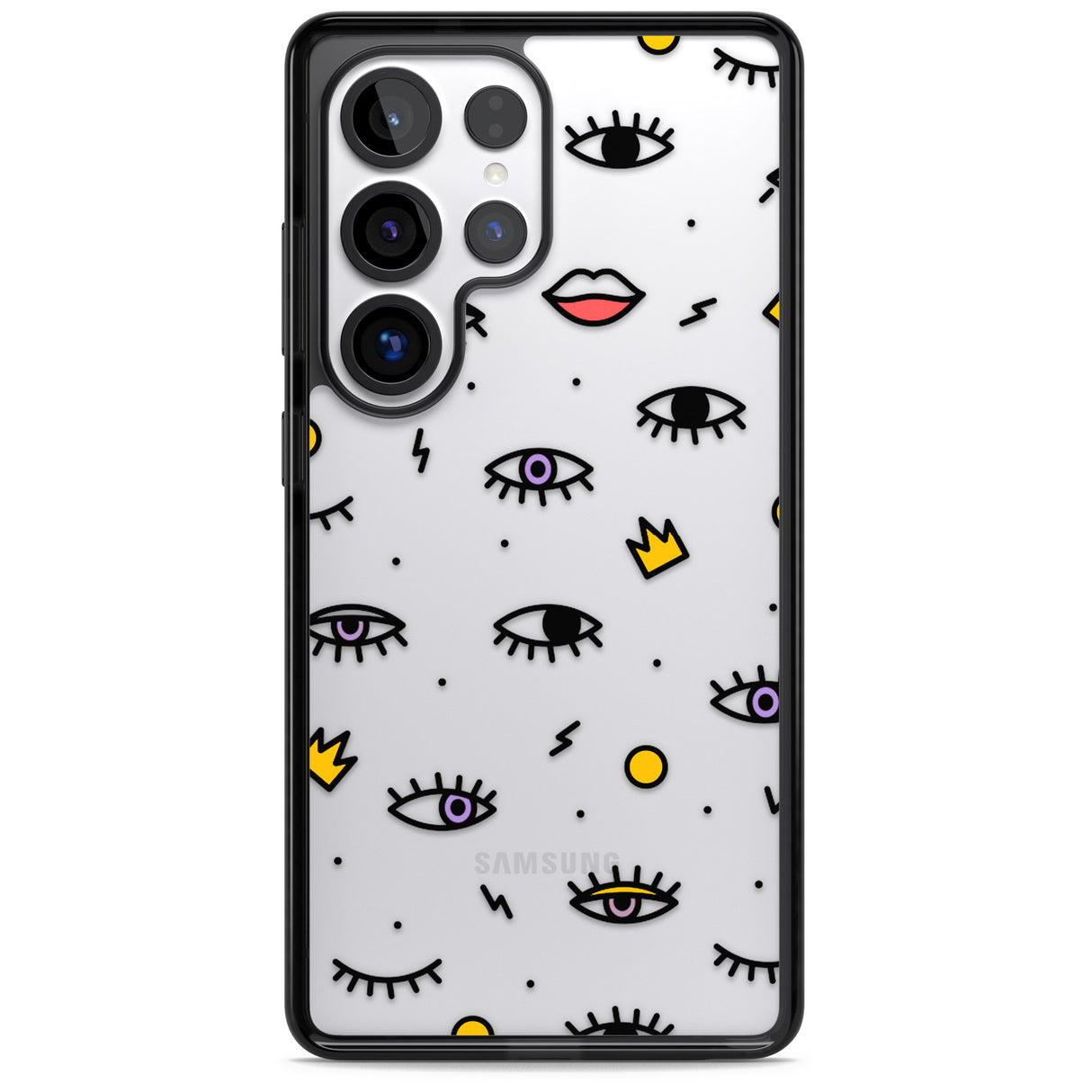Elevate your style with a phone case that's both playful and protective. This design features whimsical eyes and lips icons, adding personality to your device while keeping it safe. "Protection with Personality."