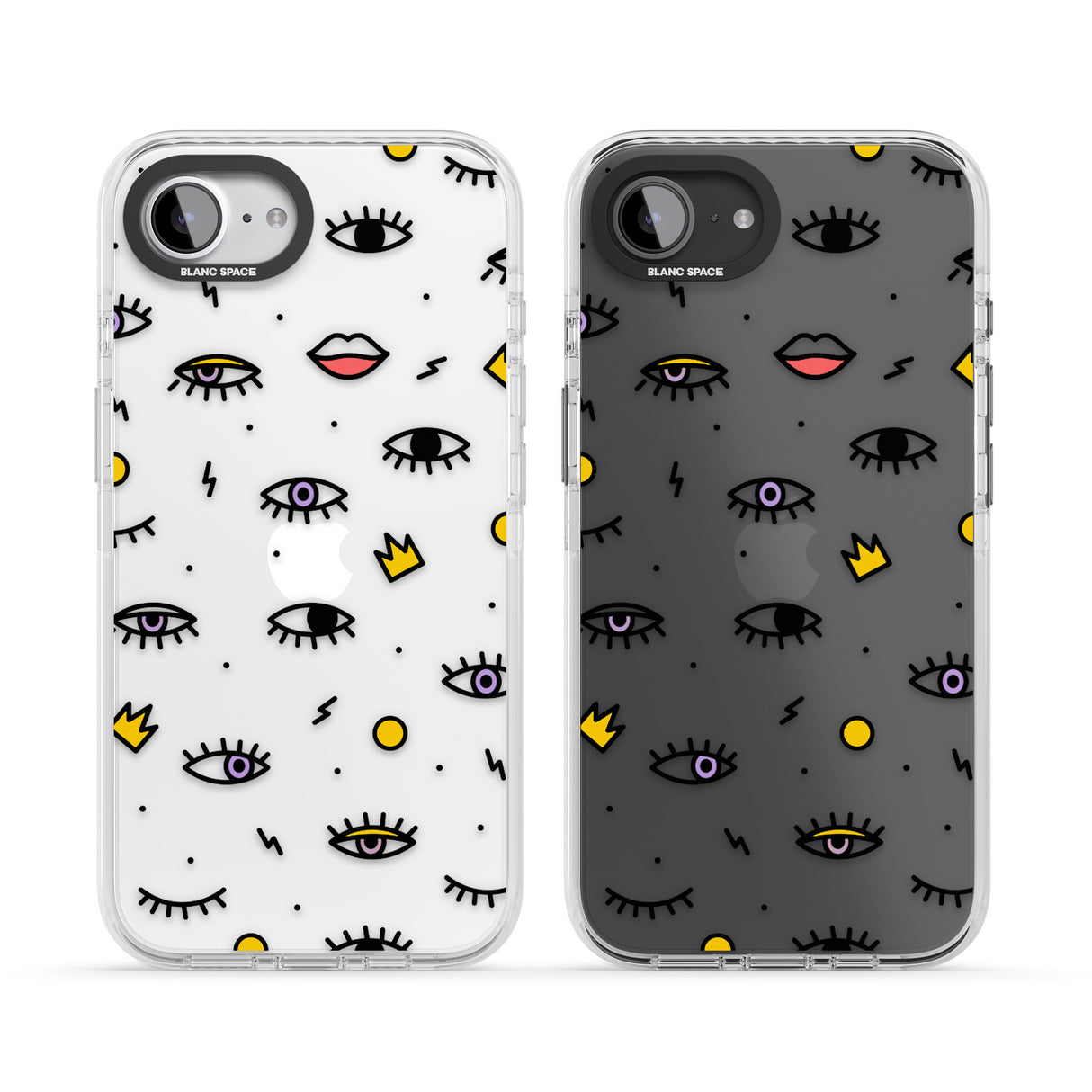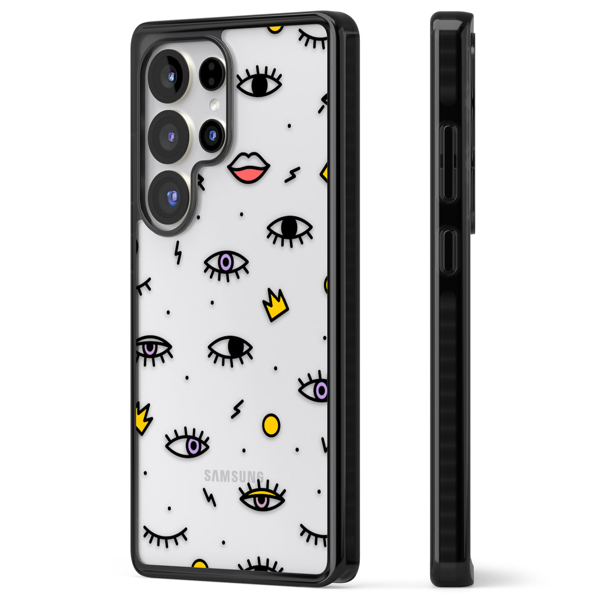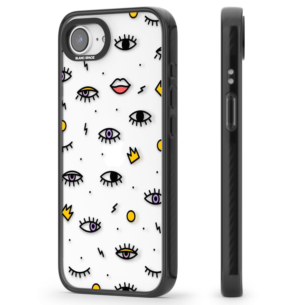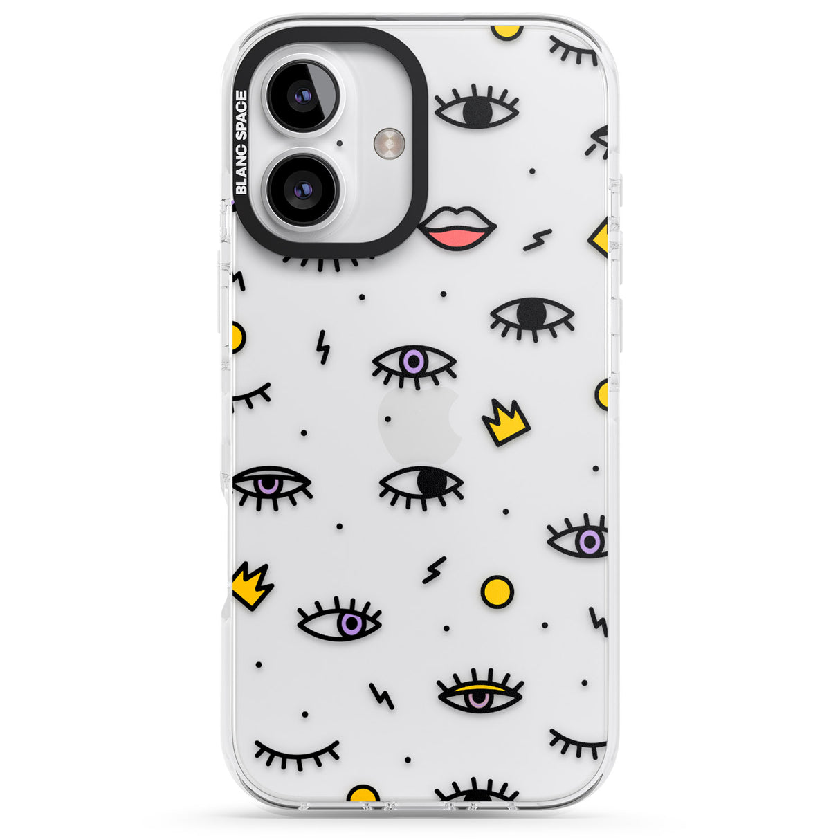 Elevate your style with a phone case that's both playful and protective. This design features whimsical eyes and lips icons, adding personality to your device while keeping it safe. "Protection with Personality."
