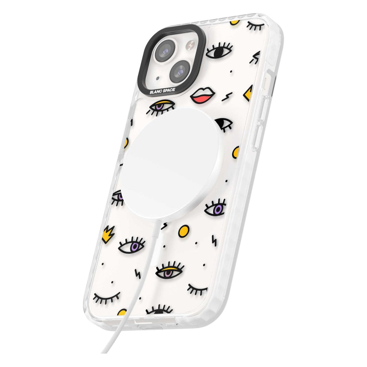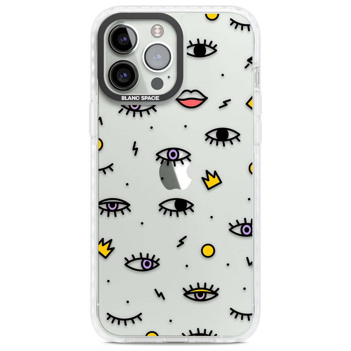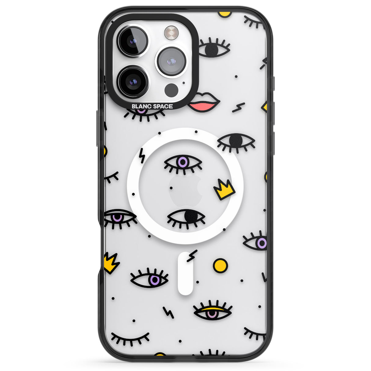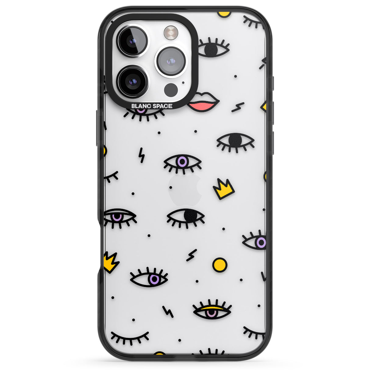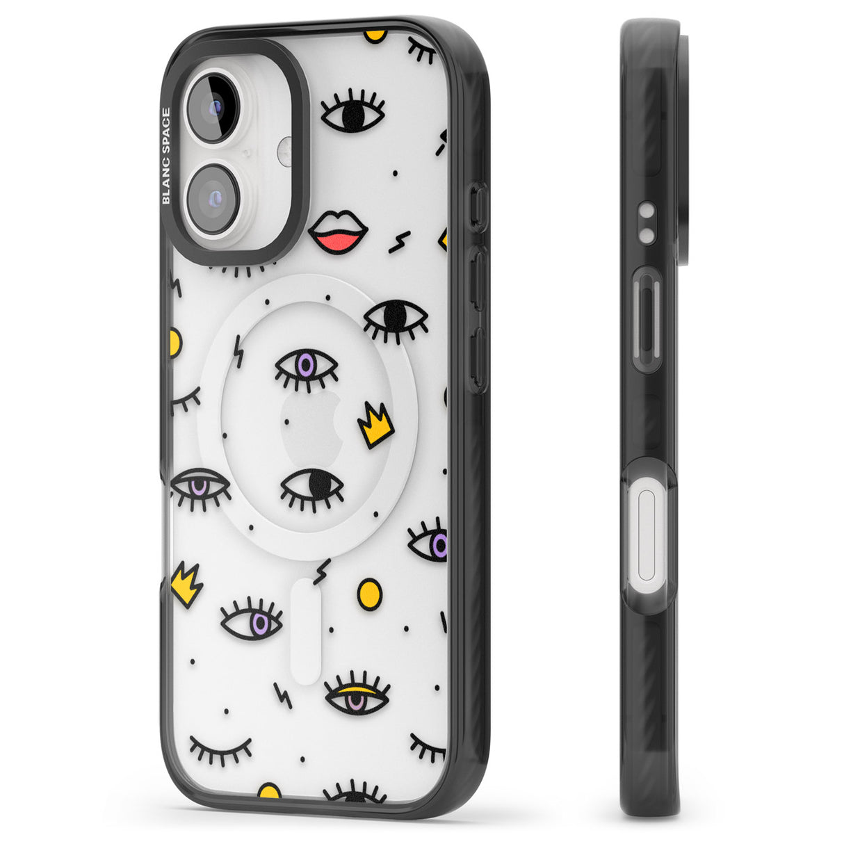 Elevate your style with a phone case that's both playful and protective. This design features whimsical eyes and lips icons, adding personality to your device while keeping it safe. "Protection with Personality."