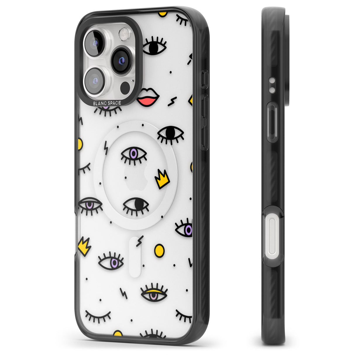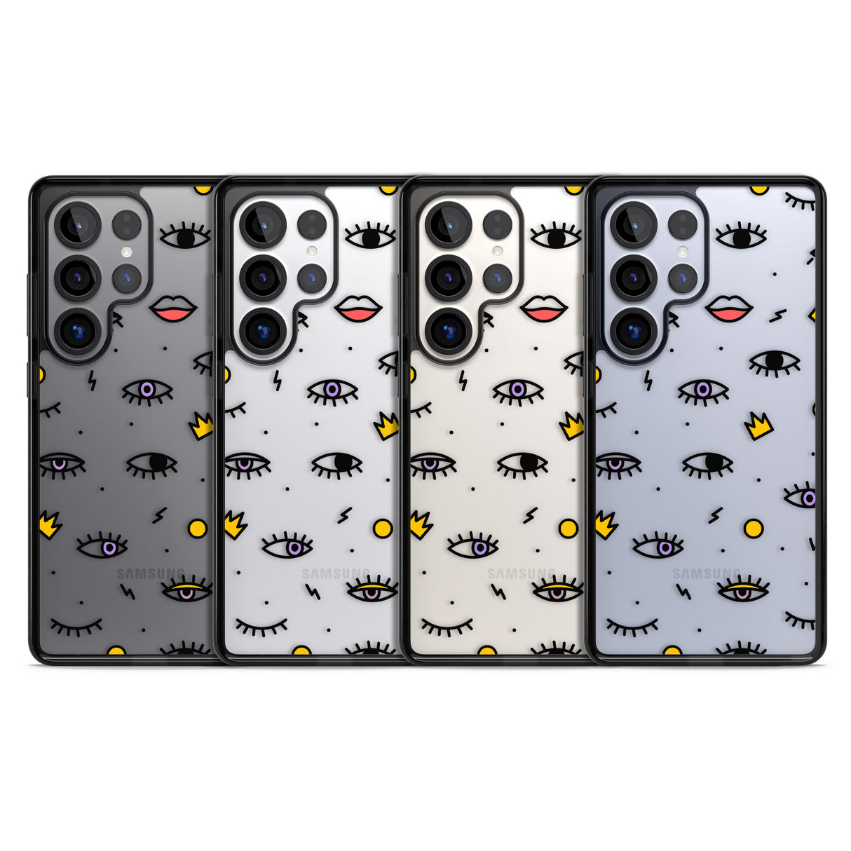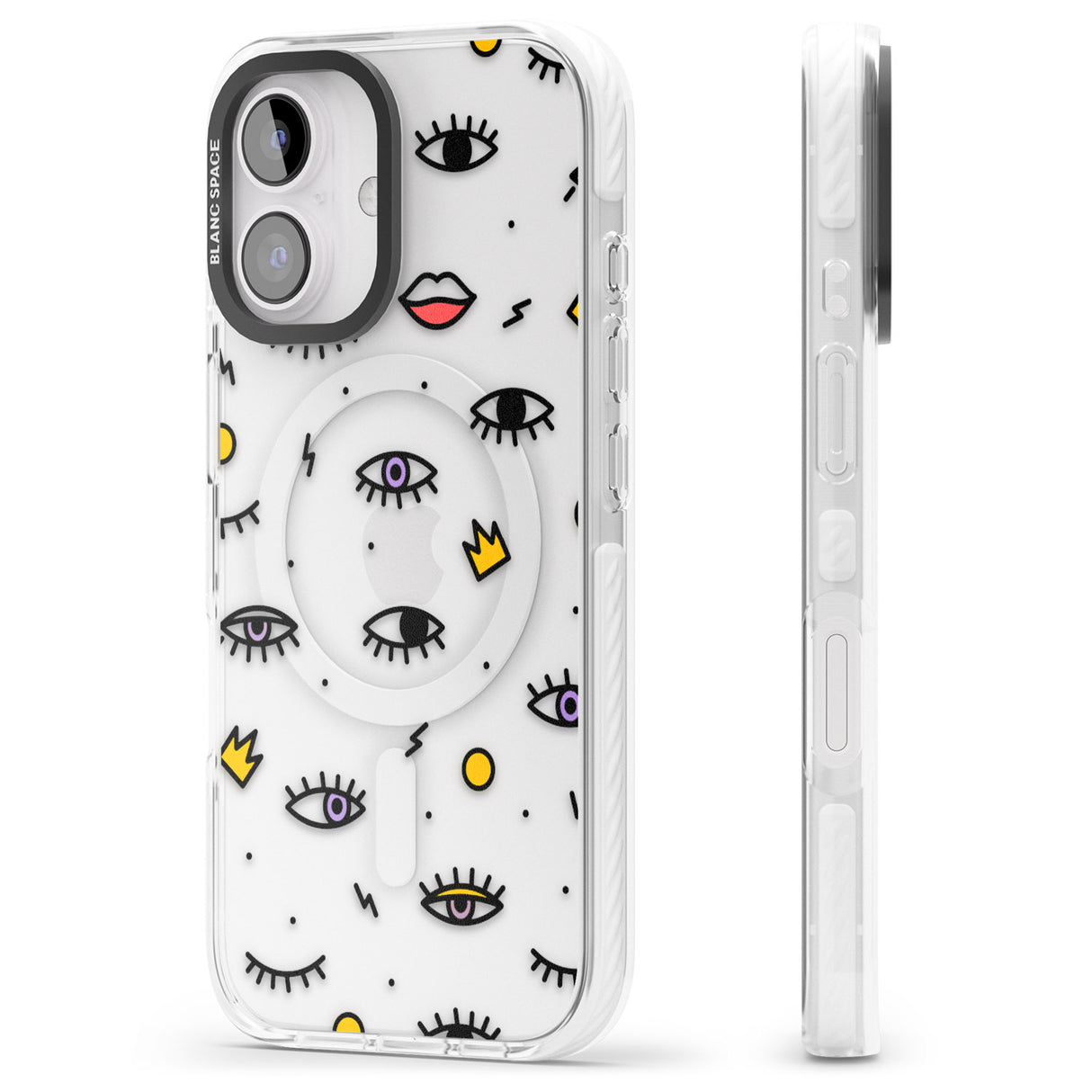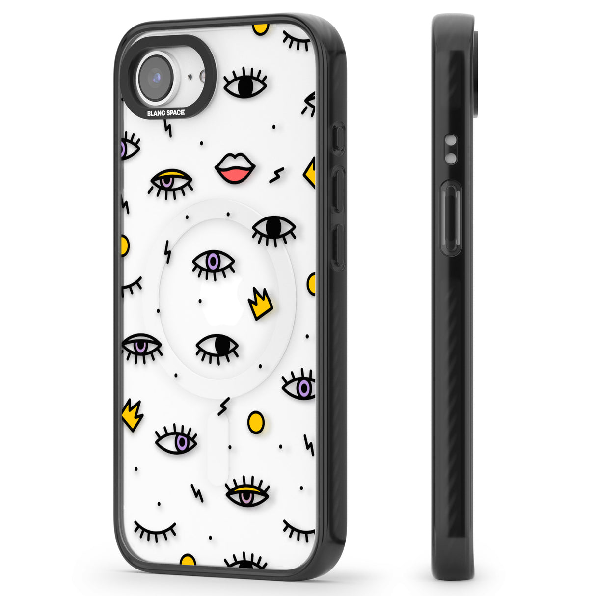 Elevate your style with a phone case that's both playful and protective. This design features whimsical eyes and lips icons, adding personality to your device while keeping it safe. "Protection with Personality."