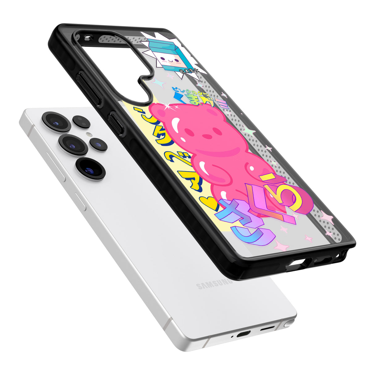 The Kawaii Pink Bear Phone Case features a vibrant pink cartoon bear surrounded by colorful Japanese text and charming graphics, making it a must-have for kawaii lovers. Specifically designed for iPhone and Samsung models, this case enhances your personal style while safeguarding your phone against daily wear and tear. Dive into the world of kawaii and let your phone be a canvas of self-expression.