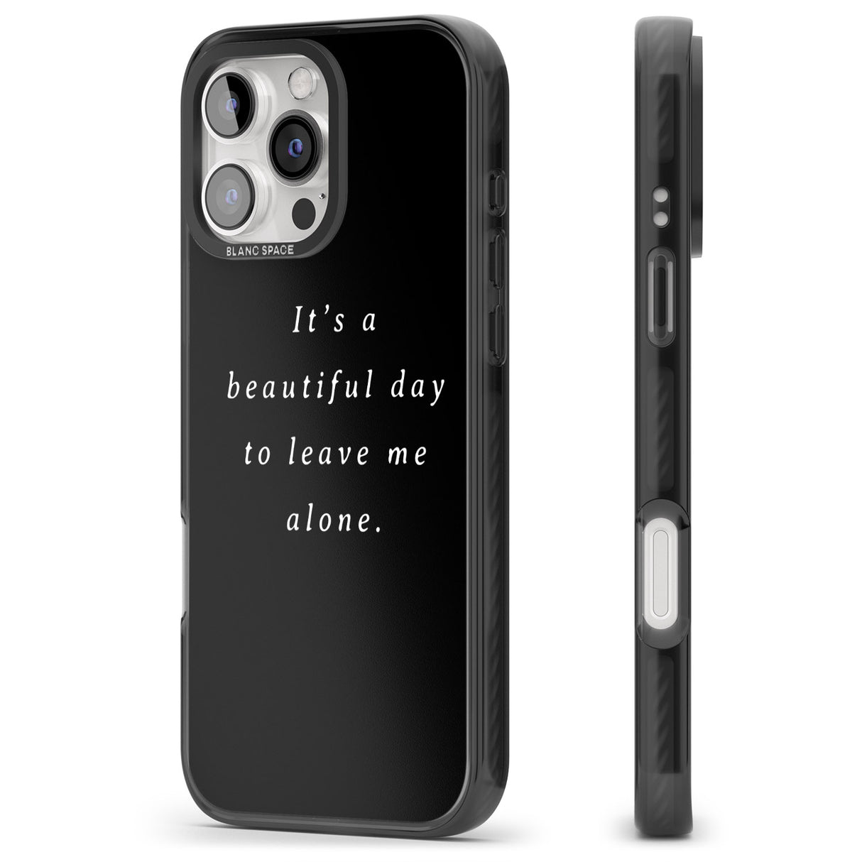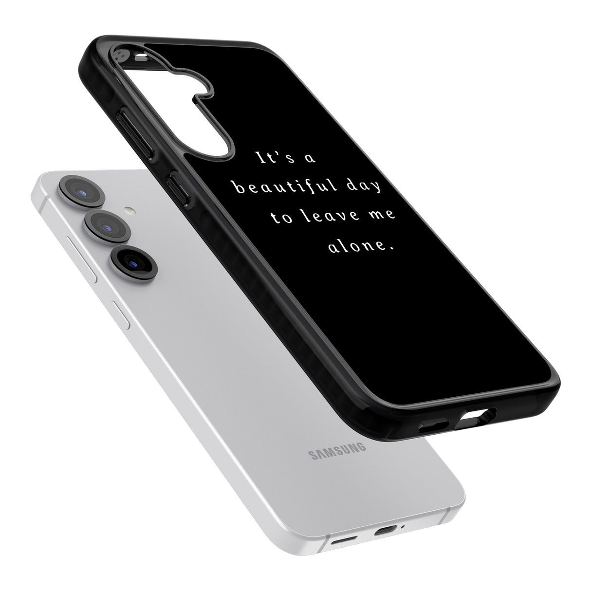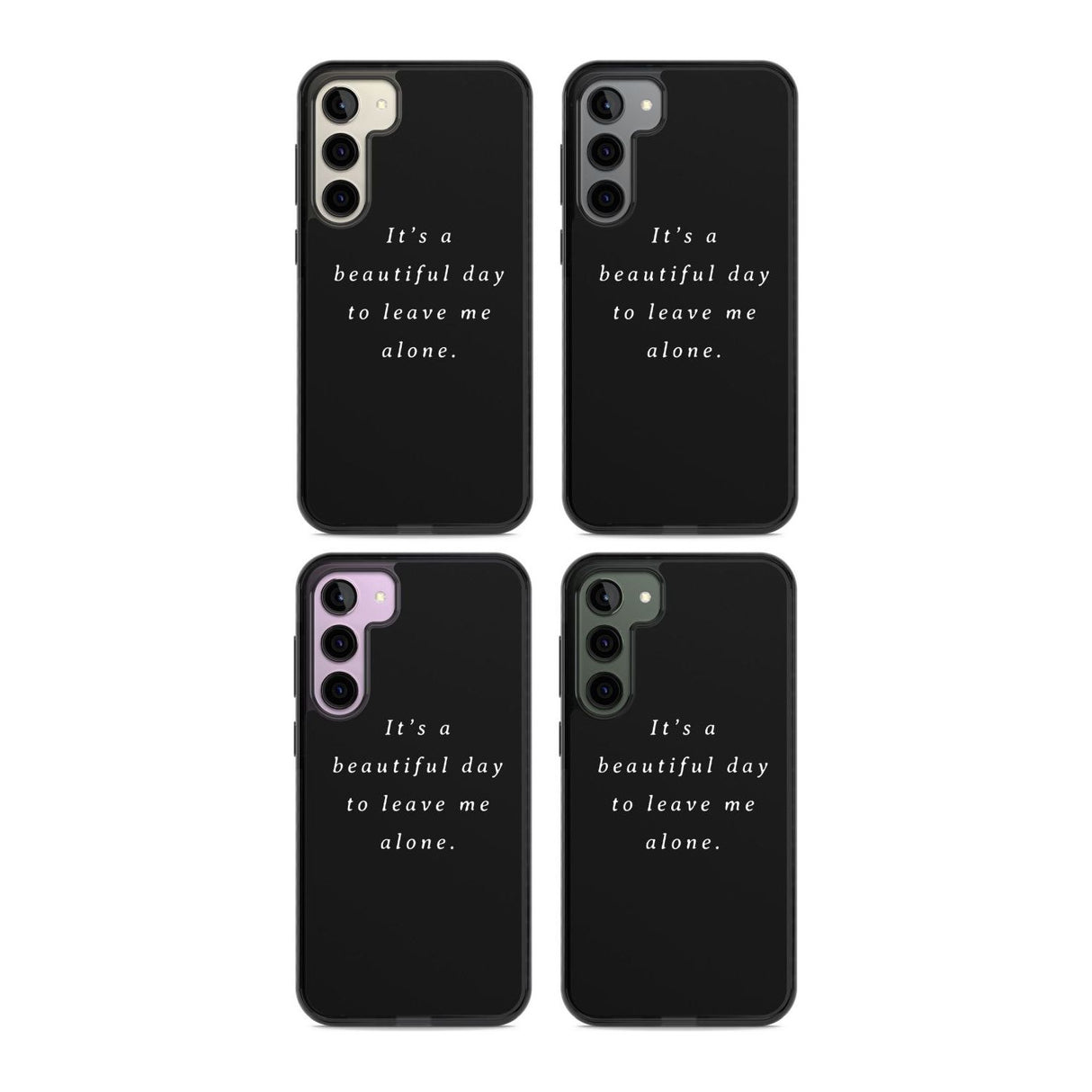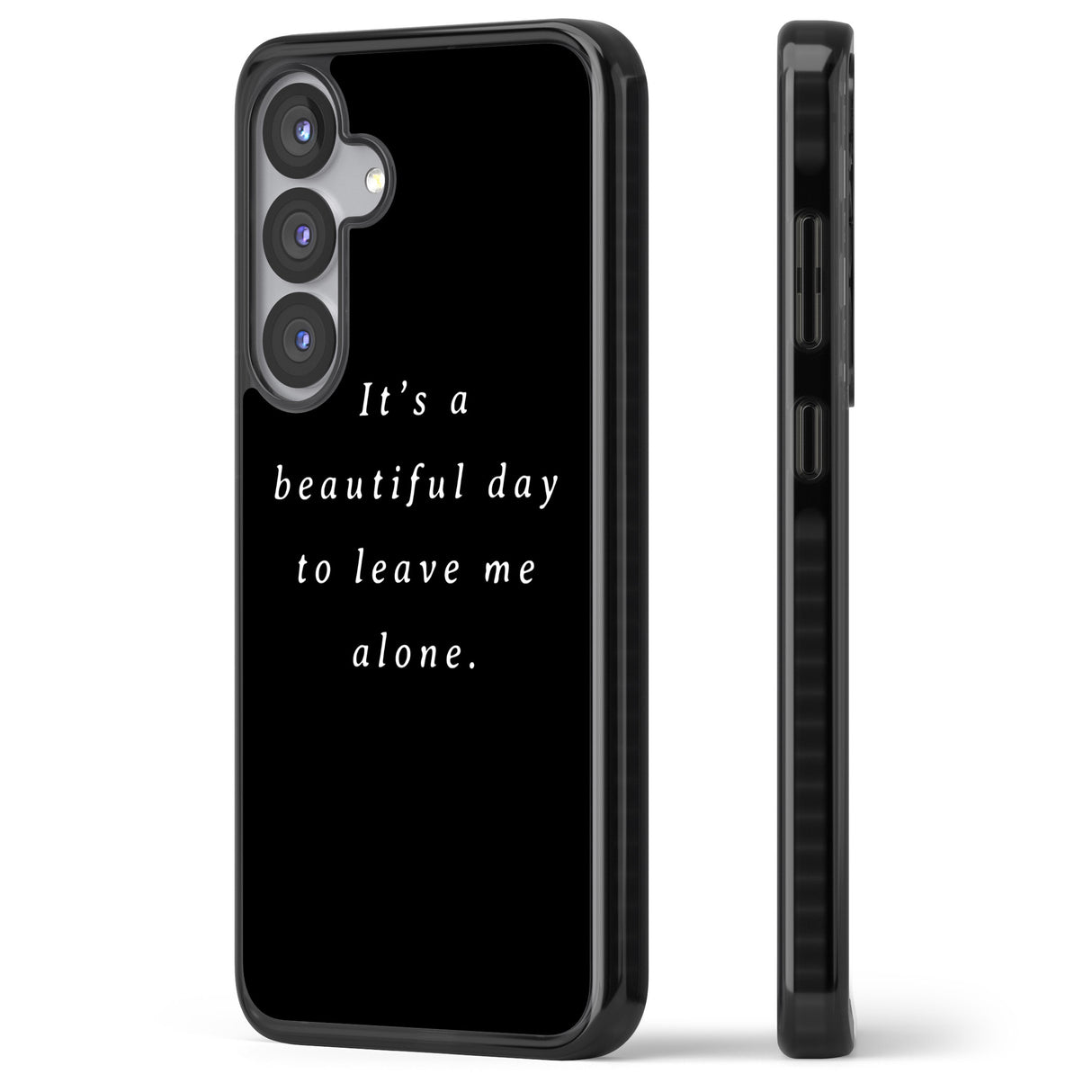 This phone case features a sleek black background with clean white serif text that reads “It’s a beautiful day to leave me alone.” The design is minimal and modern, embracing a quiet confidence that speaks volumes. Compatible with all iPhone and Samsung models, this case blends refined aesthetics with protective durability. Whether you’re setting a boundary or just embracing your introvert energy, it’s the perfect everyday accessory for those who love their space — and their style. The smooth matte finish adds a luxe touch, while the crisp typography keeps things elevated and editorial. Designed for self-expression and built to last, it’s your go-to for both fashion and function.