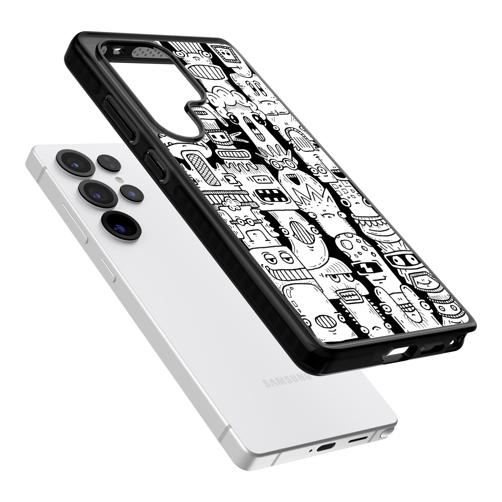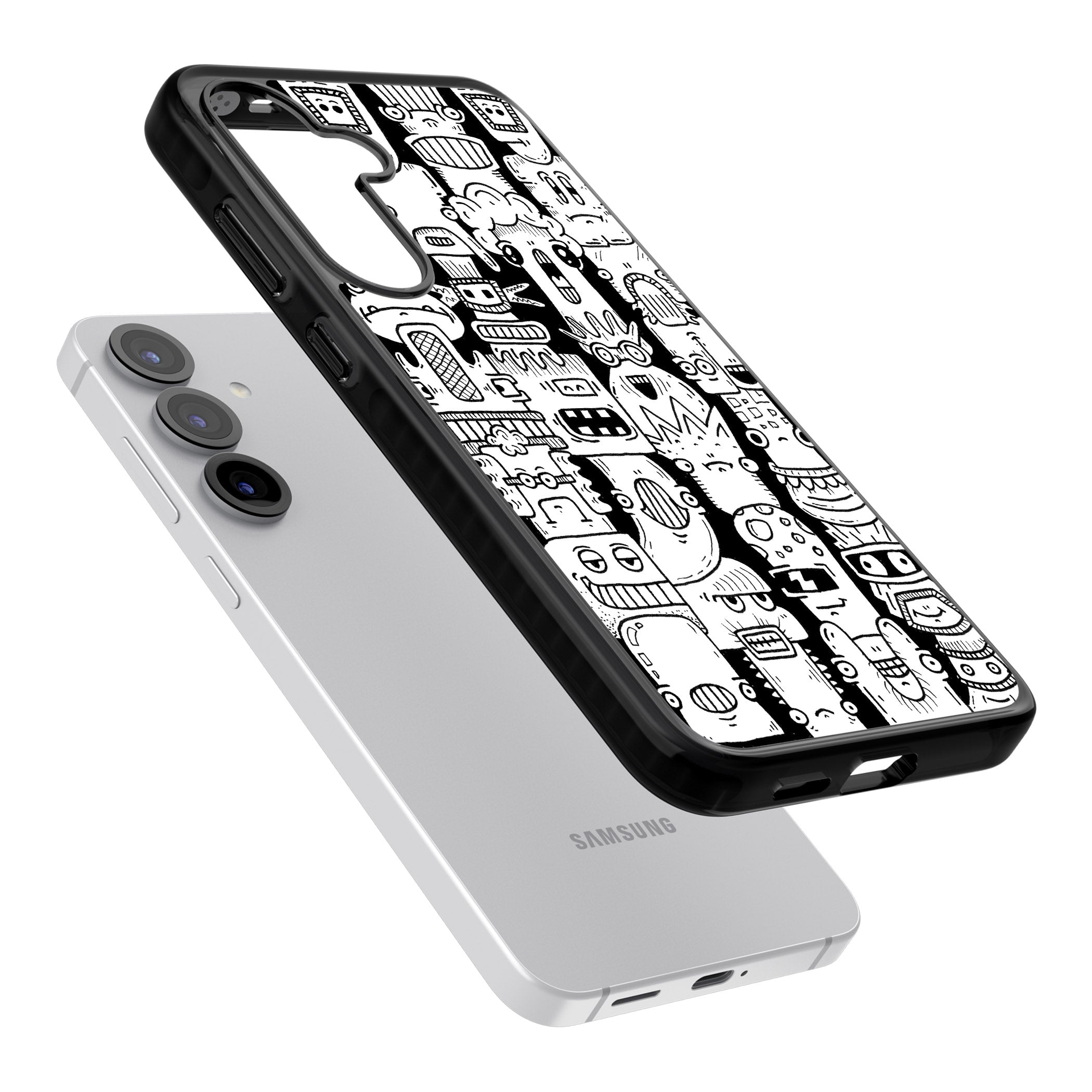 Unleash your fun side with this quirky doodle case! Full of bold, abstract characters, this design screams playful individuality. Express yourself while safeguarding your device.