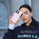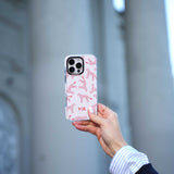 This phone case features a playful pattern of red and pink cheetahs, perfect for those wanting to express their bold side. Compatible with iPhone and Samsung models, it ensures your device is well-protected. This case is more than just protection; it's a statement piece reflecting your fierce personality and style. Let your phone be your canvas with this stylish case, merging art and functionality effortlessly.