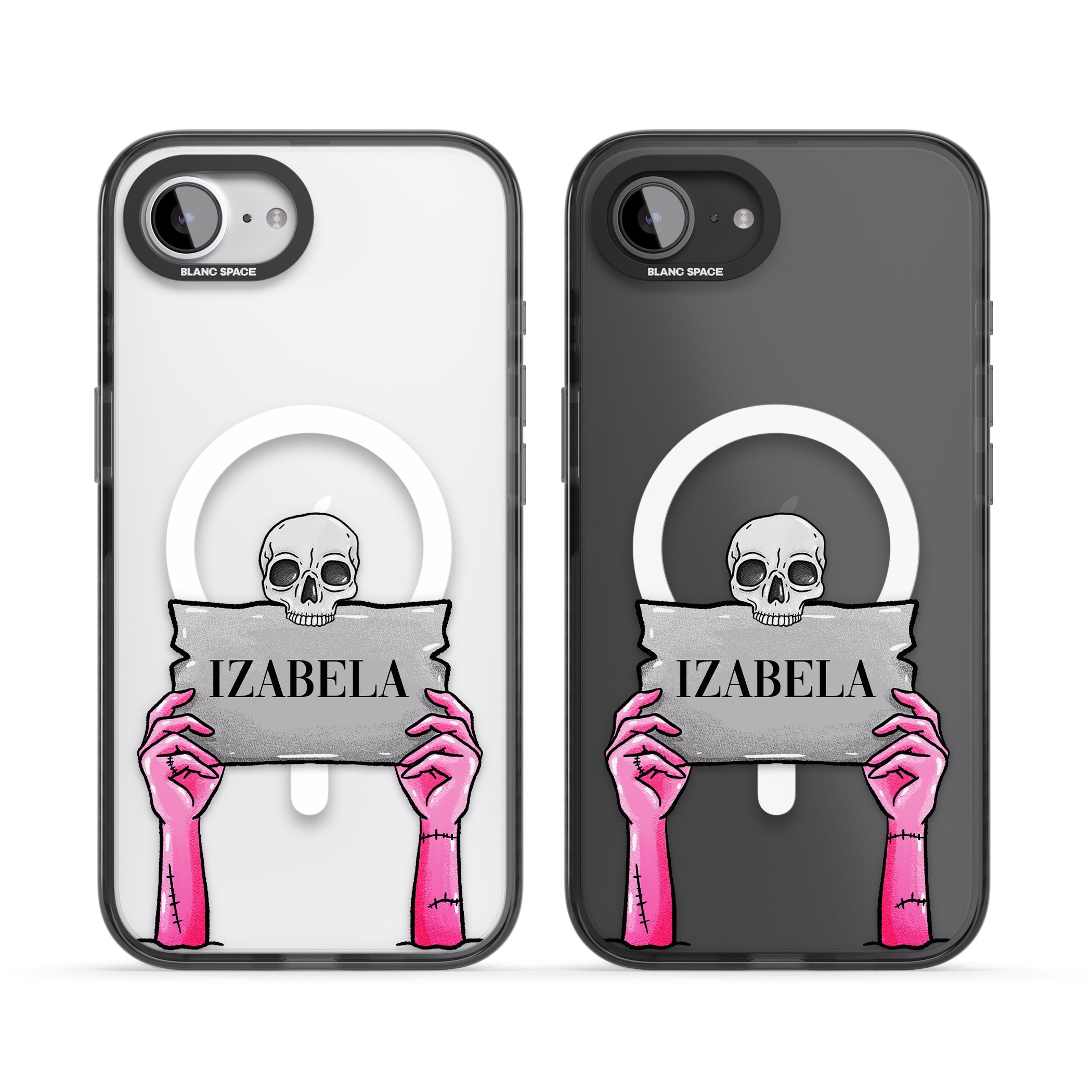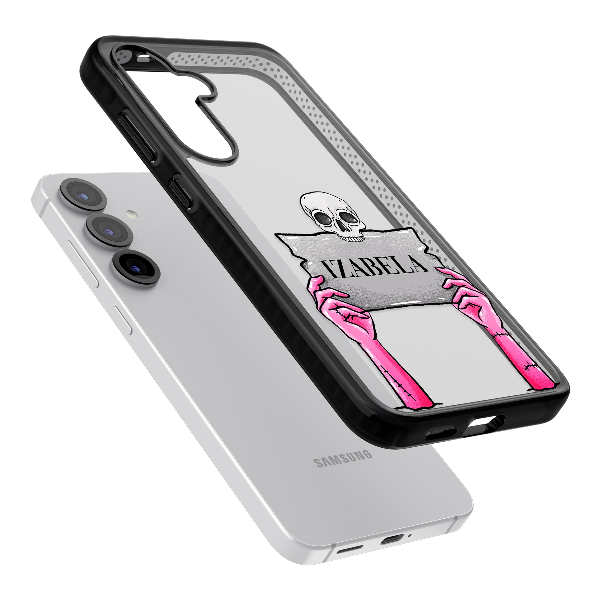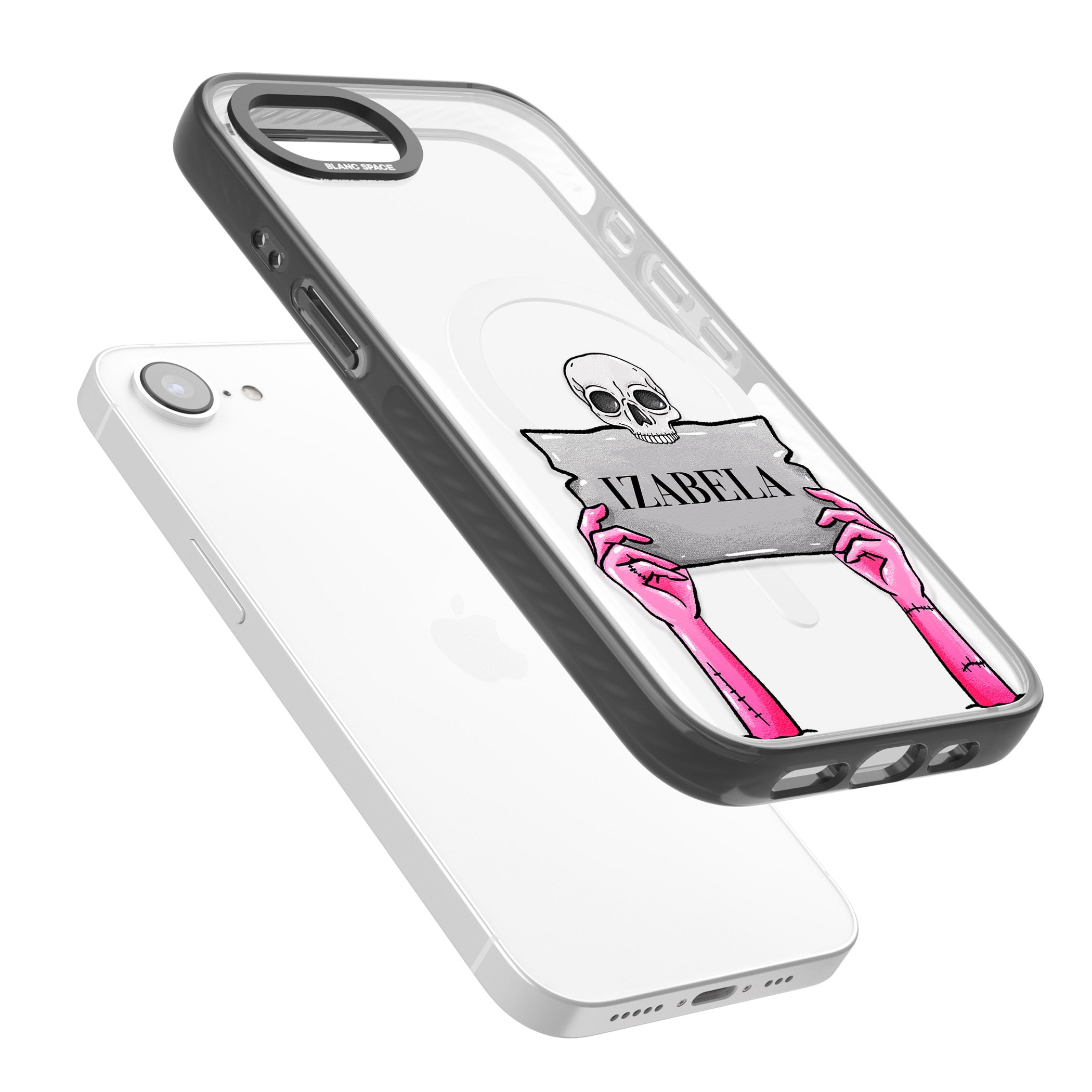 Make a bold statement with this edgy phone case, merging style with protection. Featuring a striking skull design held by vibrant pink hands, it's all about self-expression and unique flair.