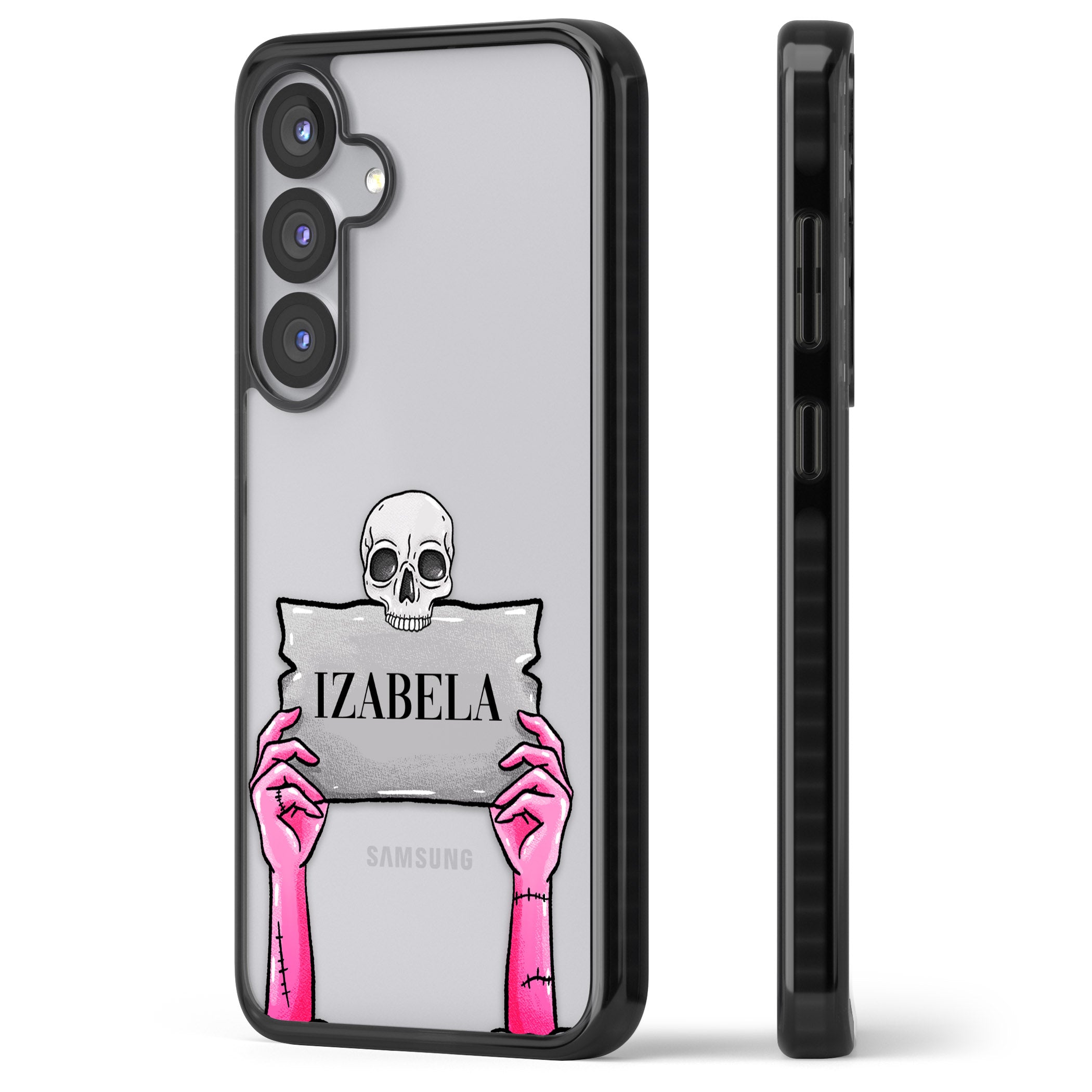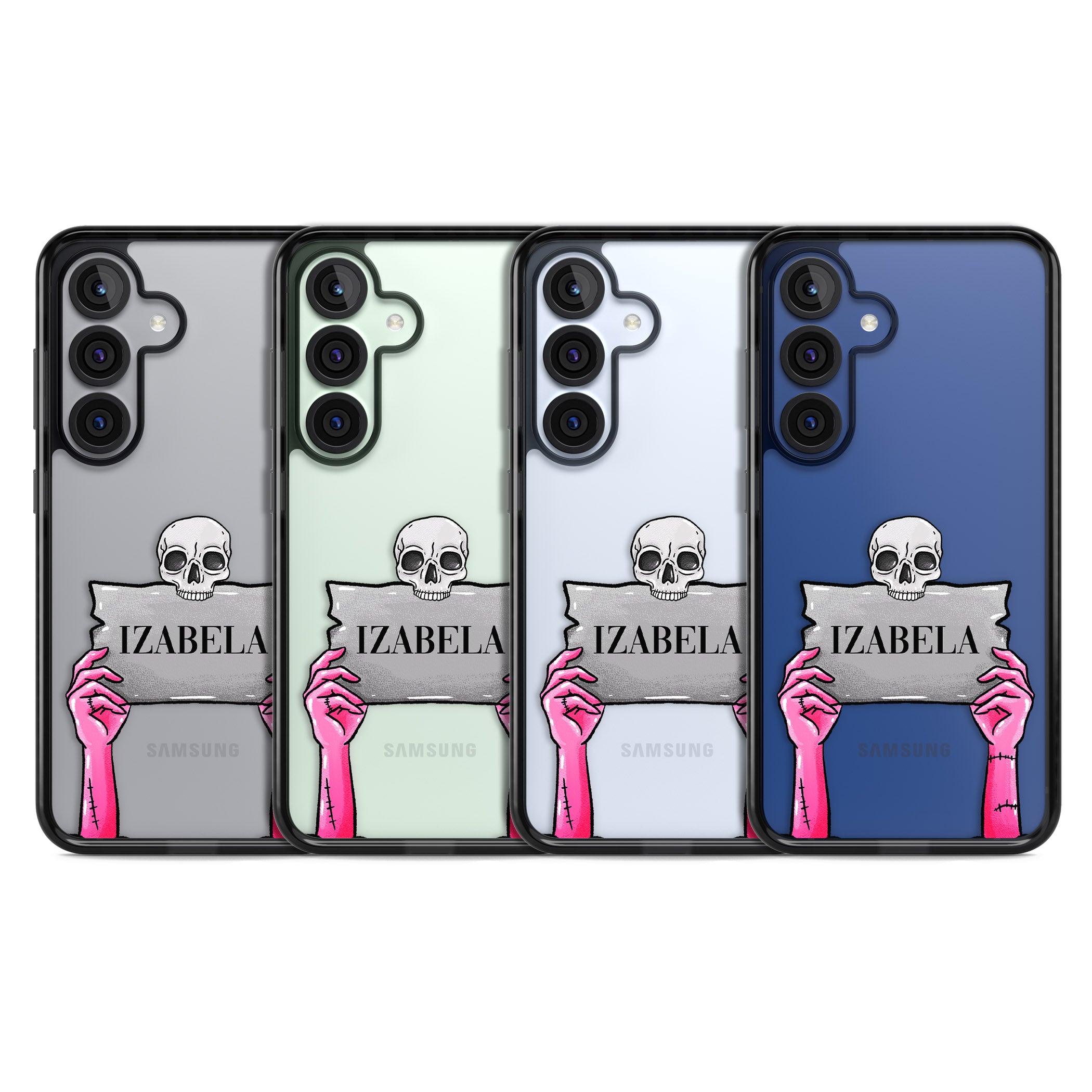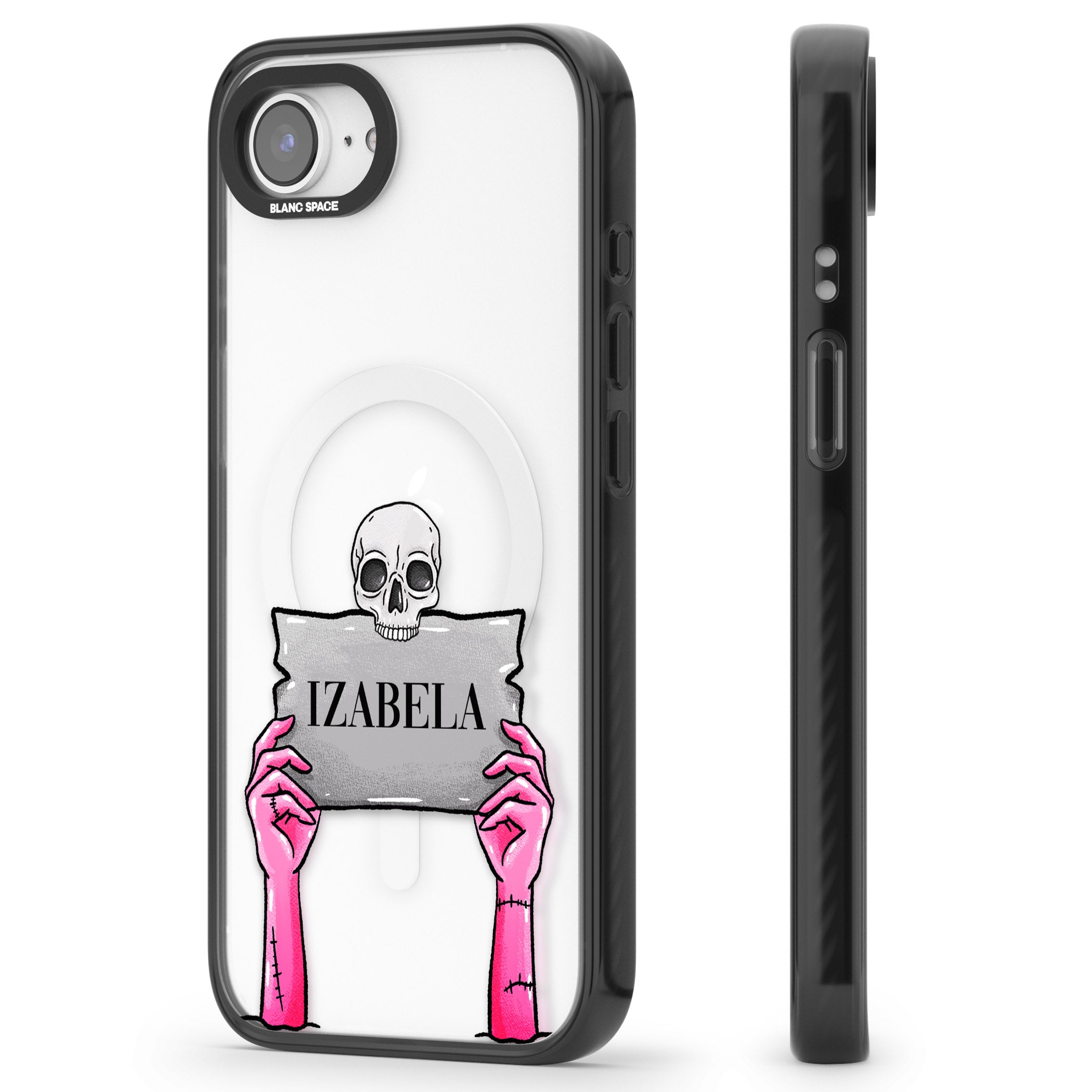 Make a bold statement with this edgy phone case, merging style with protection. Featuring a striking skull design held by vibrant pink hands, it's all about self-expression and unique flair.