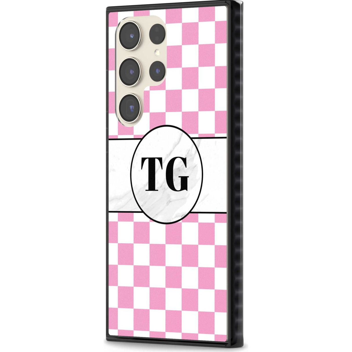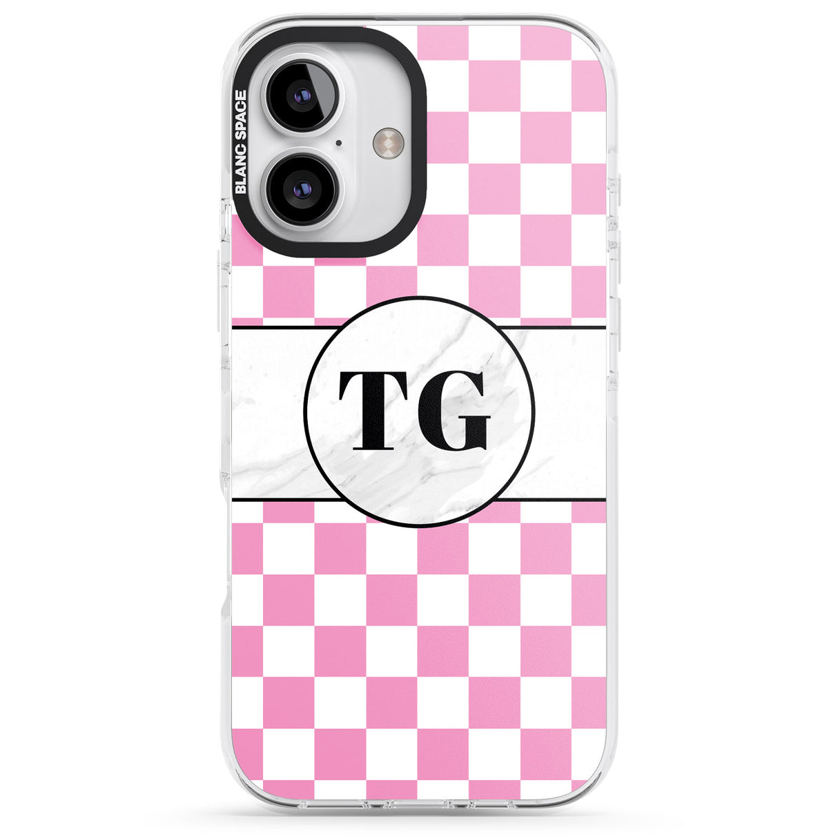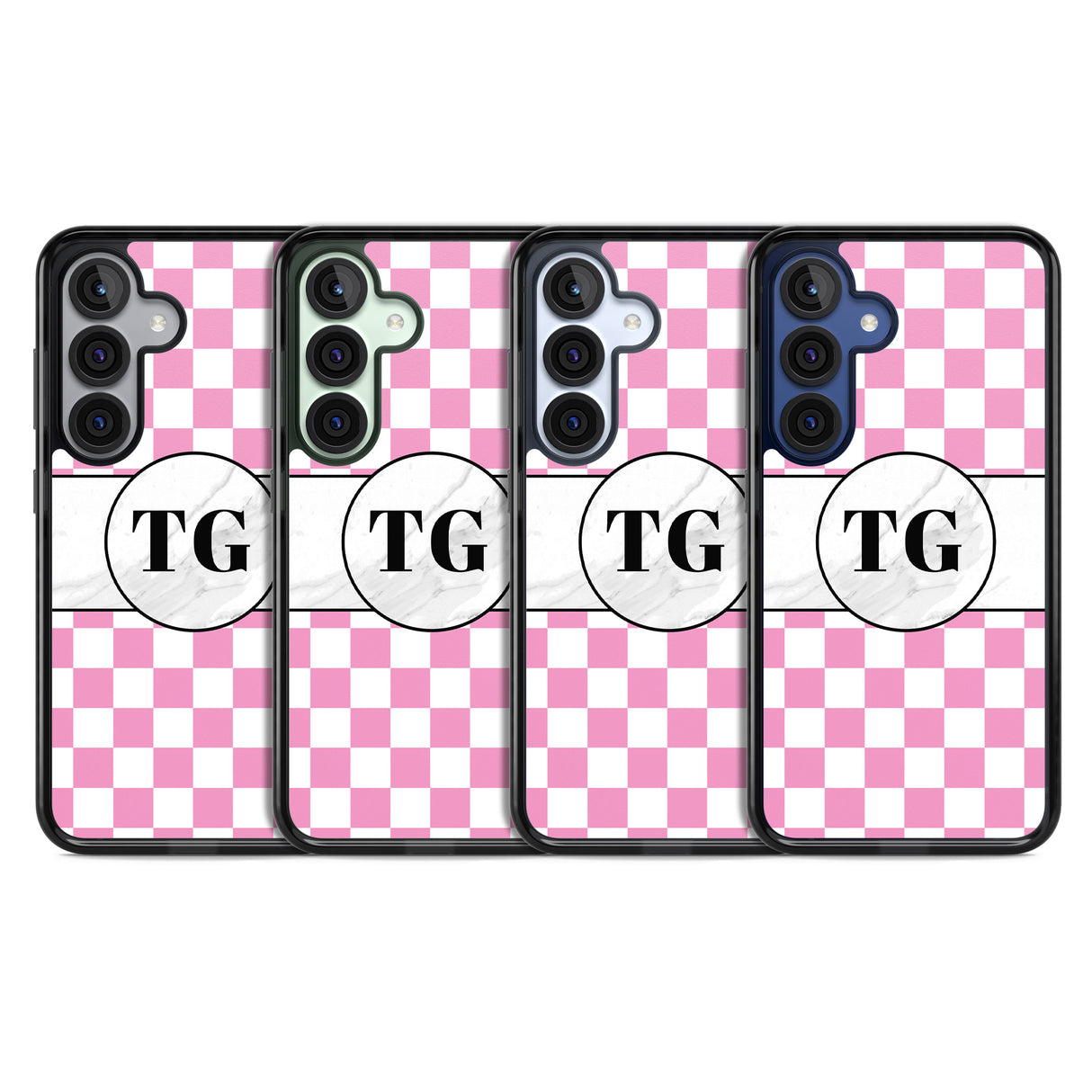 This pink checkered phone case features a monogrammed design, perfect for adding a personal touch to your iPhone or Samsung device. Enjoy the perfect blend of personal style and protection, ensuring your phone stands out. Inspired by bold patterns, this case speaks to those who love to express themselves with confidence and flair. From sleek designs to premium protection, your phone's makeover is just a step away. Compatible with both iPhone and Samsung models, it invites you to make your phone truly yours.