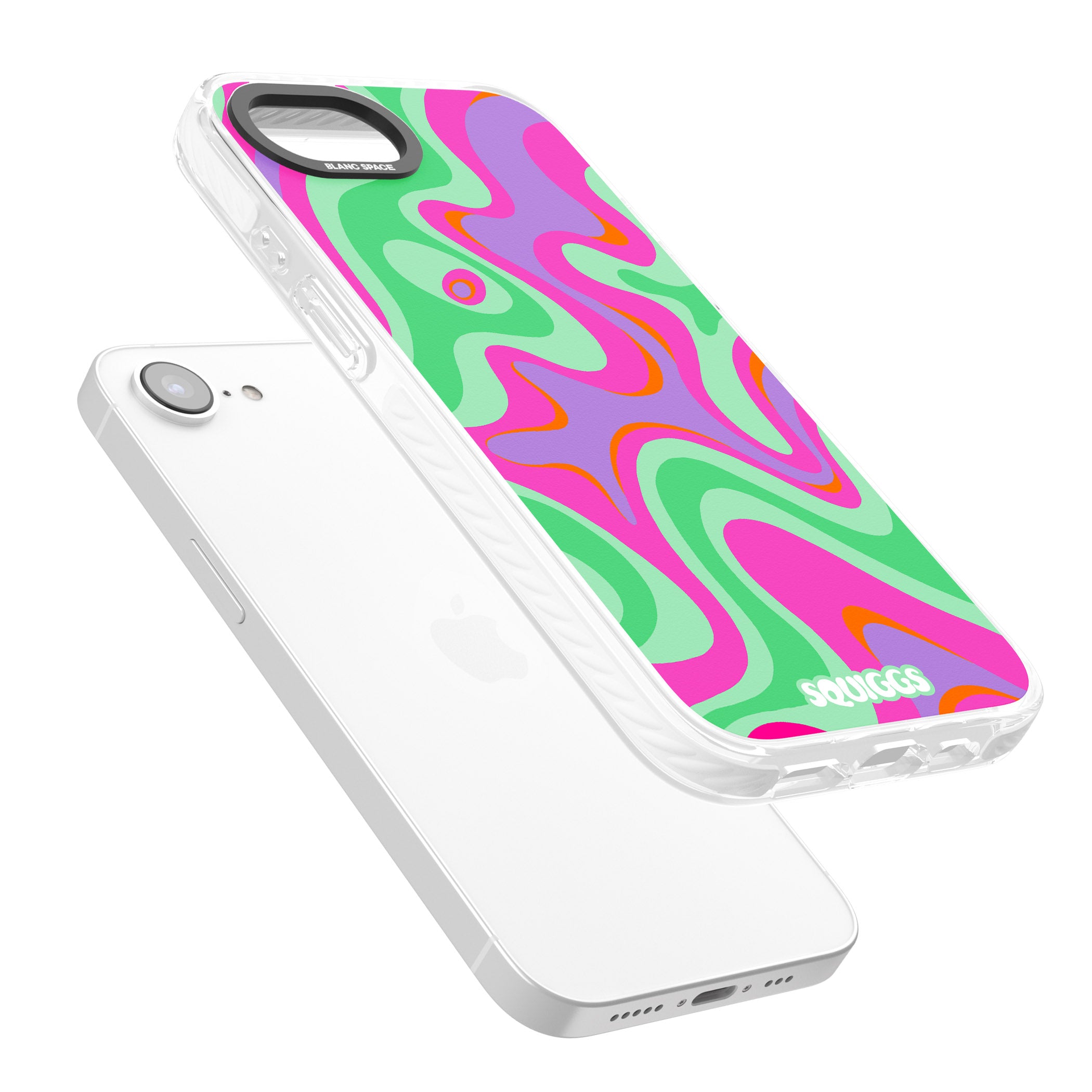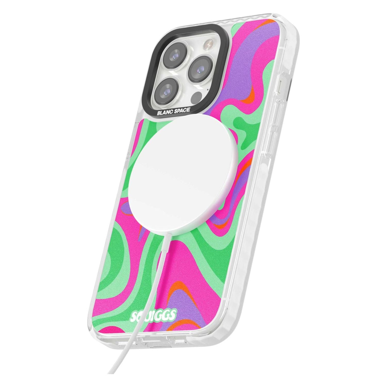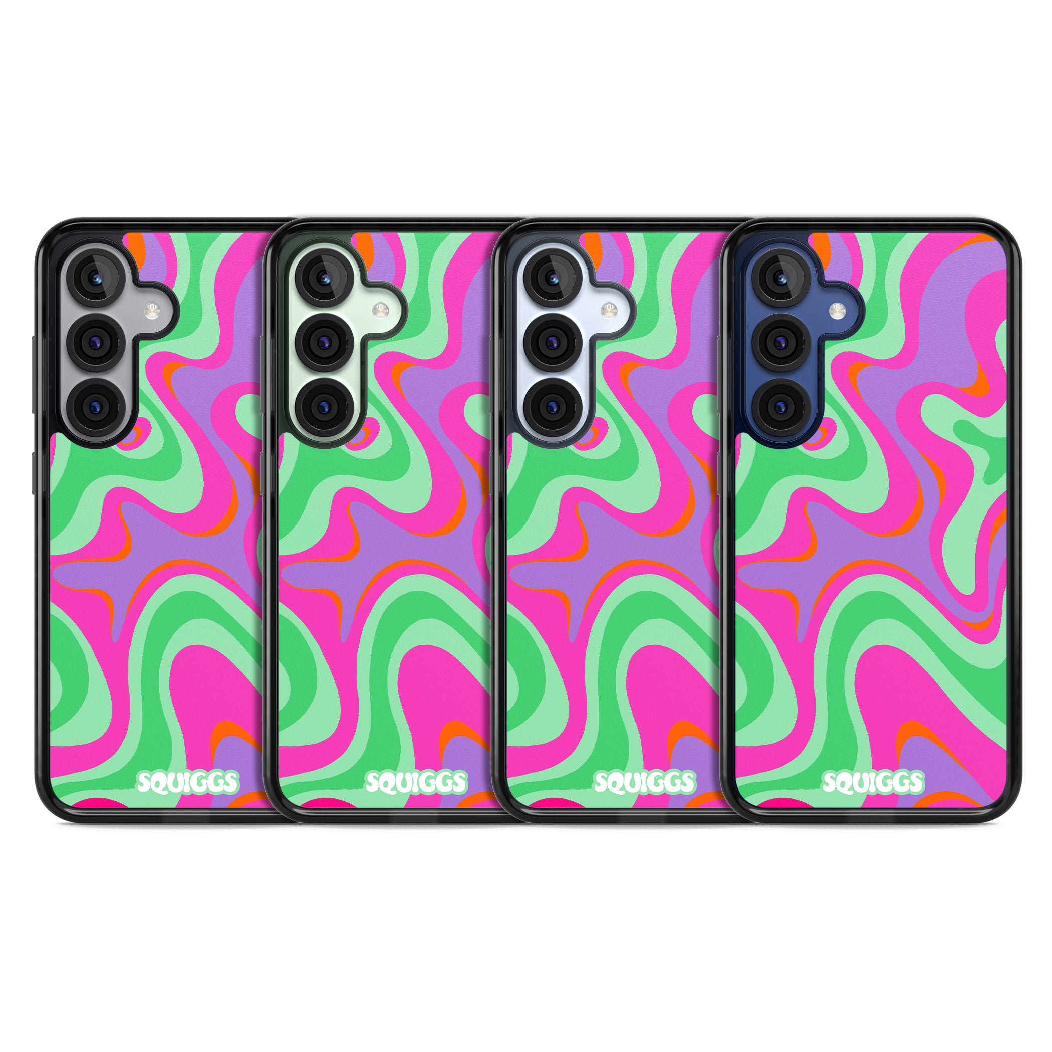 Dive into a world of swirling colors with the Psychedelic Wave Phone Case, featuring a vivid palette of pink, green, and purple hues in fluid, wavy patterns. This case isn't just about aesthetics; it's about making a statement with your daily essentials. Designed for both iPhone and Samsung models, this case marries bold visual appeal with robust protection. Let your phone be an extension of your personality, infused with a playful aesthetic and eye-catching design. Whether you're heading to a music festival or a casual hangout, your phone will turn heads with its vibrant look. Embrace the energetic flair and cultural references of 70s-inspired psychedelic art.