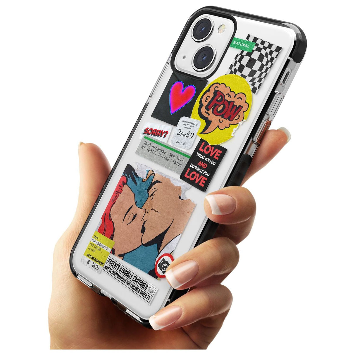 This phone case features a collage of retro-inspired stickers, blending pop art aesthetics with vibrant colors and playful text. Designed for both iPhone and Samsung, it serves as a canvas for self-expression while ensuring top-tier protection. Let your phone speak volumes about your style — whether it's the iconic comic-style kiss or adventurous 'POW' bubbles reflecting a fun, rebellious spirit. With its durable construction, your phone is safeguarded against everyday mishaps, allowing you to express yourself without limits. Perfect for those who love to stand out with a touch of nostalgia and creativity, this case is a statement piece, capturing the whimsical essence of modern art. Make a bold impression and protect your device in style.