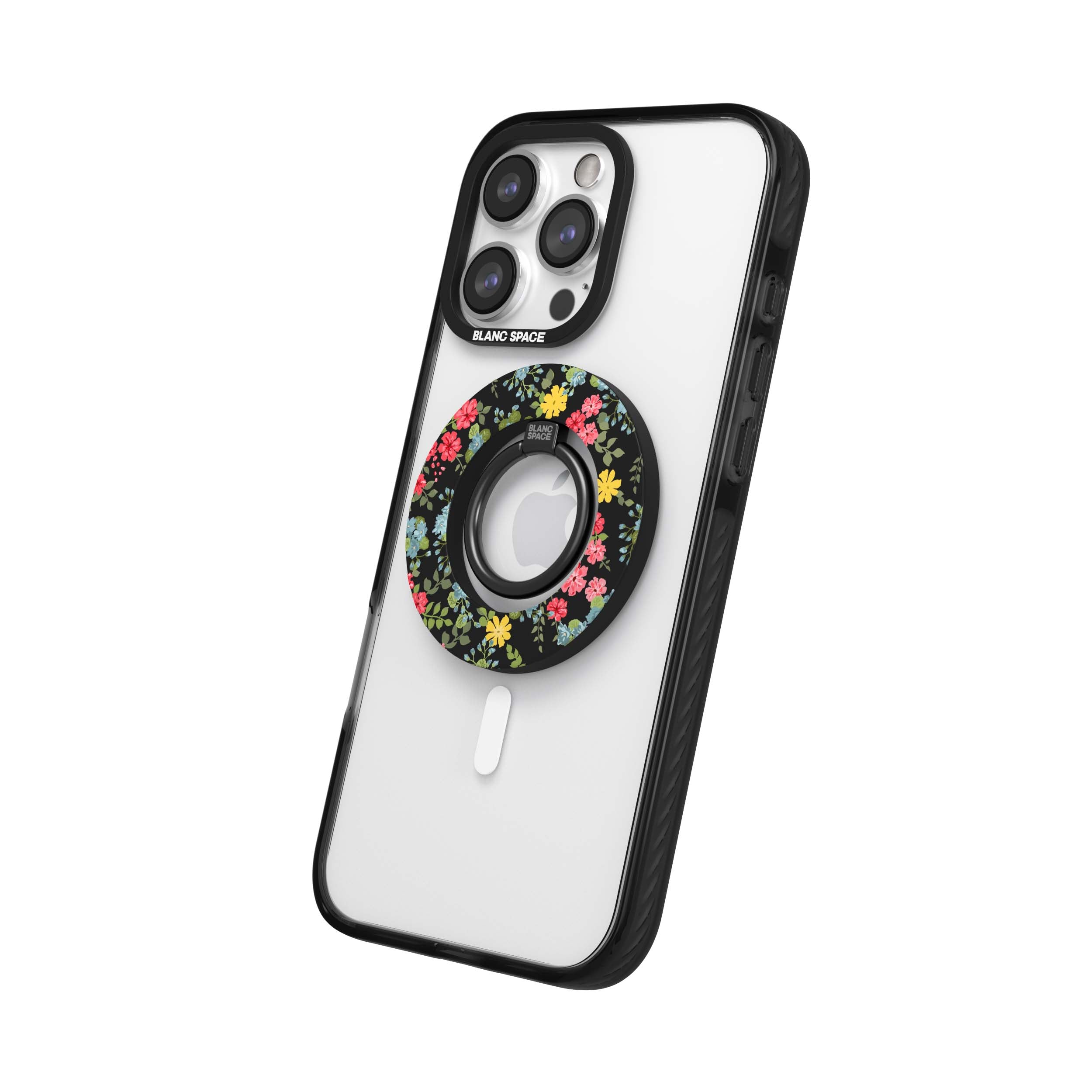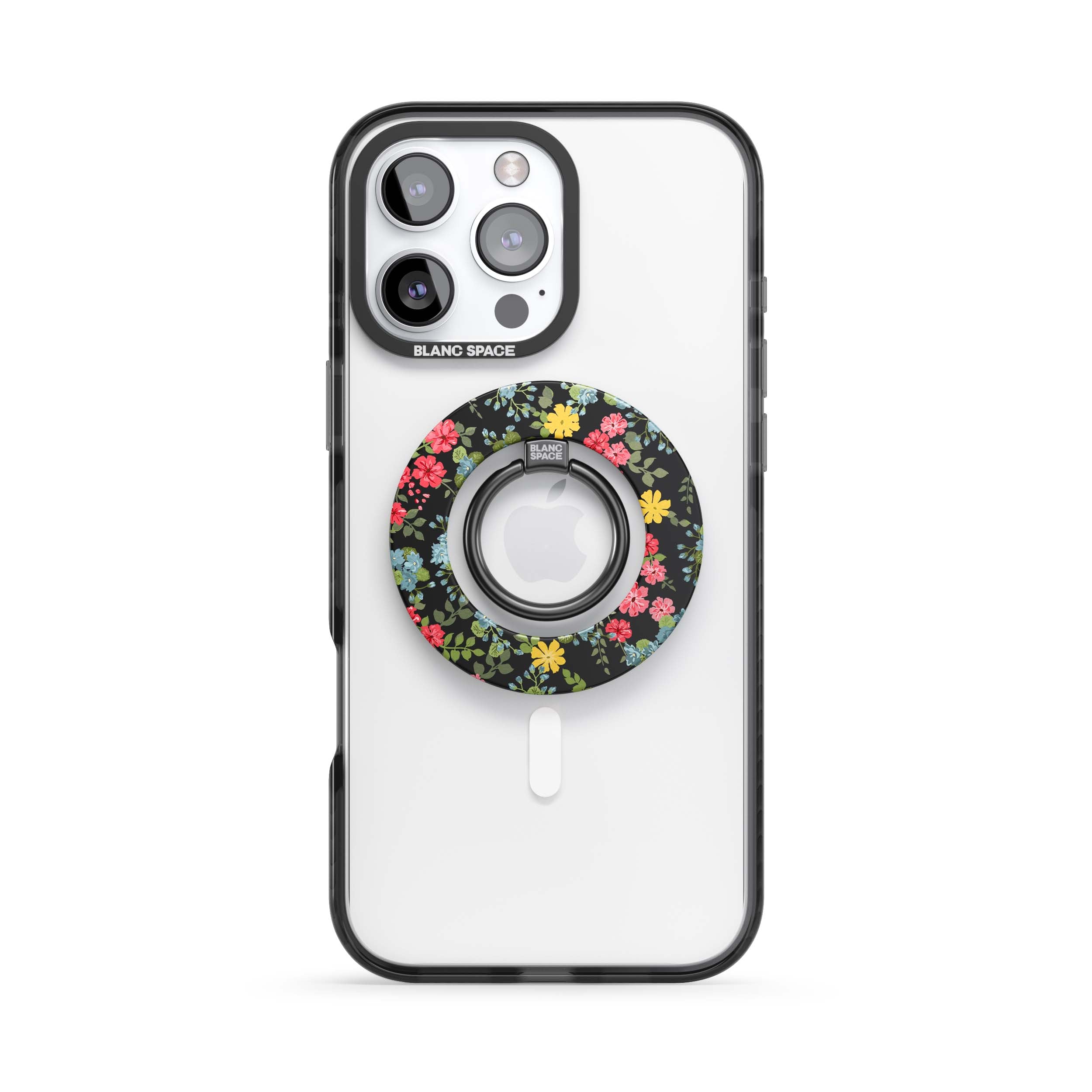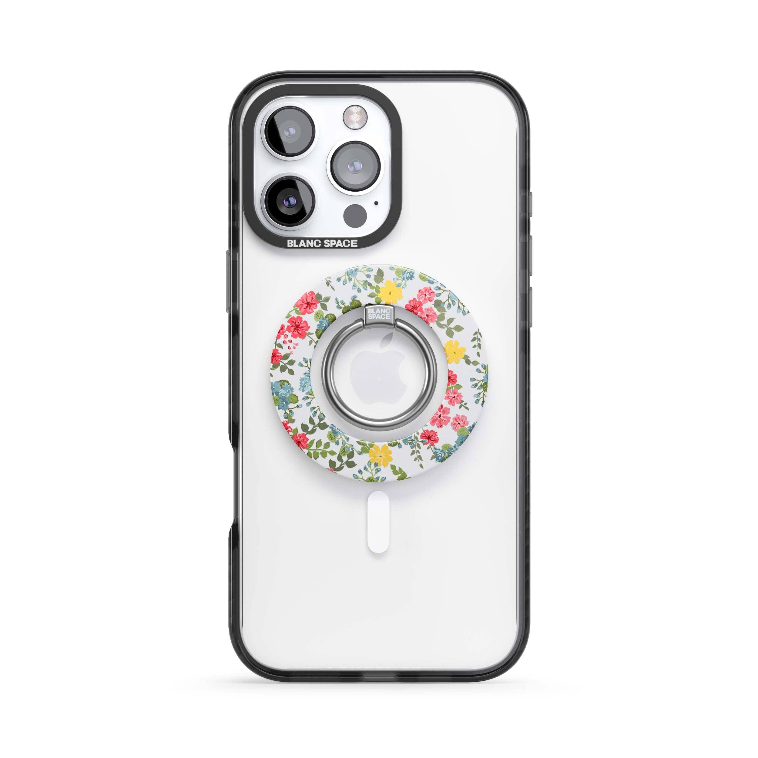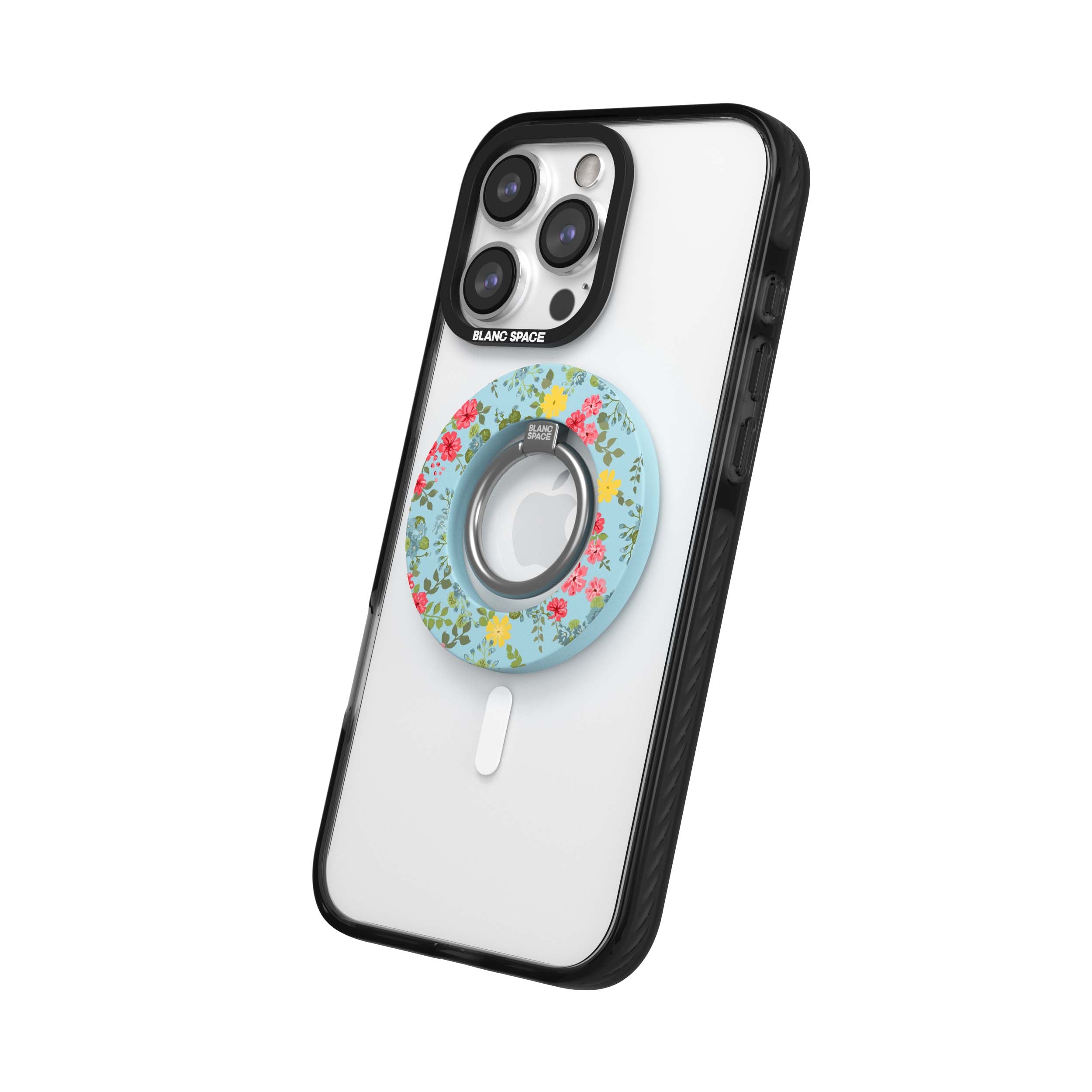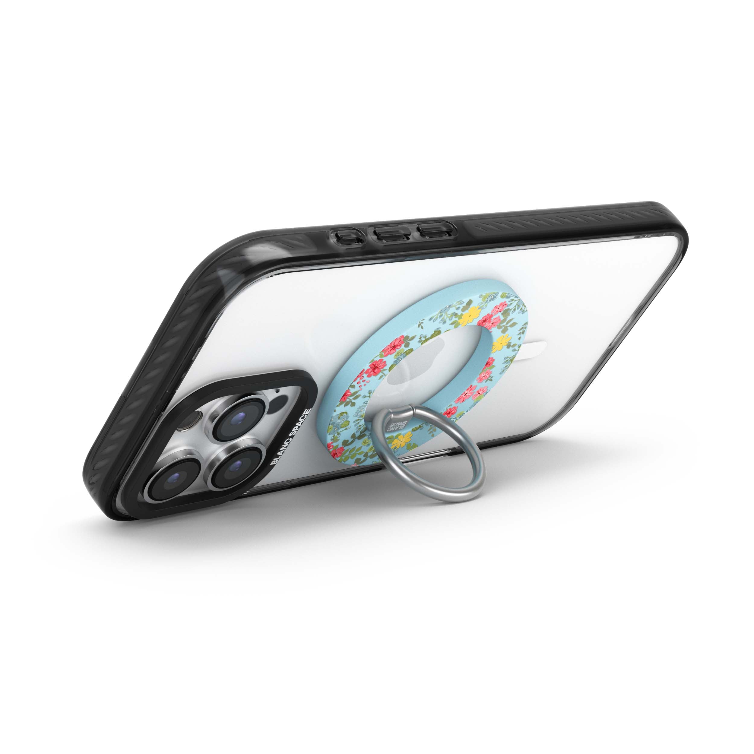 The Trail Bloom Magsafe Grip Trails Soft Vines And Bright Blossoms Across A Sleek Black Base In A Full-Print Finish That Feels Both Earthy And Elevated. With Coral Reds, Sky Blues, And Sunny Yellows Scattered Throughout, It Adds A Fresh, Floral Moment To Any Phone. Snap It On Magnetically To Any Magsafe-Compatible Iphone Or Case For Instant Grip And Stand Support. Available In Black, White, Pink, And Light Blue Base Ring Colours.