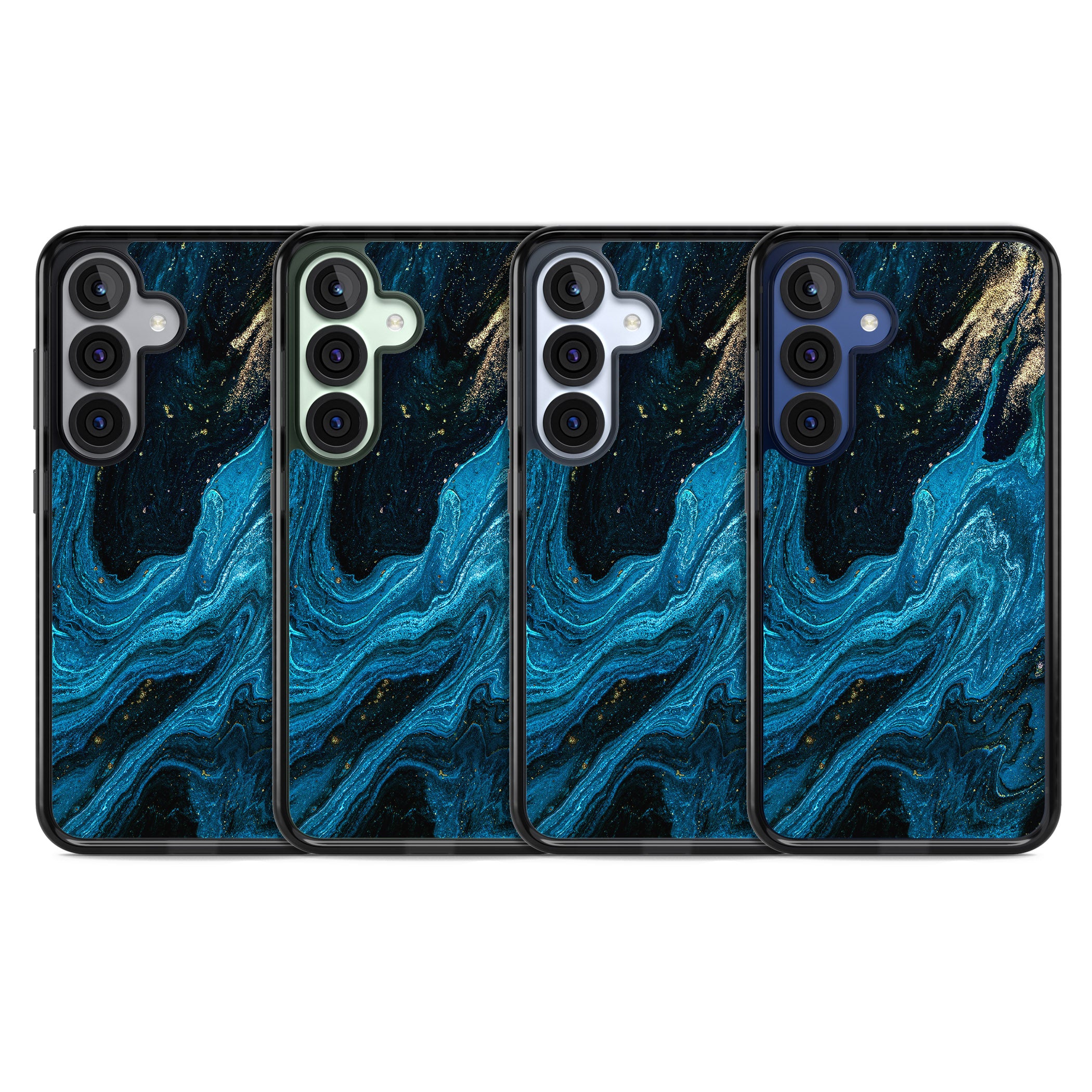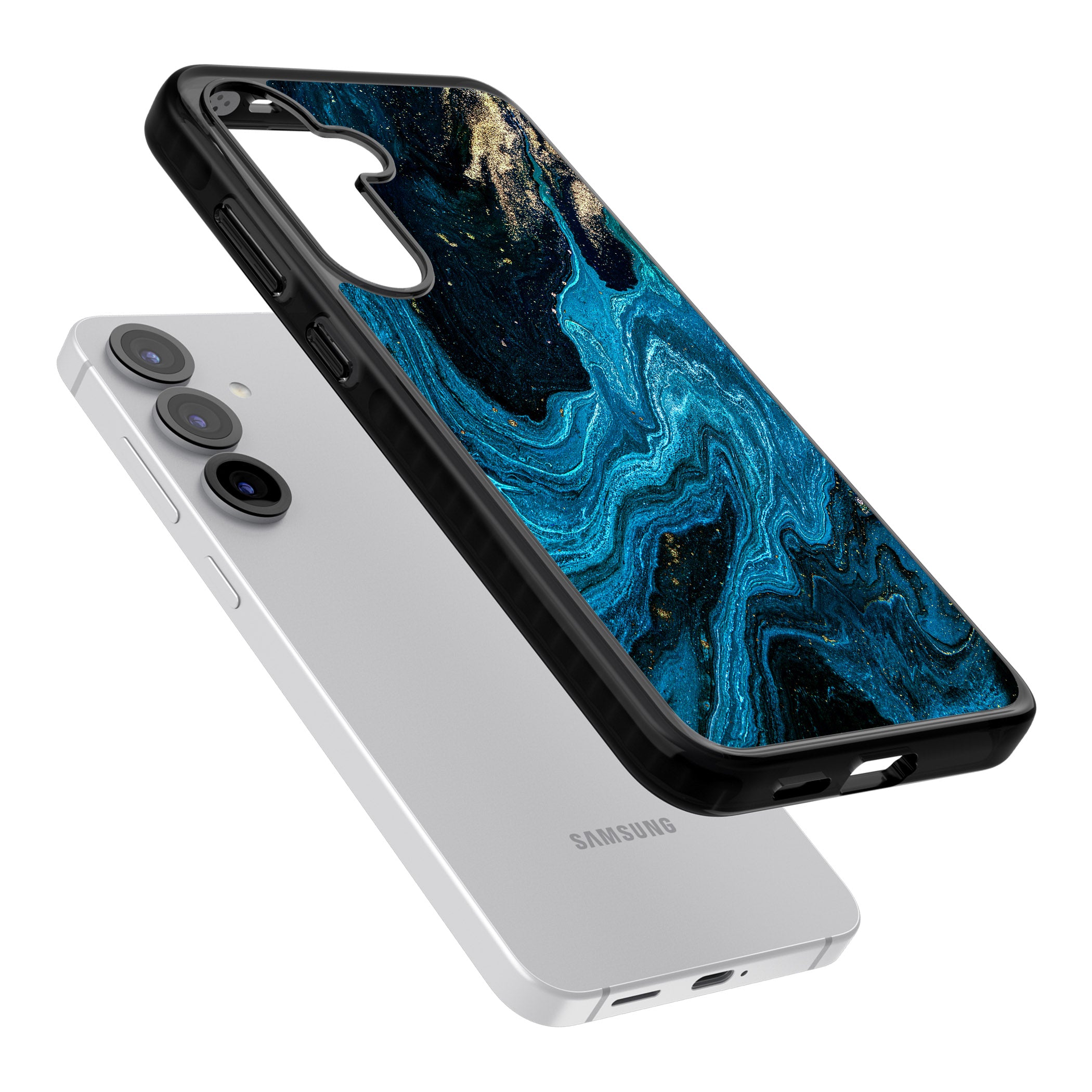 Dive into the swirl of sapphire blues and shimmering gold – your phone deserves this ethereal touch of elegance. Experience both style and protection with this captivating design.
