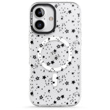 The Midnight Stars Phone Case features a sleek white base scattered with delicate black stars and dotted patterns, creating a celestial-inspired vibe that’s both stylish and protective. Designed for iPhone and Samsung users who want their tech to match their aesthetic, this case fuses function and fashion with a lightweight yet durable build. Whether you're stargazing or just scrolling, this case adds a layer of personality to your phone without compromising on protection. Its simple yet striking monochrome palette fits seamlessly into any look — from soft streetwear to everyday minimalism. It’s more than a case; it’s your moodboard in motion. Express yourself with a phone case that’s as confident and cool as you are.