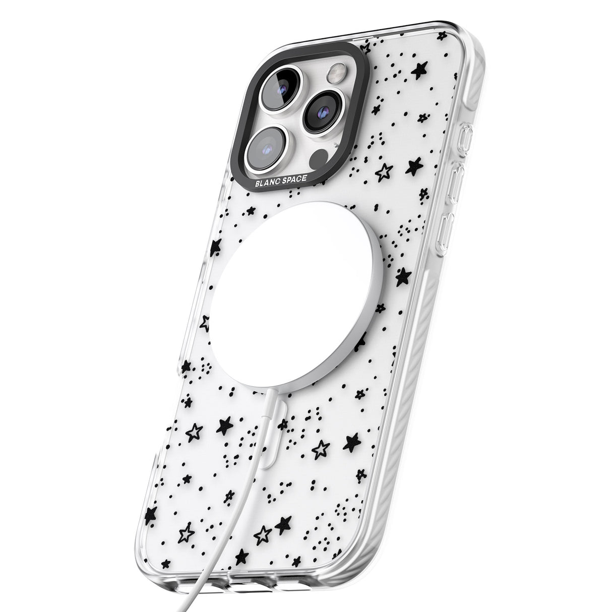 Bring a galaxy of charm to your everyday with the Midnight Stars Phone Case. A dreamy constellation of black stars dances across a frosted base — minimal, magical, and made to turn heads.