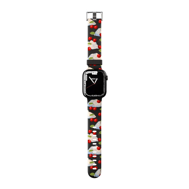 A unique cherry pattern in a vintage painted style with painted clouds bloating behind. Perfect for anyone who loves a cherry or a vintage aesthetic.