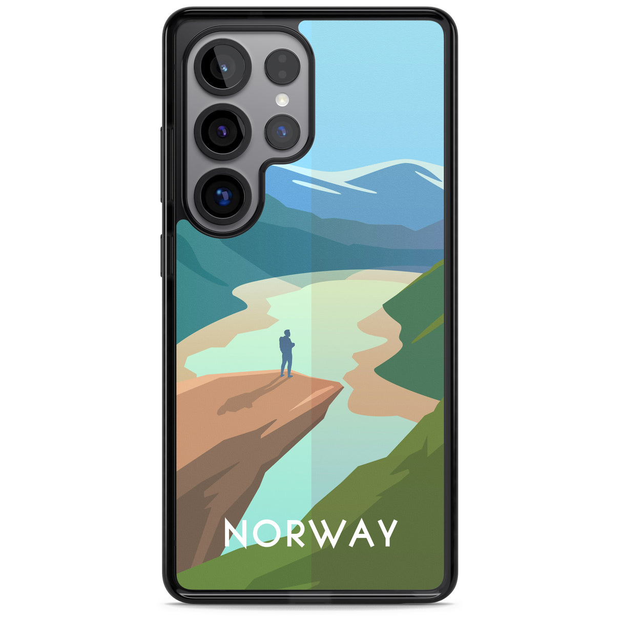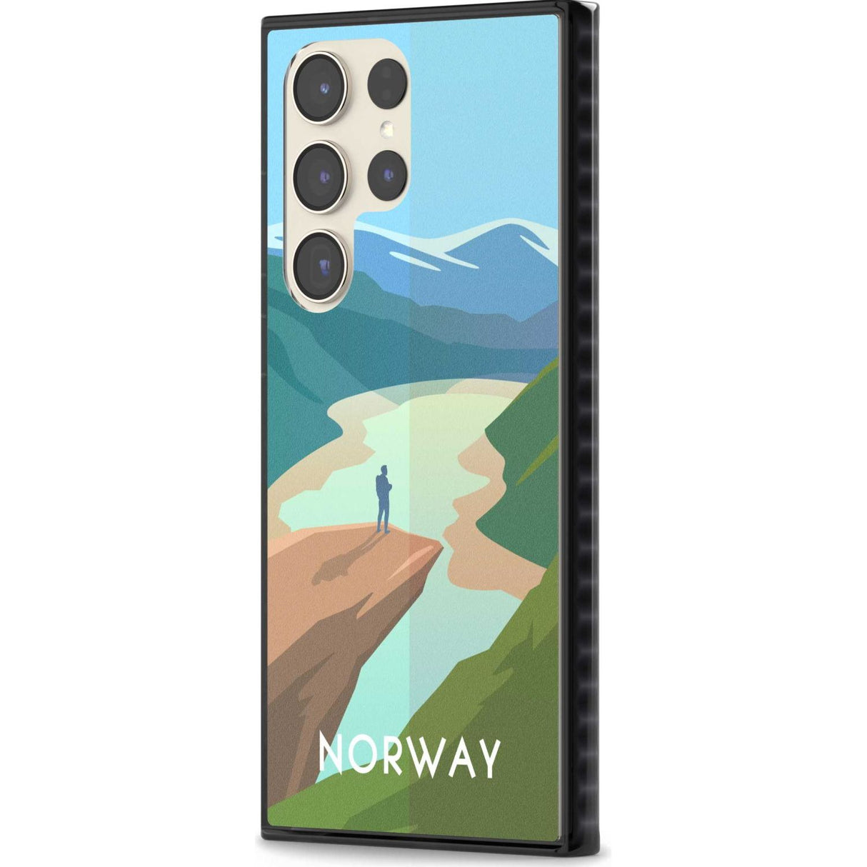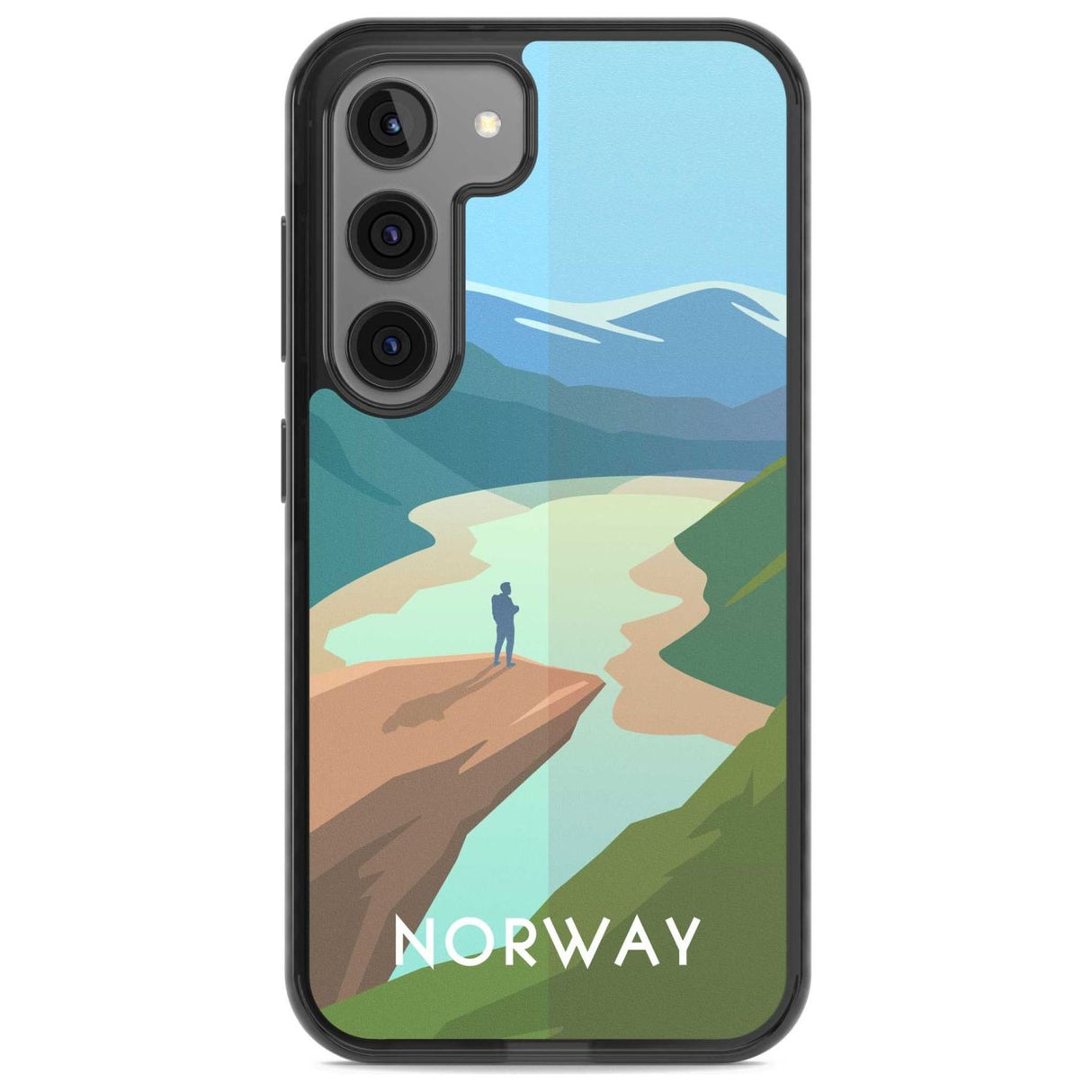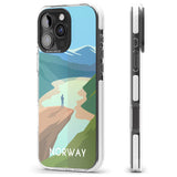 Explore the serene beauty of Norway with this travel poster-inspired phone case. Showcasing majestic landscapes and vivid hues, it's designed to transport you to tranquil vistas while safeguarding your phone.