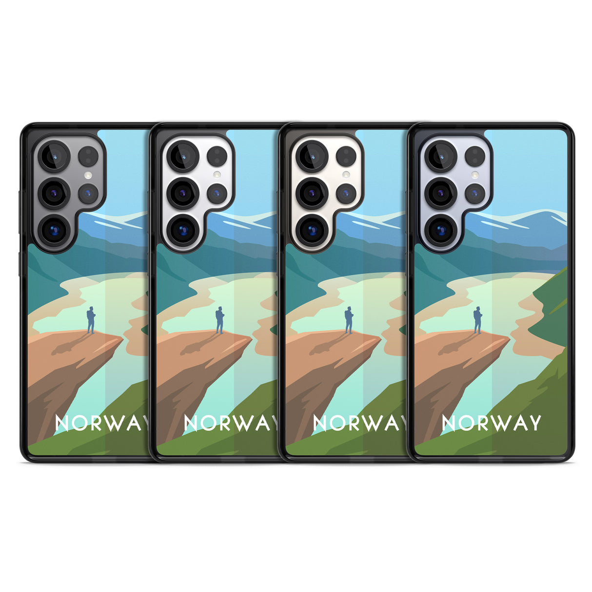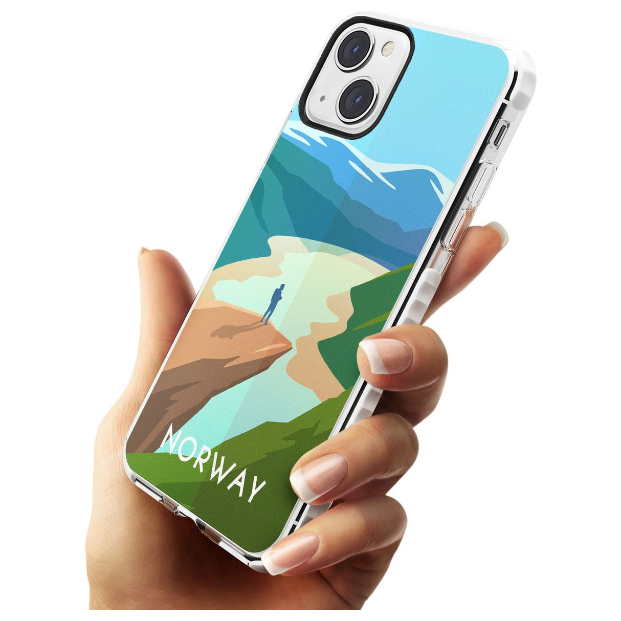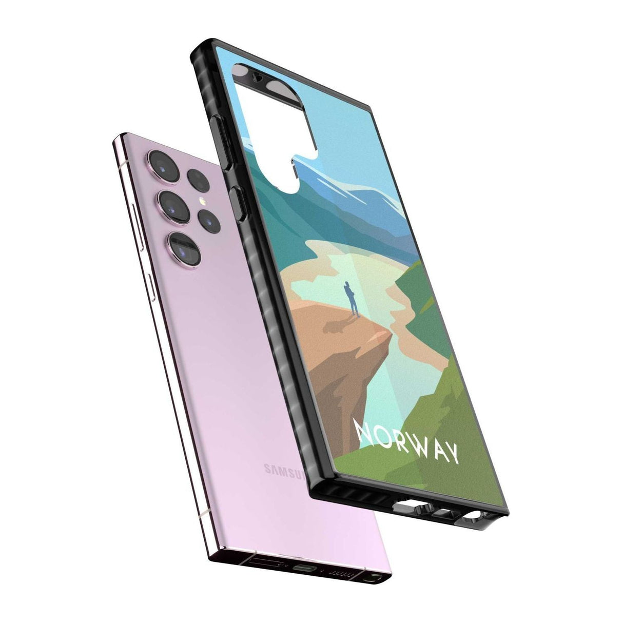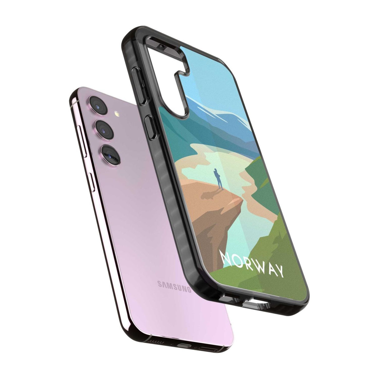 Explore the serene beauty of Norway with this travel poster-inspired phone case. Showcasing majestic landscapes and vivid hues, it's designed to transport you to tranquil vistas while safeguarding your phone.