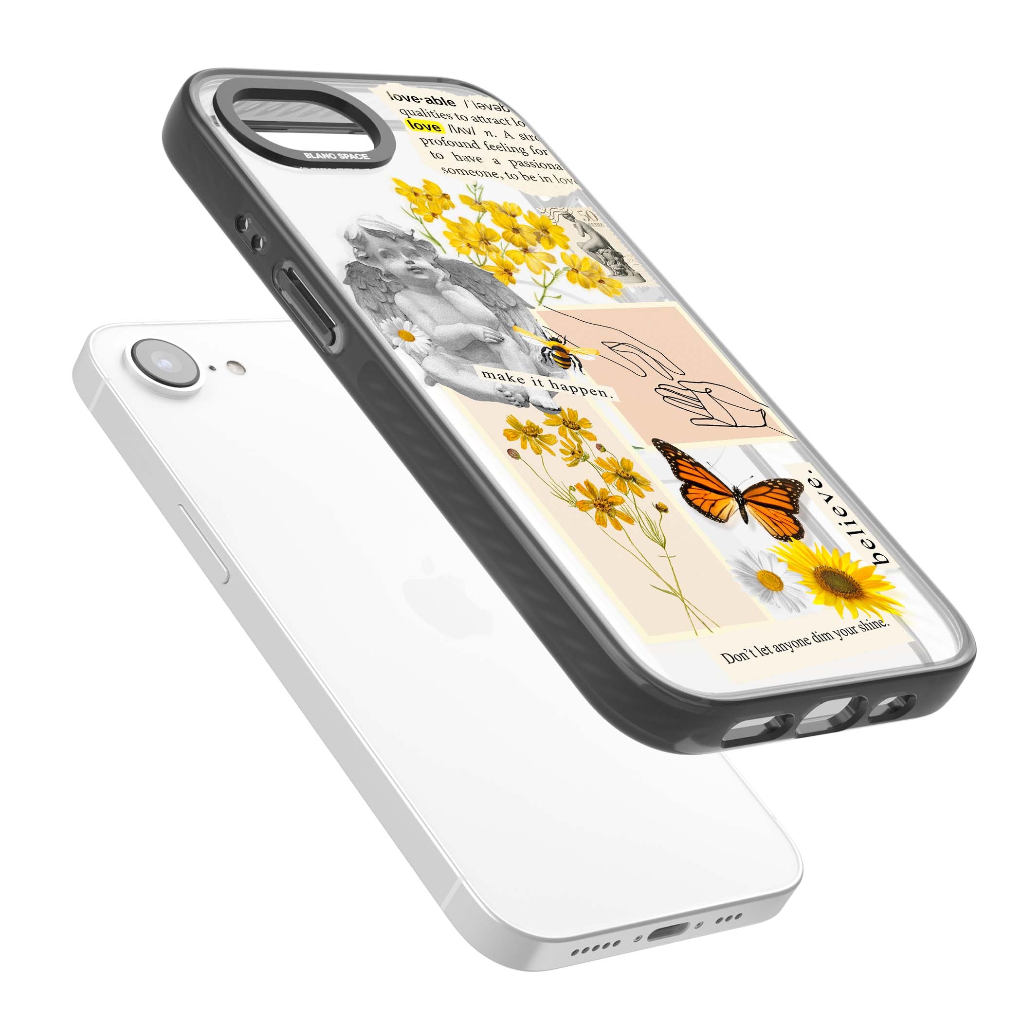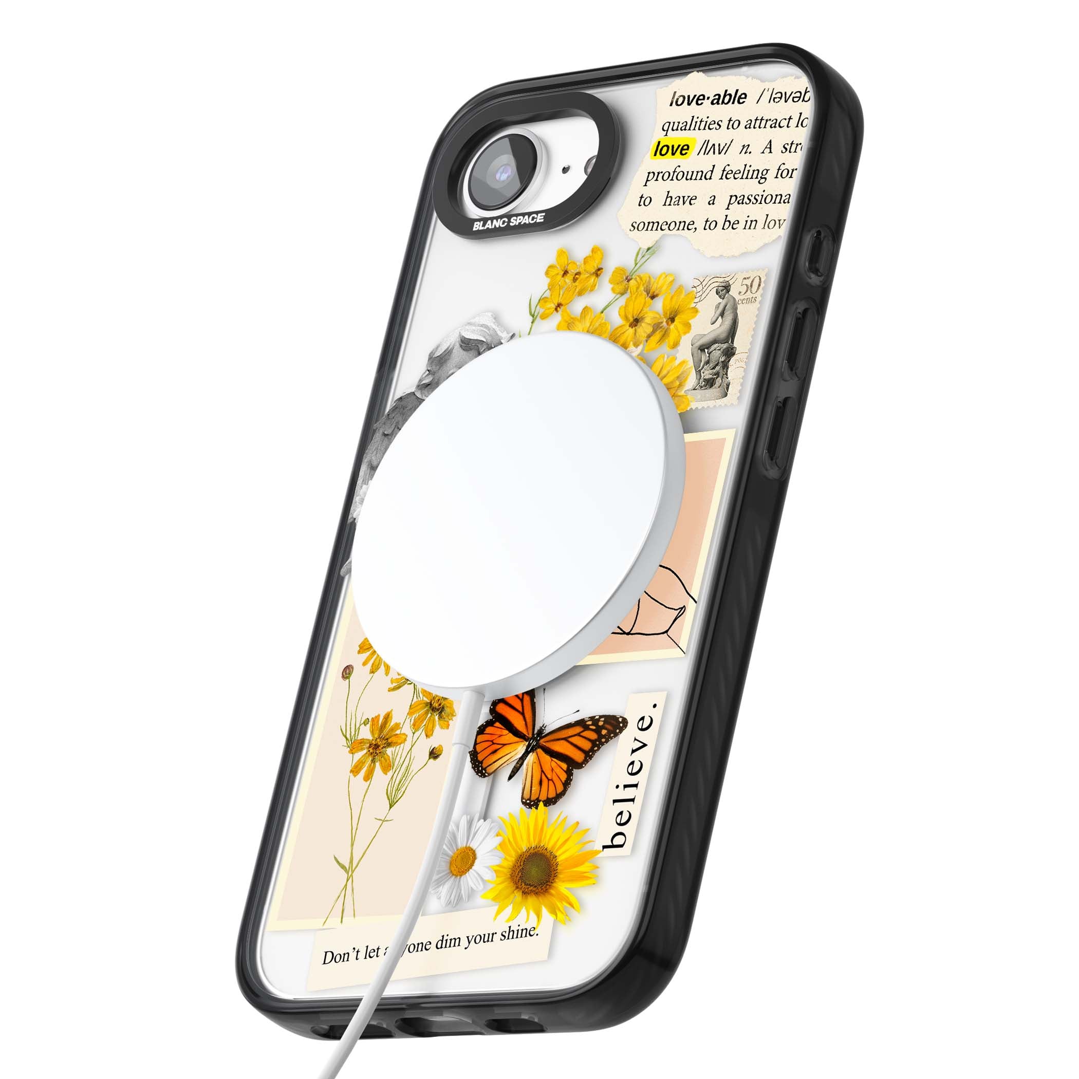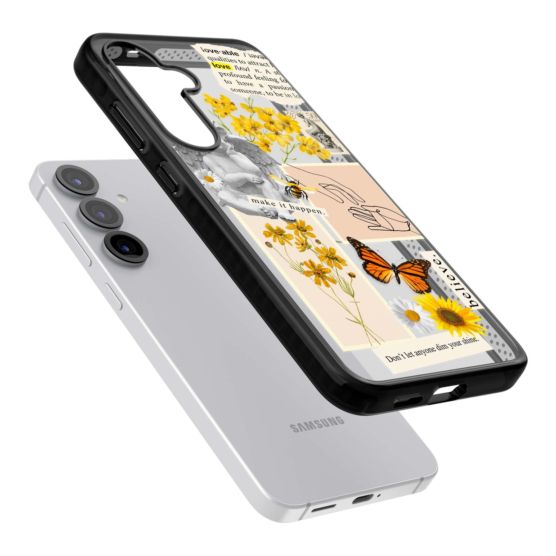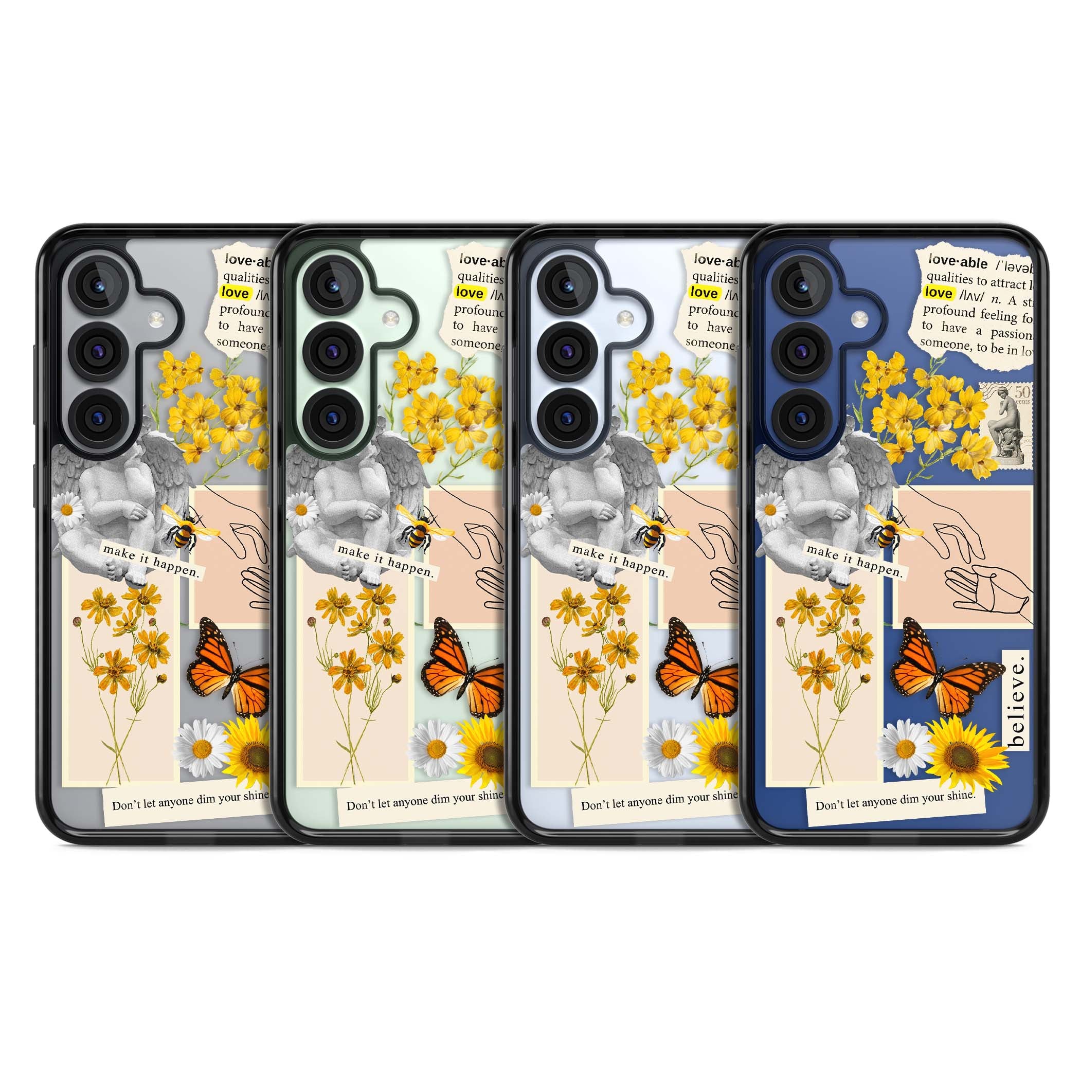 Let your phone bloom with the Vintage Wildflower Collage Case. This design harmoniously blends elegant butterflies, vibrant sunflowers, and motivational quotes, capturing both charm and assurance.