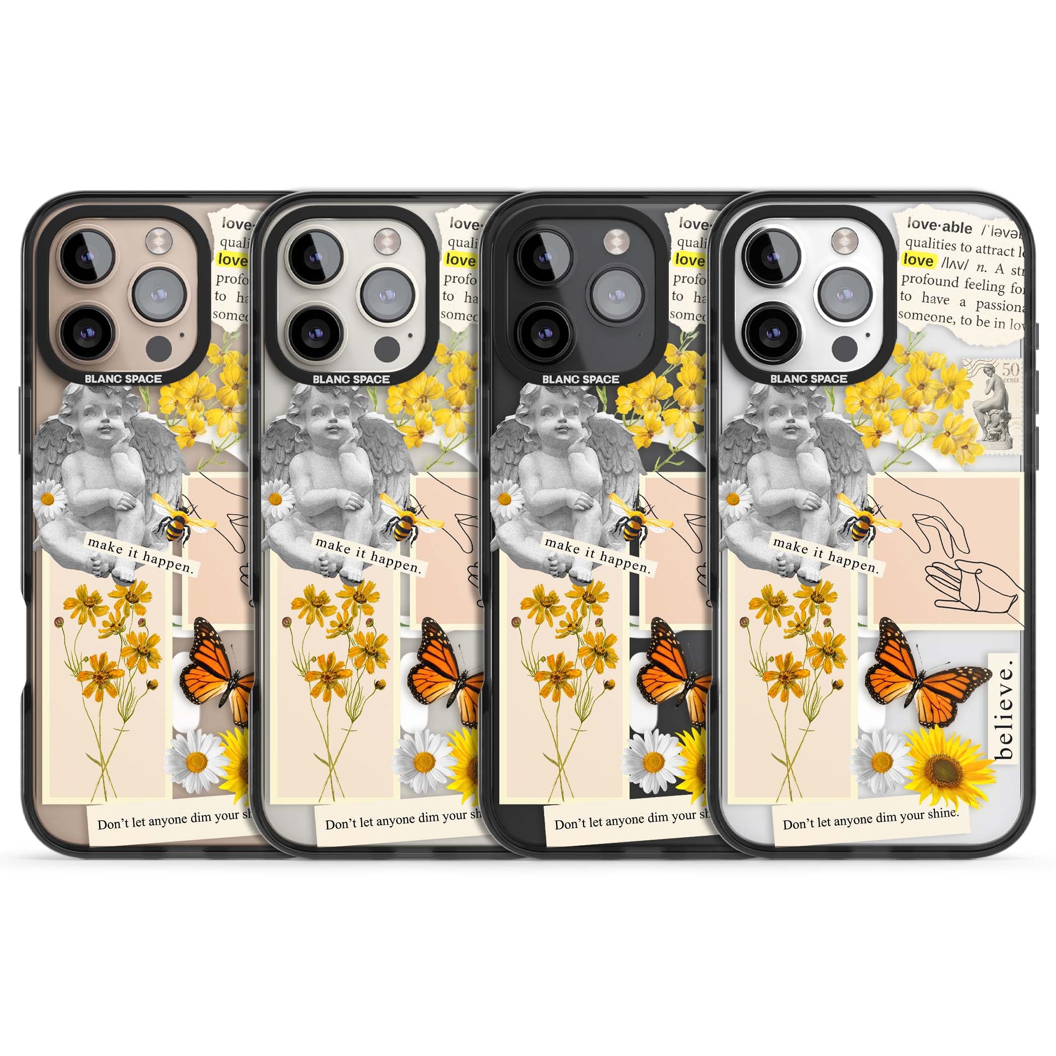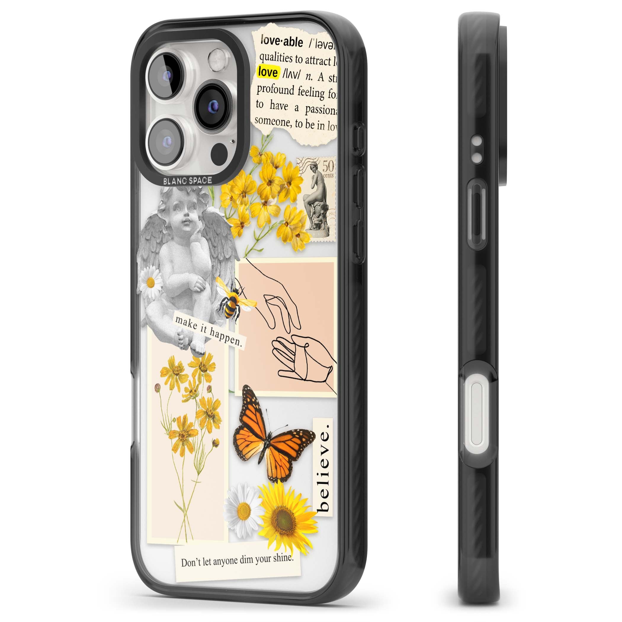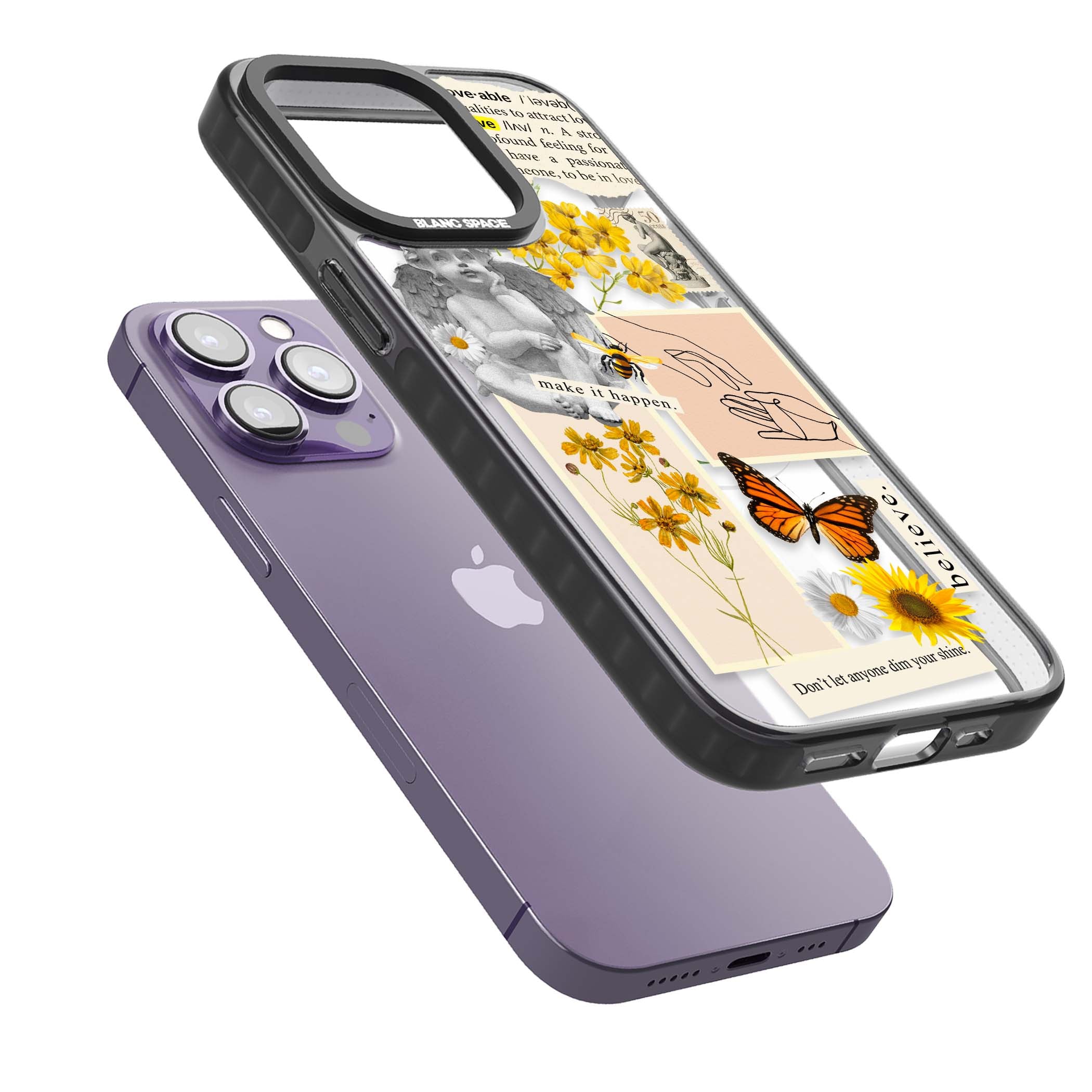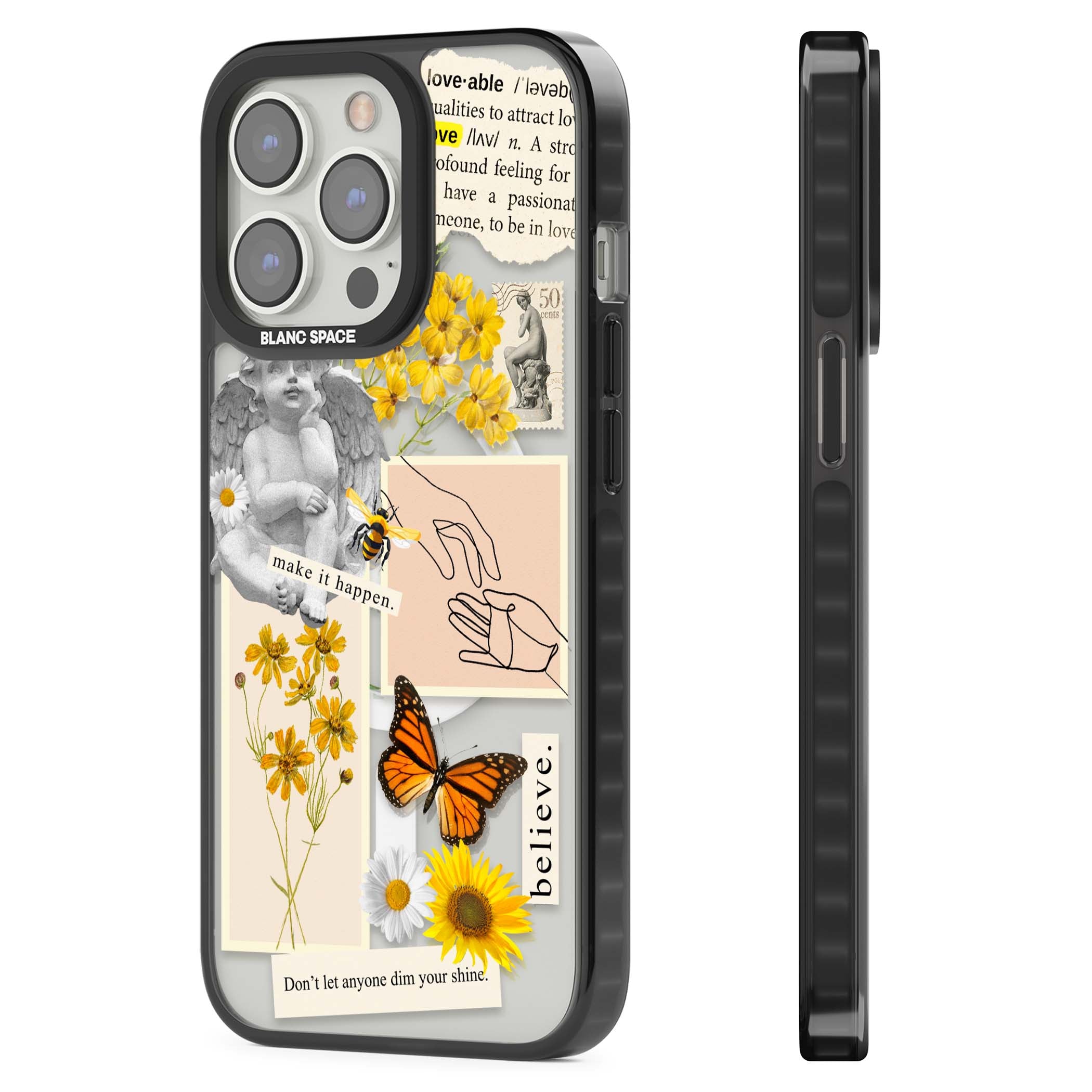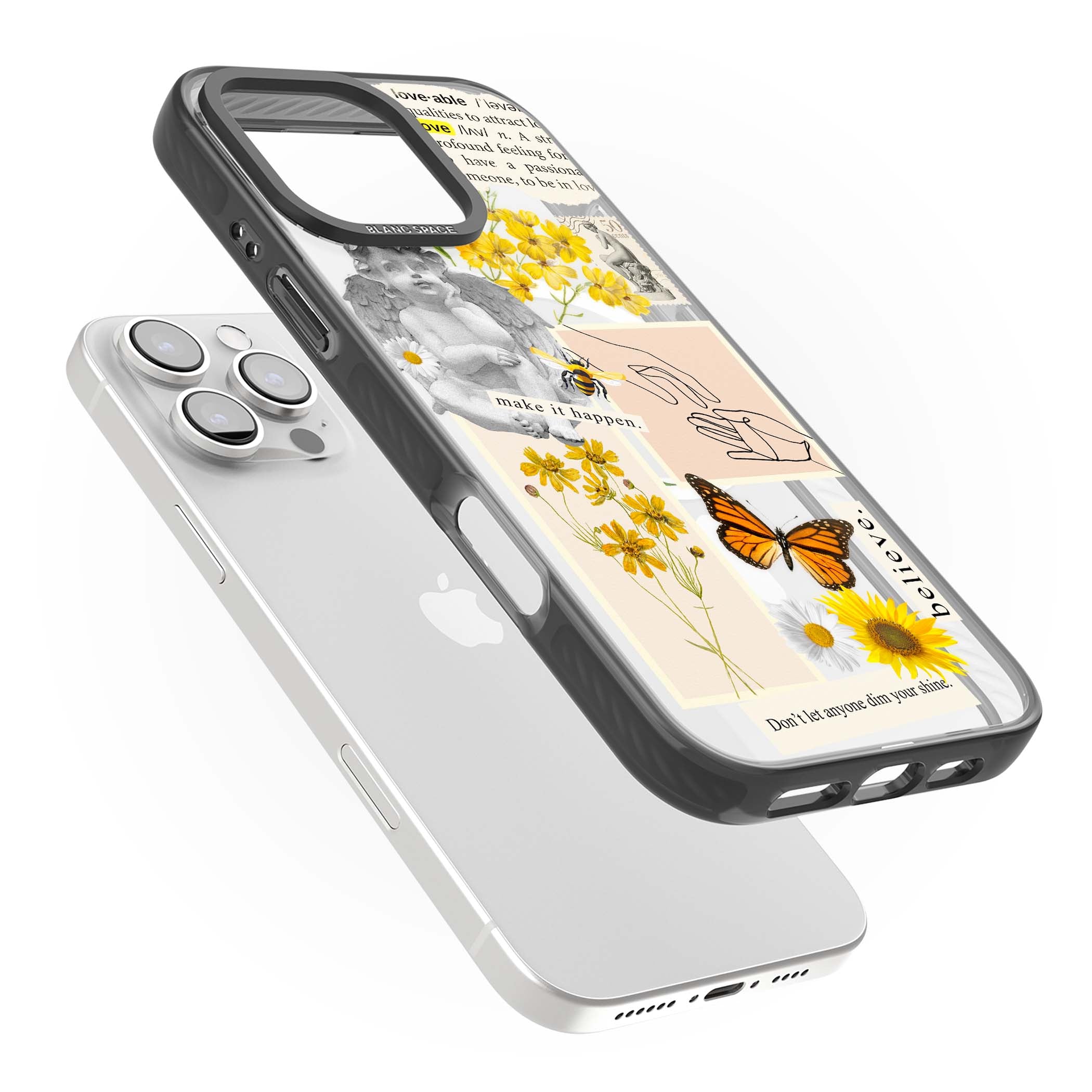 Let your phone bloom with the Vintage Wildflower Collage Case. This design harmoniously blends elegant butterflies, vibrant sunflowers, and motivational quotes, capturing both charm and assurance.