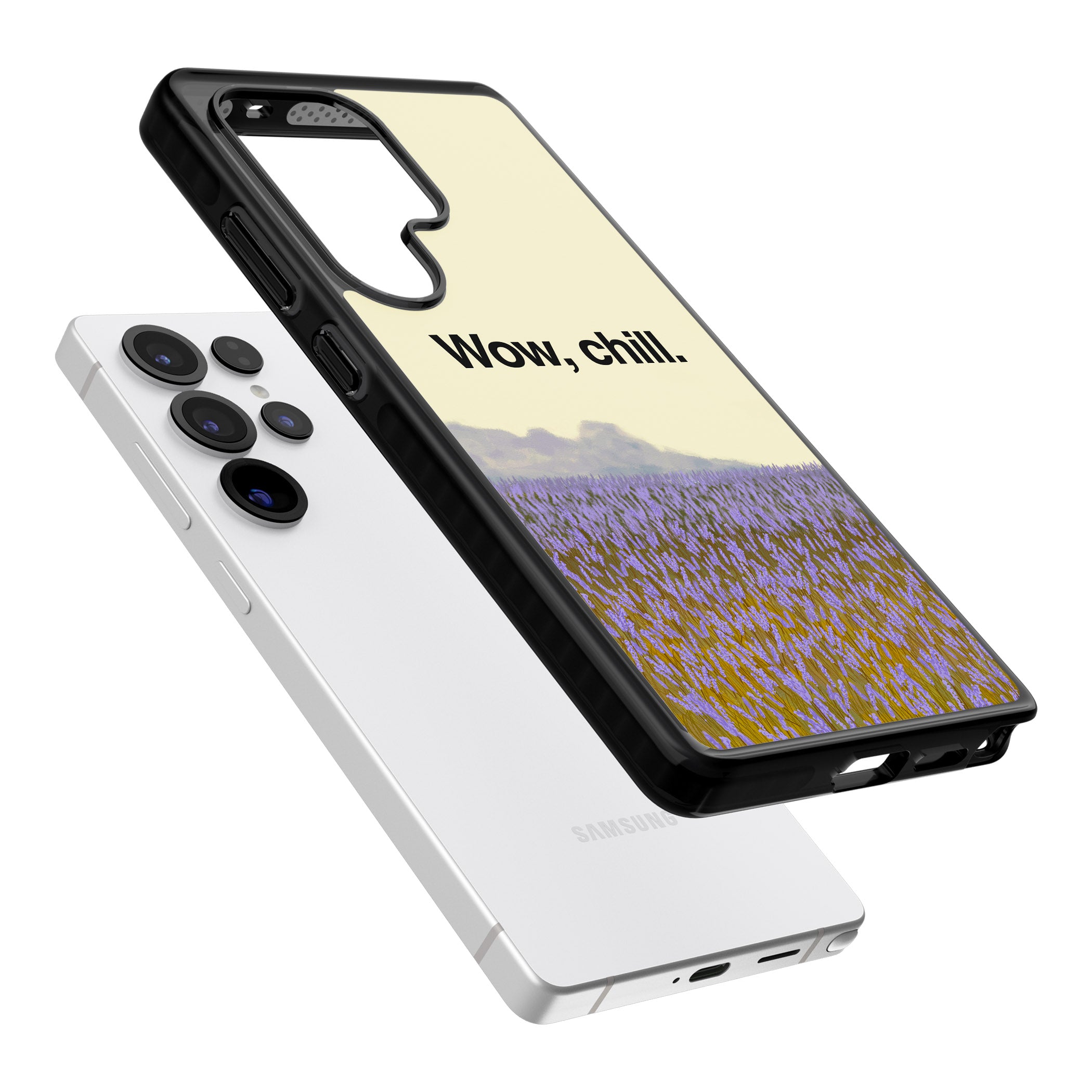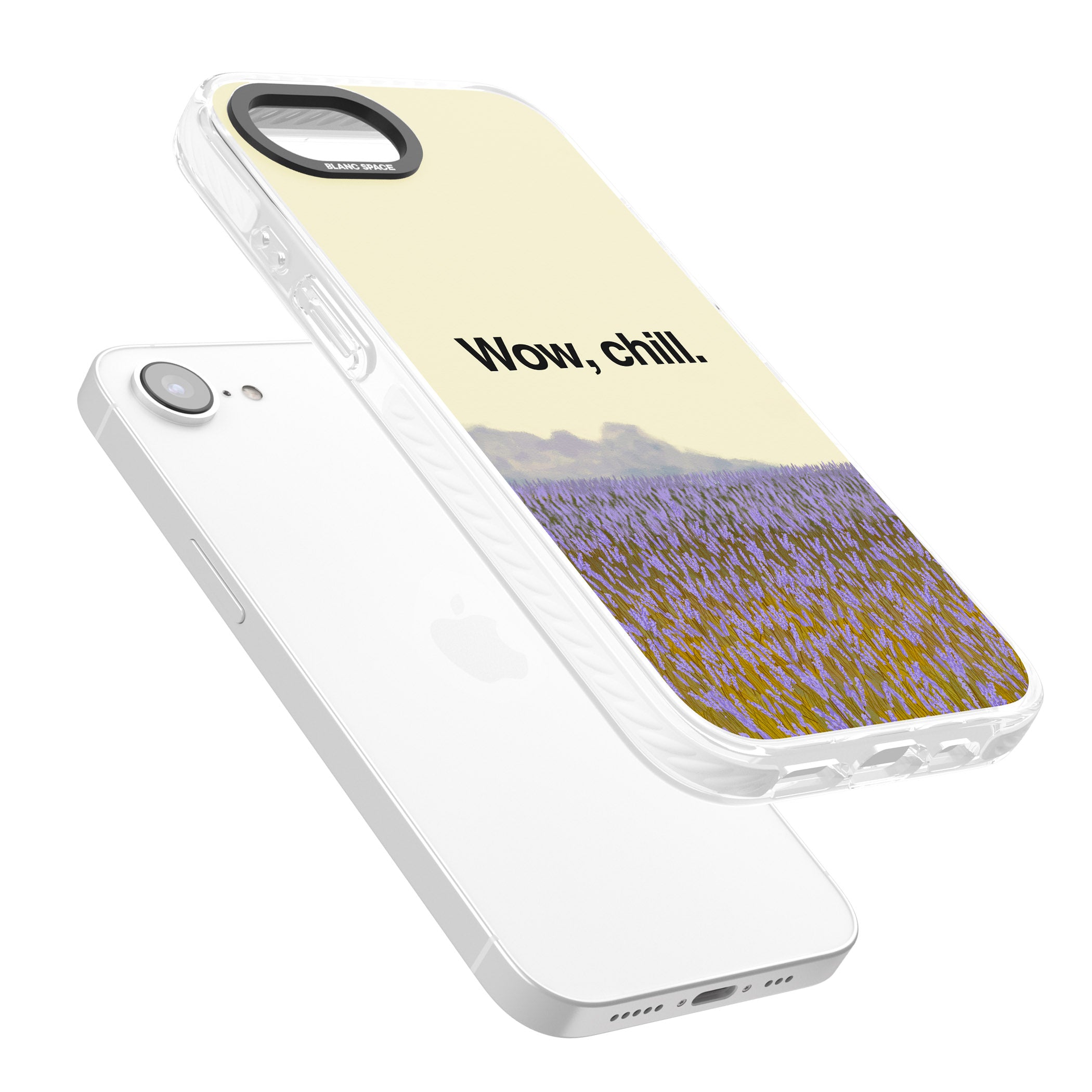 Unwind with our 'Wow, Chill' phone case, capturing the serene beauty of a lavender field. This case perfectly blends tranquility and style, turning your phone into a canvas of calm expression.
