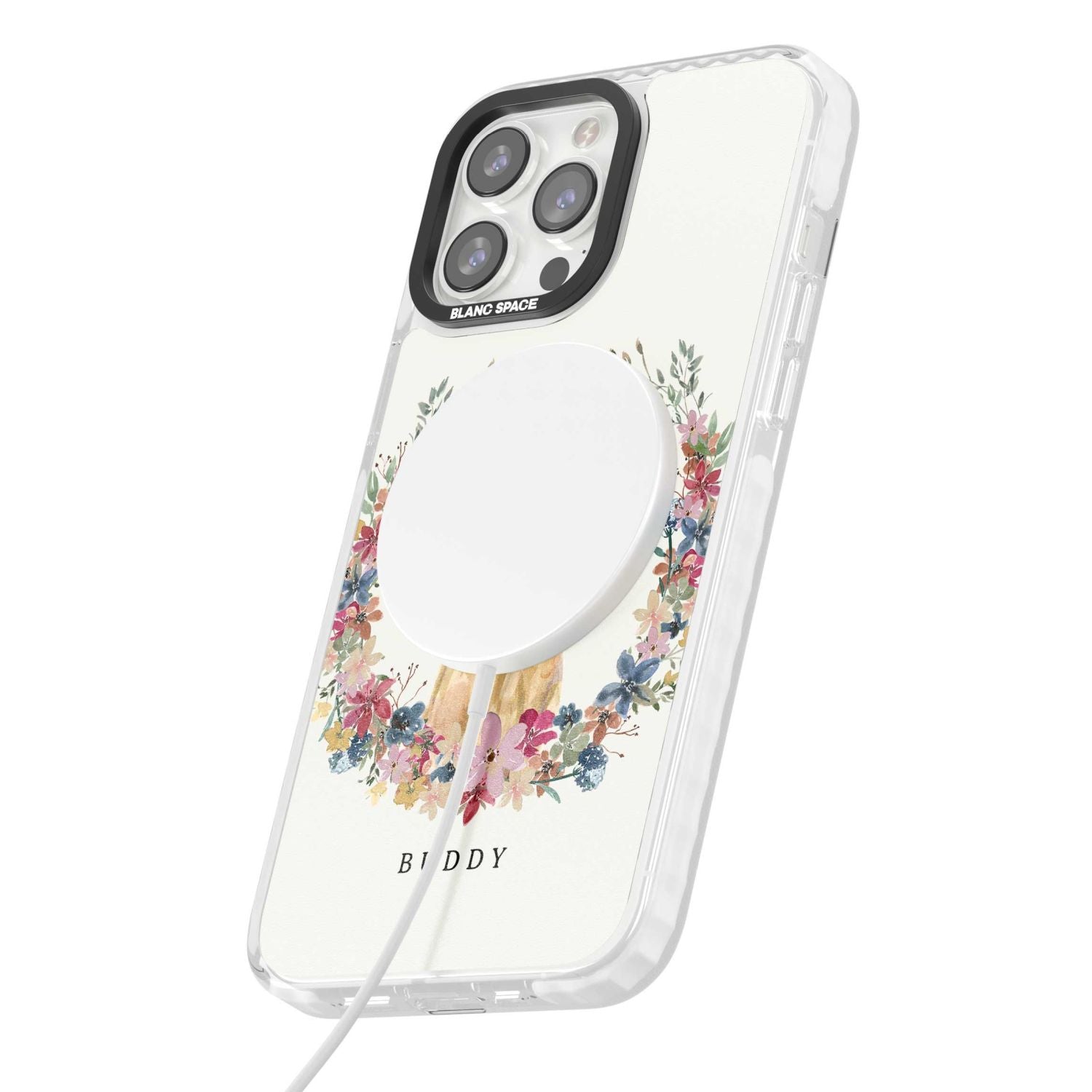 Embrace a blend of cuteness and elegance with our Floral Puppy Phone Case. This delightful design showcases a charming puppy surrounded by a wreath of vibrant florals, ensuring your phone stands out with personal flair.